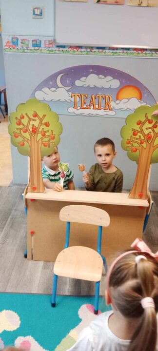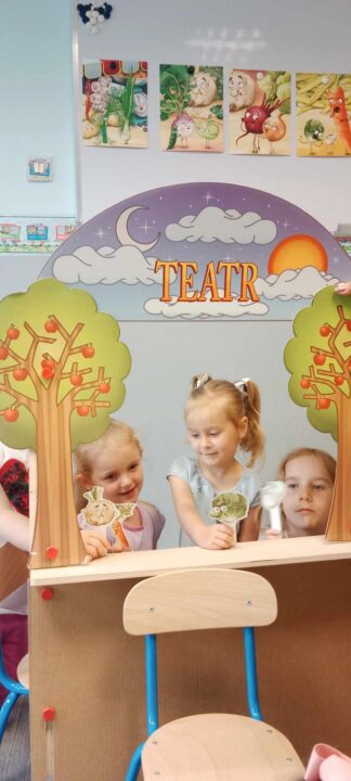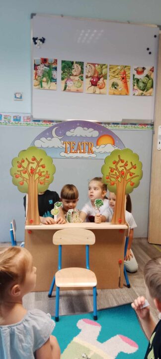 - „Misie” natomiast wcieliły się w role warzyw i wystawiły teatrzyk kukiełkowy do wiersza „Na straganie”.