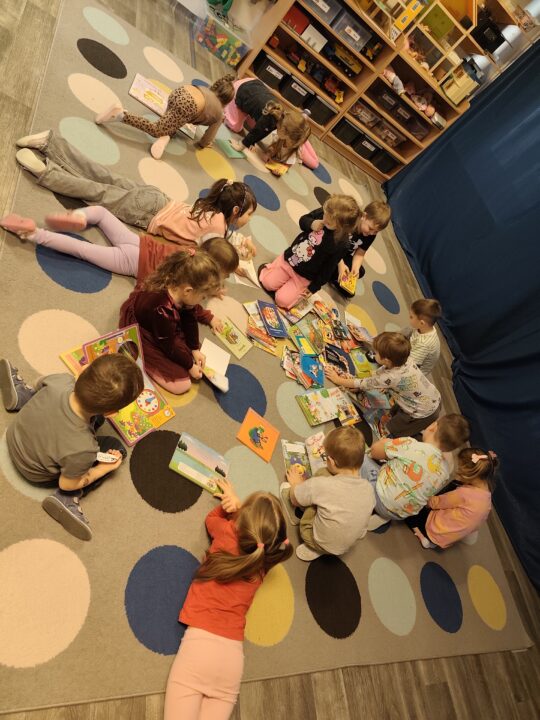 - Wypożyczanie książek:Zachęcanie do wypożyczania książek do domu i wspólnego czytania.