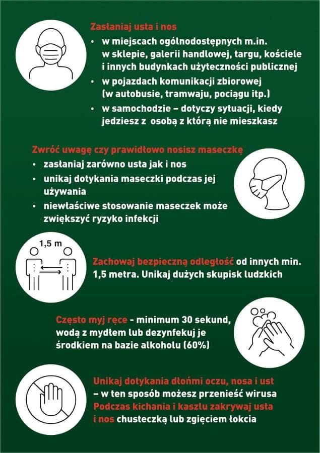 Drodzy Rodzice, Wojewódzka Stacja Sanitarno- Epidemiologiczna przypomina o przestrzeganiu podstawowych zasad bezpieczeństwa i higieny w czasie pandemii