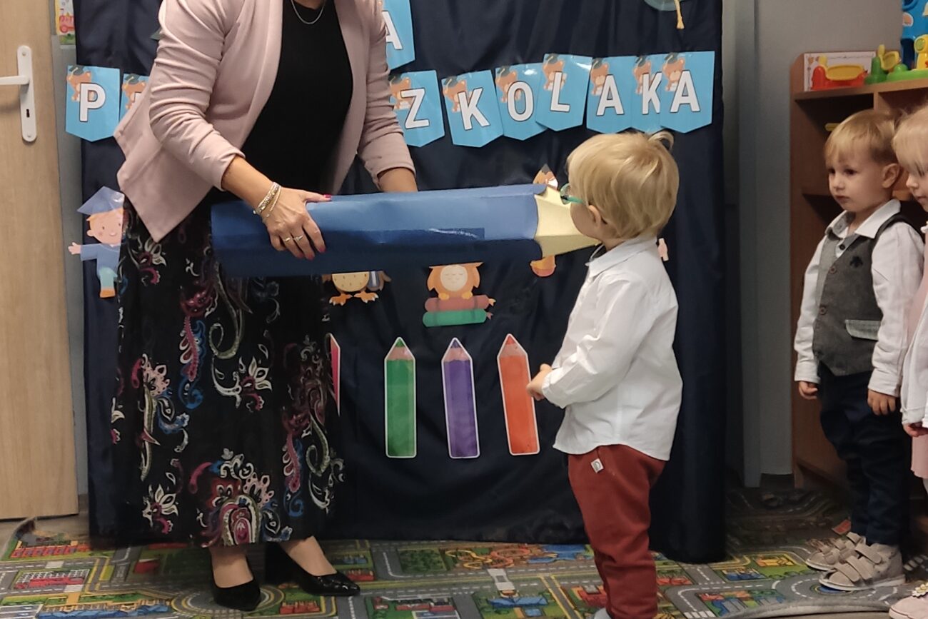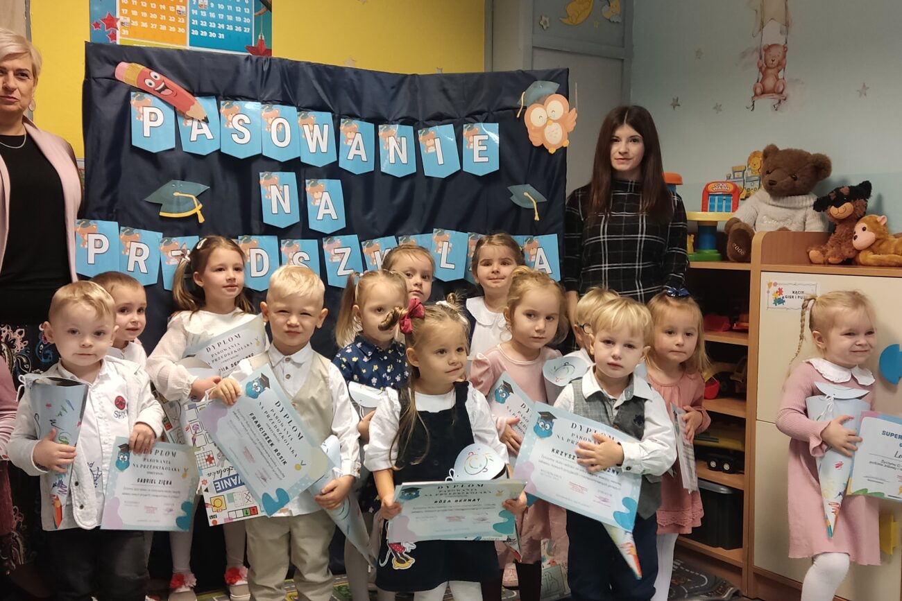 Dnia 22.11.2023r. w Naszym Przedszkolu odbyła się uroczystość Pasowania na przedszkolaka. Podczas występu dzieci zaprezentowały swoje umiejętności zarówno recytatorskie, jak i muzyczne. Po części artystycznej nastąpił akt pasowania – Pani Dyrektor przyjęła dzieci do grona społeczności przedszkolnej. Wszystkie dzieci otrzymały pamiątkowe dyplomy oraz upominki.
