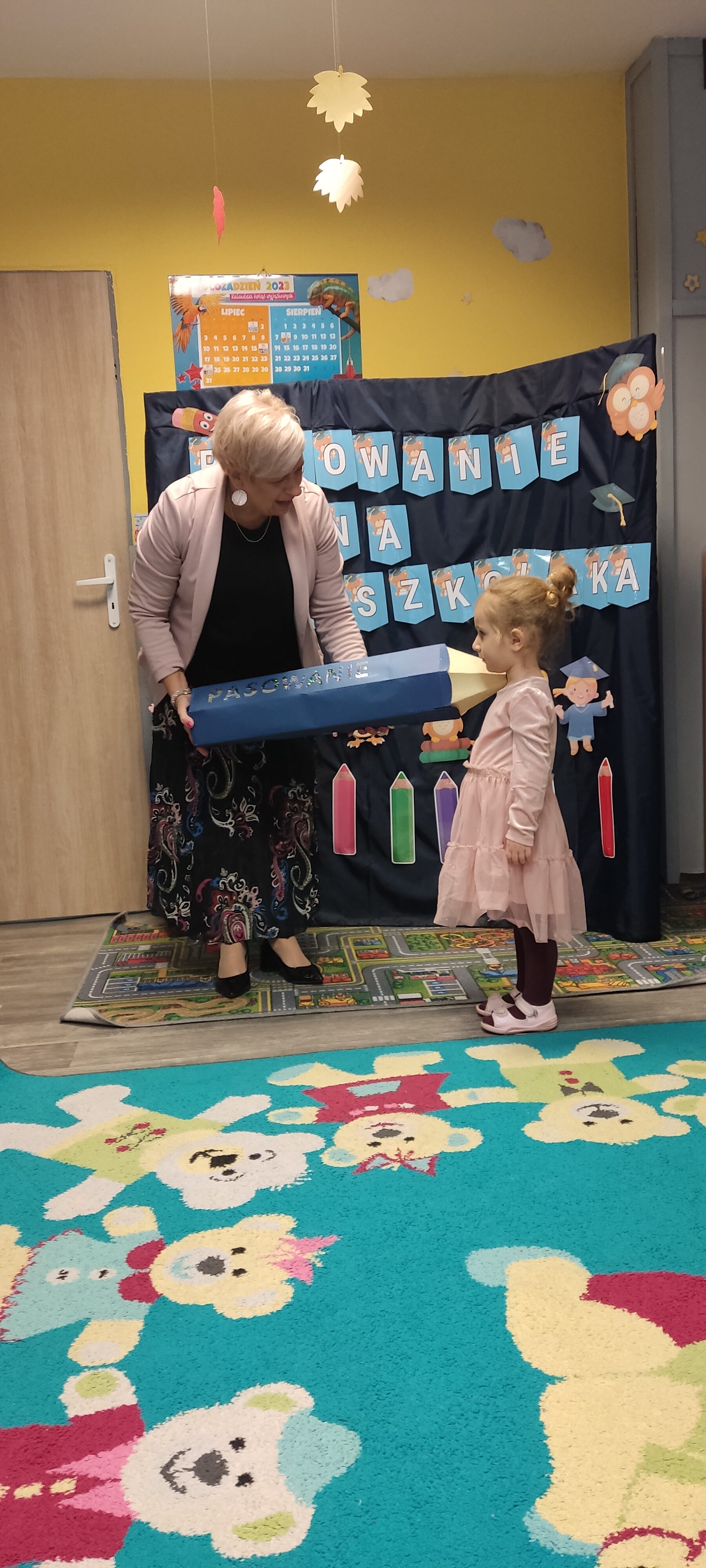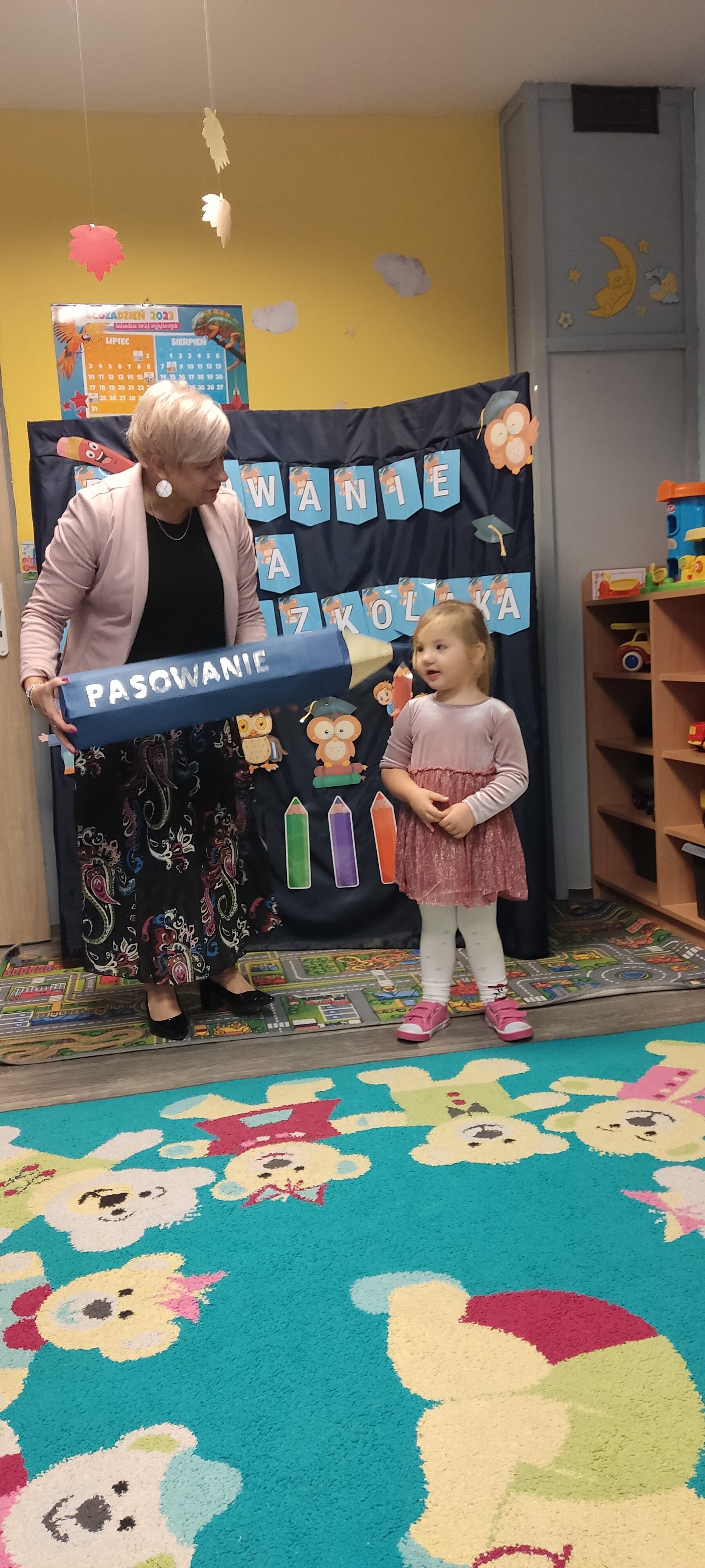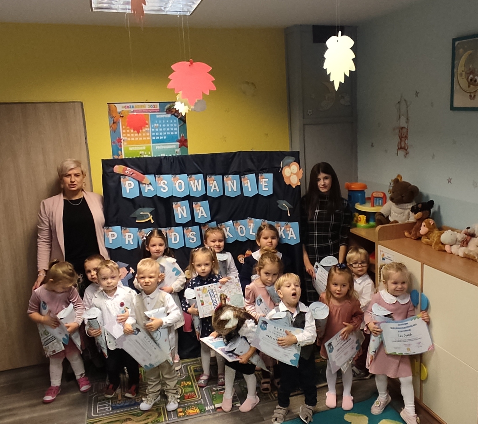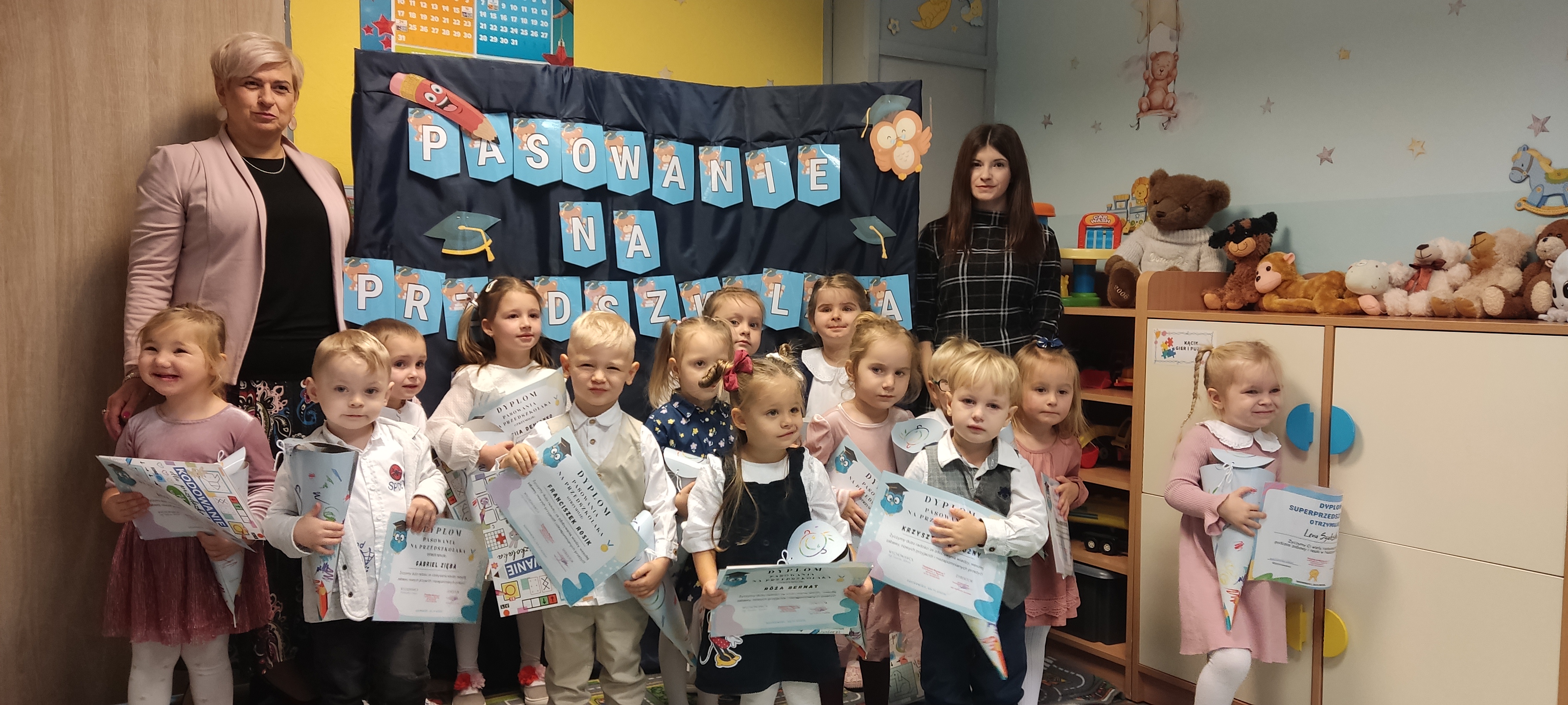 Dnia 22.11.2023r. w Naszym Przedszkolu odbyła się uroczystość Pasowania na przedszkolaka. Podczas występu dzieci zaprezentowały swoje umiejętności zarówno recytatorskie, jak i muzyczne. Po części artystycznej nastąpił akt pasowania – Pani Dyrektor przyjęła dzieci do grona społeczności przedszkolnej. Wszystkie dzieci otrzymały pamiątkowe dyplomy oraz upominki.