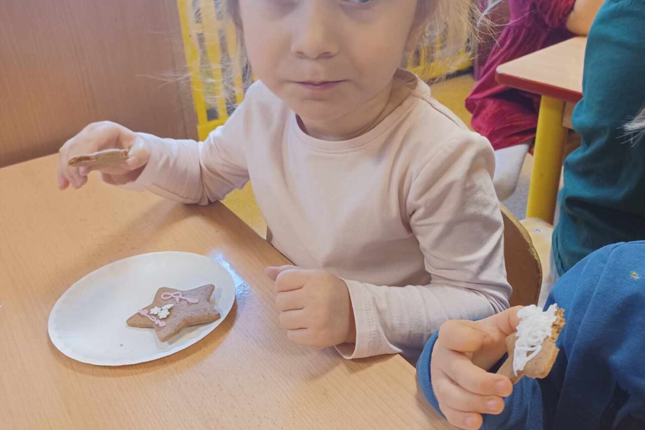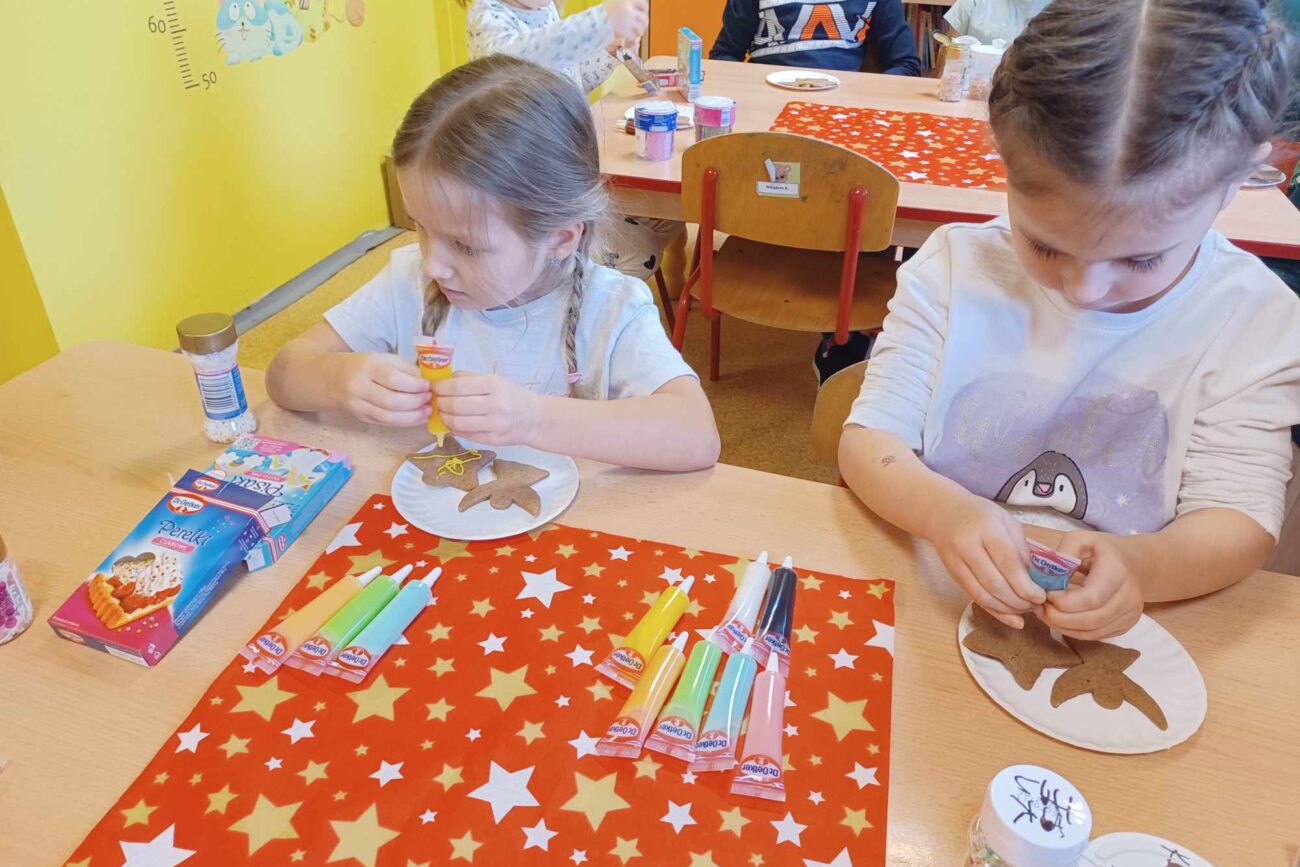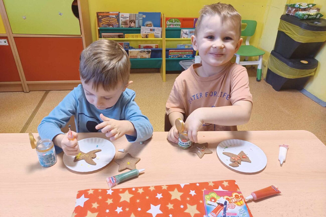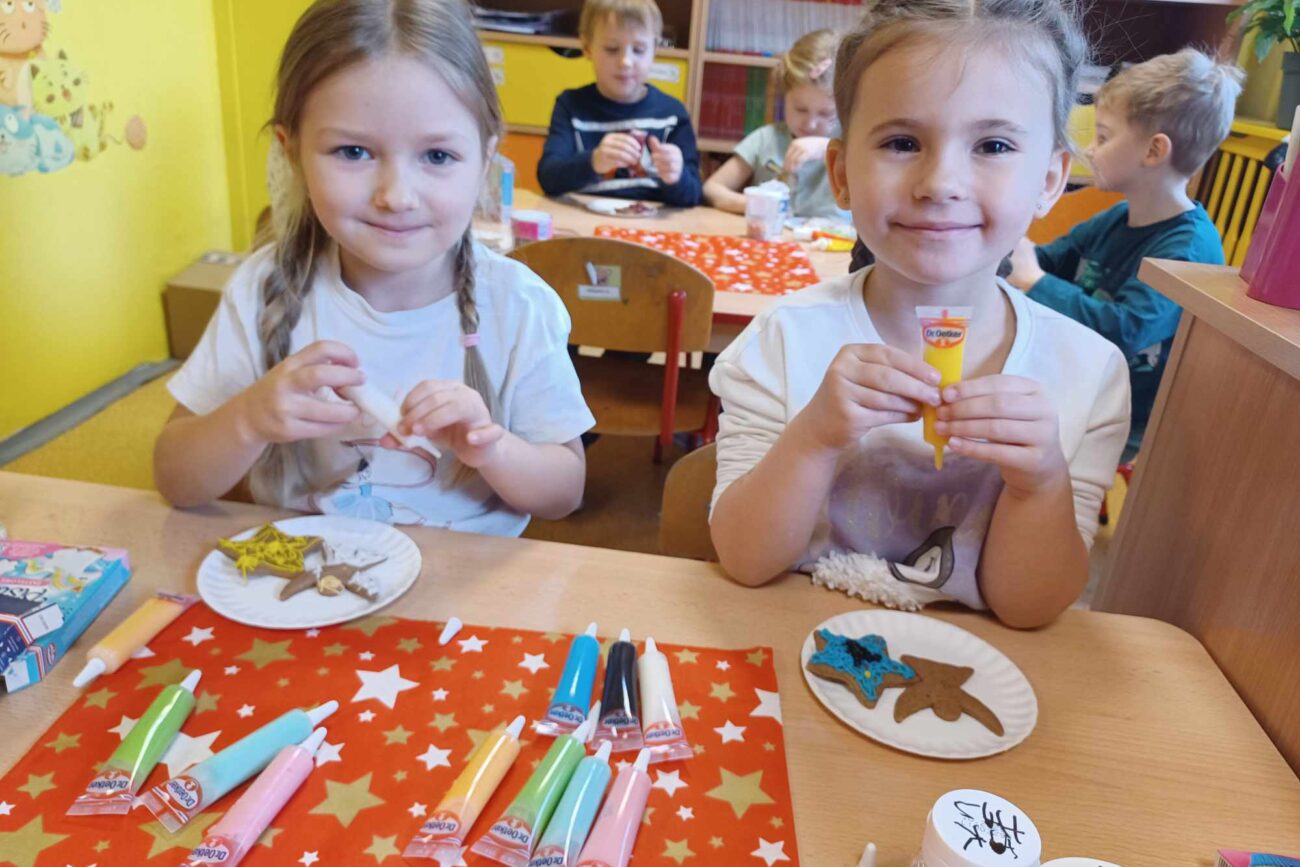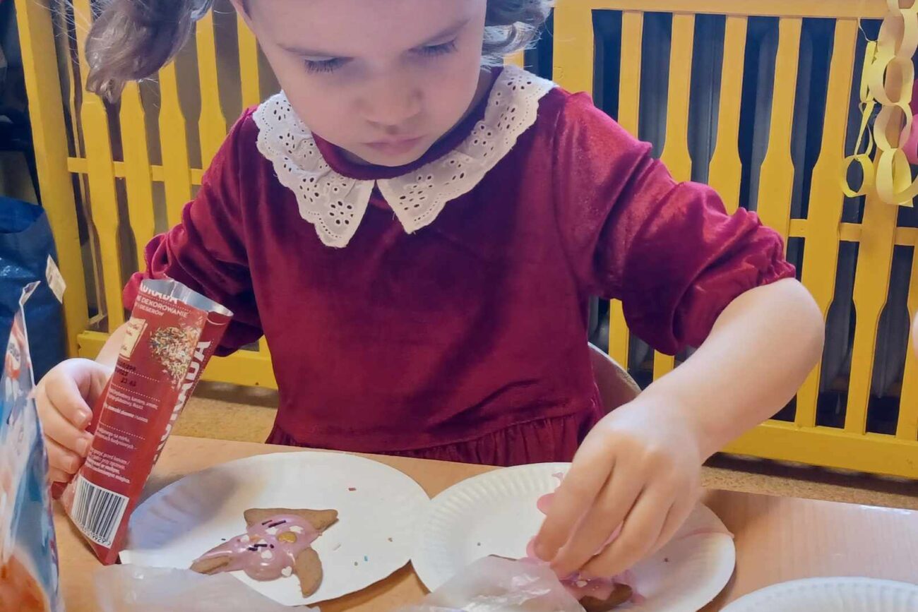 15 grudnia 2023r. w naszym przedszkolu unosił się zapach korzennych przypraw, a wszystko dlatego, że dzieci z grupy „Motylki” oraz „Misie” tego dnia piekły świąteczne pierniczki. Najpierw odpowiednio się przygotowały dbając o czyste rączki. Poznały też składniki i sposób wykonania ciasta, potrzebne przybory kuchenne, a także zasady bezpieczeństwa. Gdy wszystko było gotowe przedszkolaki z ogromnym zapałem i zaangażowaniem zabrały się do pracy – dekorowały wcześniej przygotowane pierniczki kolorowym lukrem i barwnymi posypkami. Warsztaty z pieczenia poprowadziła pani Ania. Pod jej czujnym okiem powstały przepiękne pierniki w świątecznych kształtach: gwiazdki, śnieżynki i aniołki. Dziękujemy Rodzicom za pomoc w przygotowaniu pysznych pierniczków ![]()