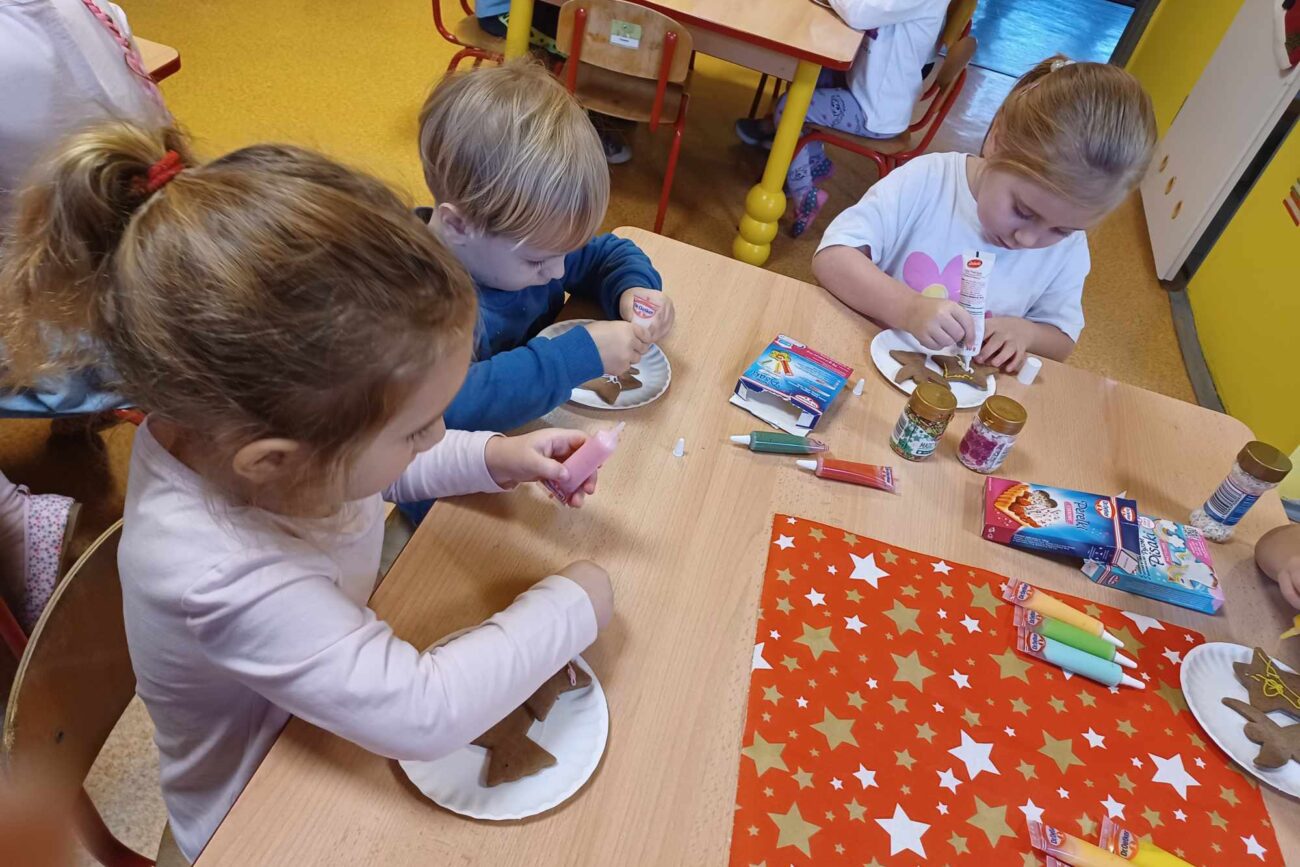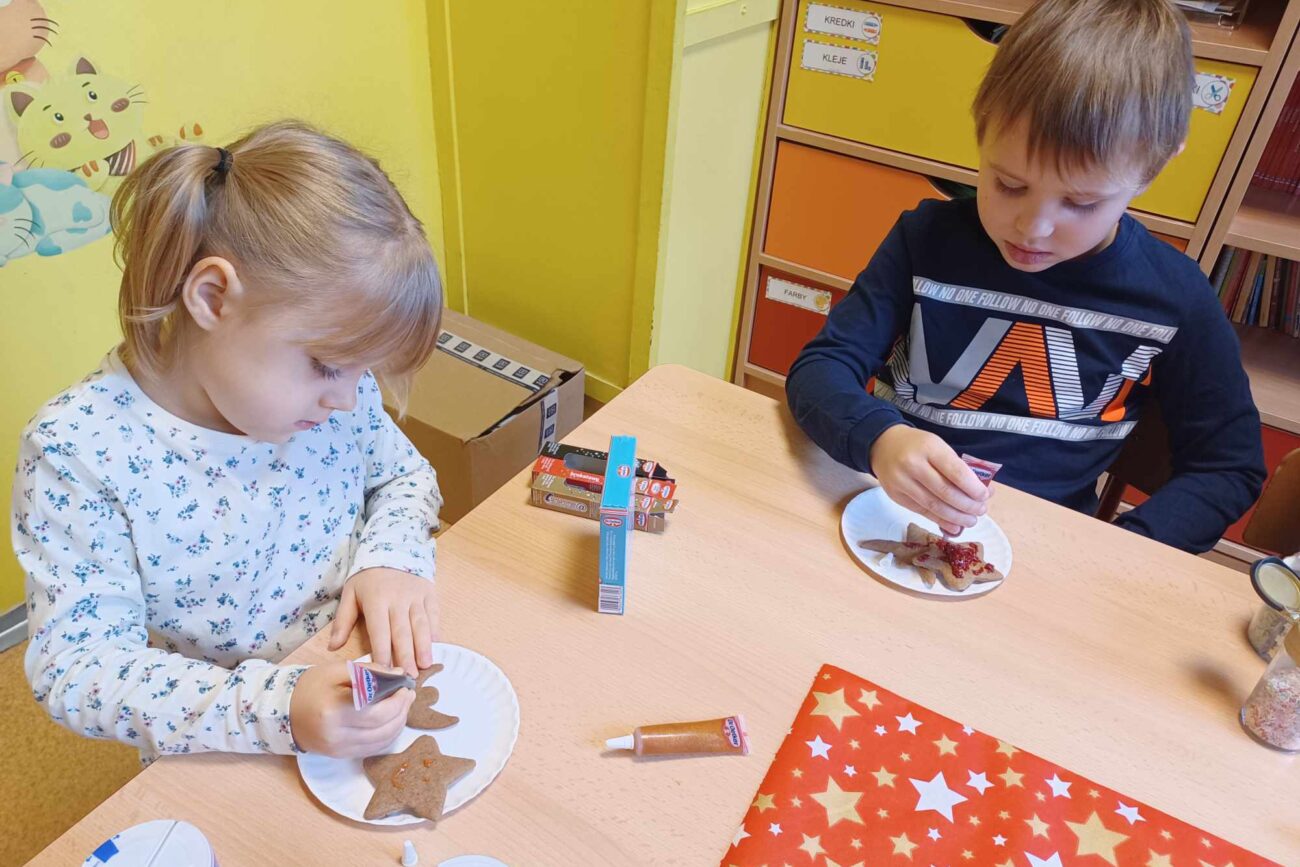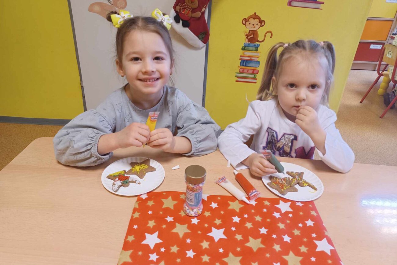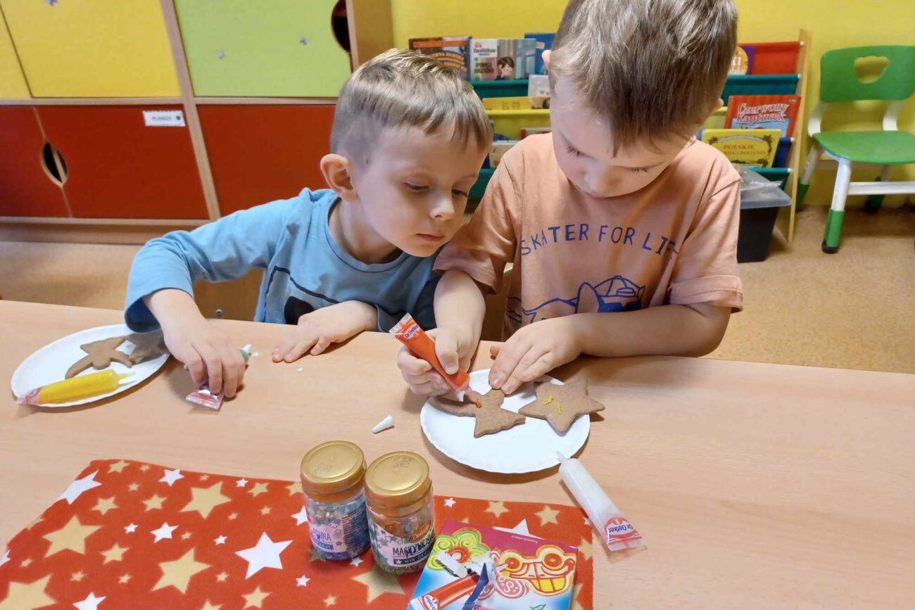 15 grudnia 2023r. w naszym przedszkolu unosił się zapach korzennych przypraw, a wszystko dlatego, że dzieci z grupy „Motylki” oraz „Misie” tego dnia piekły świąteczne pierniczki. Najpierw odpowiednio się przygotowały dbając o czyste rączki. Poznały też składniki i sposób wykonania ciasta, potrzebne przybory kuchenne, a także zasady bezpieczeństwa. Gdy wszystko było gotowe przedszkolaki z ogromnym zapałem i zaangażowaniem zabrały się do pracy – dekorowały wcześniej przygotowane pierniczki kolorowym lukrem i barwnymi posypkami. Warsztaty z pieczenia poprowadziła pani Ania. Pod jej czujnym okiem powstały przepiękne pierniki w świątecznych kształtach: gwiazdki, śnieżynki i aniołki. Dziękujemy Rodzicom za pomoc w przygotowaniu pysznych pierniczków ![]()