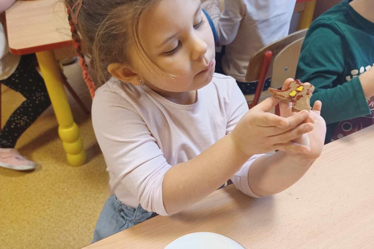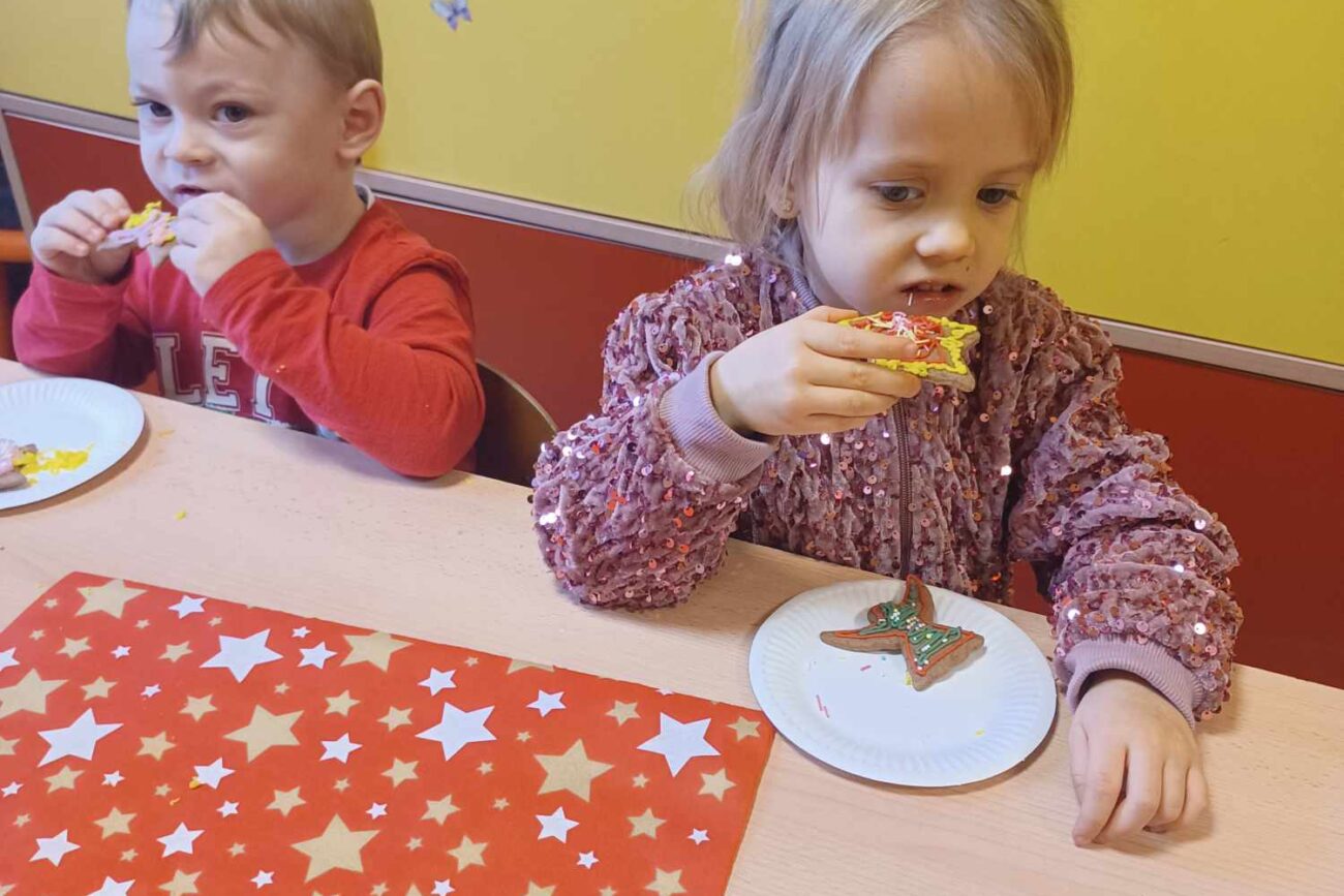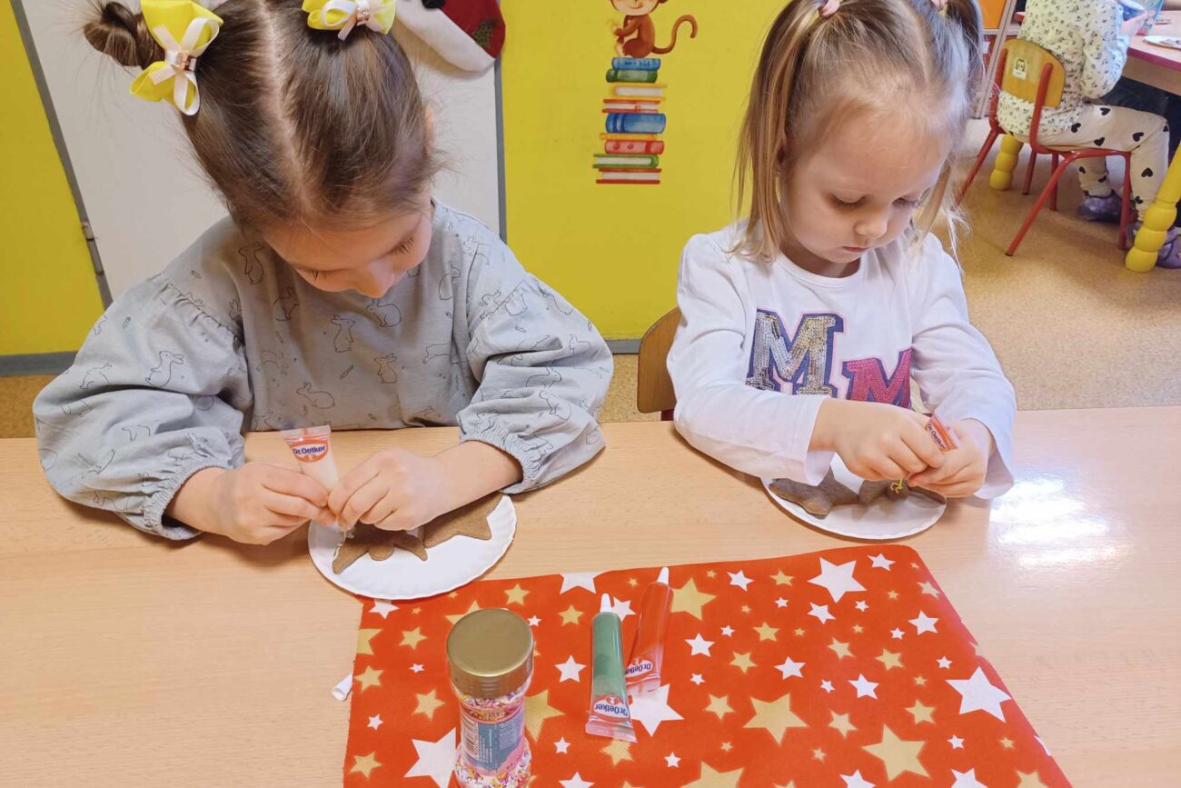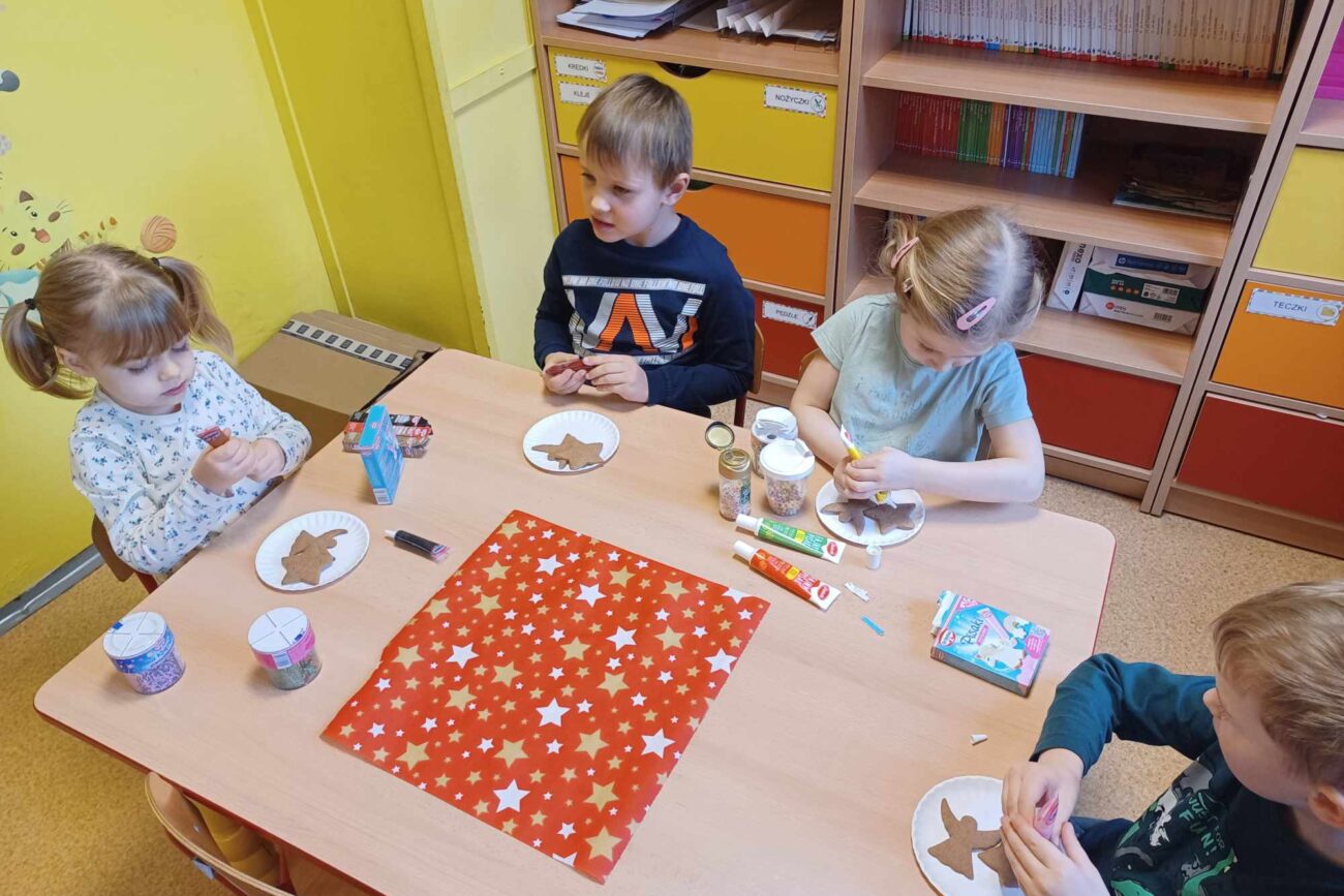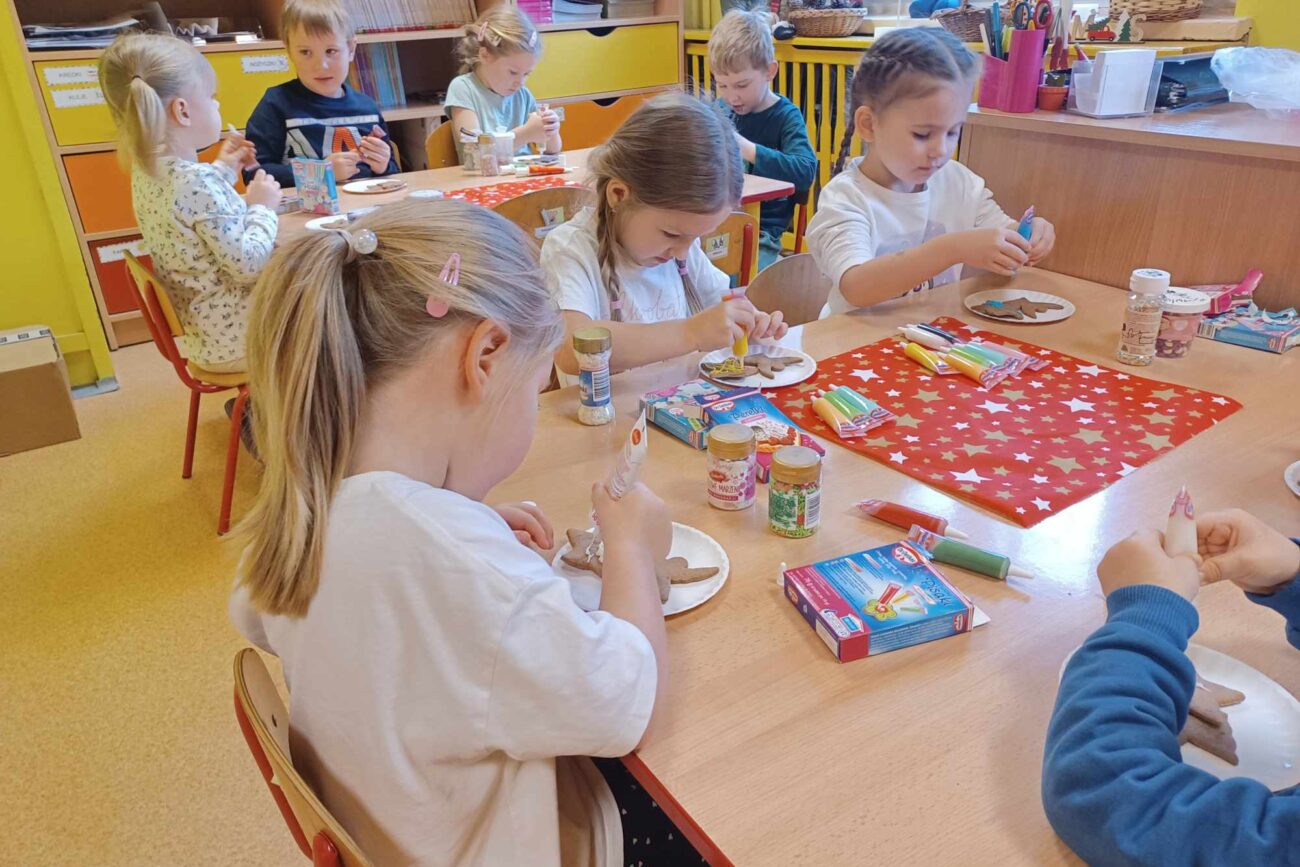 15 grudnia 2023r. w naszym przedszkolu unosił się zapach korzennych przypraw, a wszystko dlatego, że dzieci z grupy „Motylki” oraz „Misie” tego dnia piekły świąteczne pierniczki. Najpierw odpowiednio się przygotowały dbając o czyste rączki. Poznały też składniki i sposób wykonania ciasta, potrzebne przybory kuchenne, a także zasady bezpieczeństwa. Gdy wszystko było gotowe przedszkolaki z ogromnym zapałem i zaangażowaniem zabrały się do pracy – dekorowały wcześniej przygotowane pierniczki kolorowym lukrem i barwnymi posypkami. Warsztaty z pieczenia poprowadziła pani Ania. Pod jej czujnym okiem powstały przepiękne pierniki w świątecznych kształtach: gwiazdki, śnieżynki i aniołki. Dziękujemy Rodzicom za pomoc w przygotowaniu pysznych pierniczków ![]()