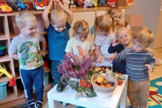 23 września powitaliśmy Panią Jesień. Przedszkolaki przyniosły do przedszkola jesienne dary.