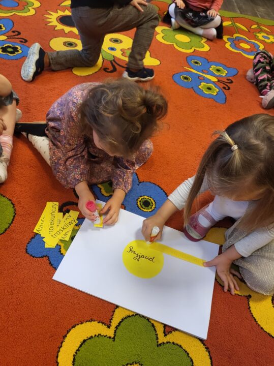 Celem naszego projektu było kształtowanie atmosfery życzliwości i akceptacji wśród dzieci, uświadomienie istoty charakteru kontaktu społecznego, jakim jest przyjaźń, kształtowanie umiejętności utrzymywania poprawnych kontaktów z rówieśnikami, nauka właściwych reakcji w sytuacjach trudnych – nieporozumieniach, konfliktach i sporach rówieśniczych.