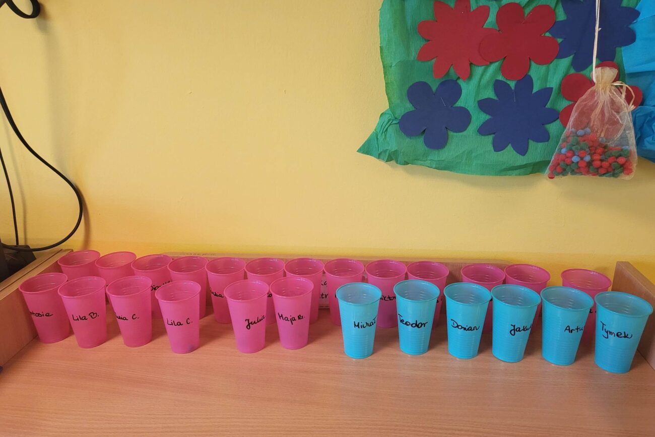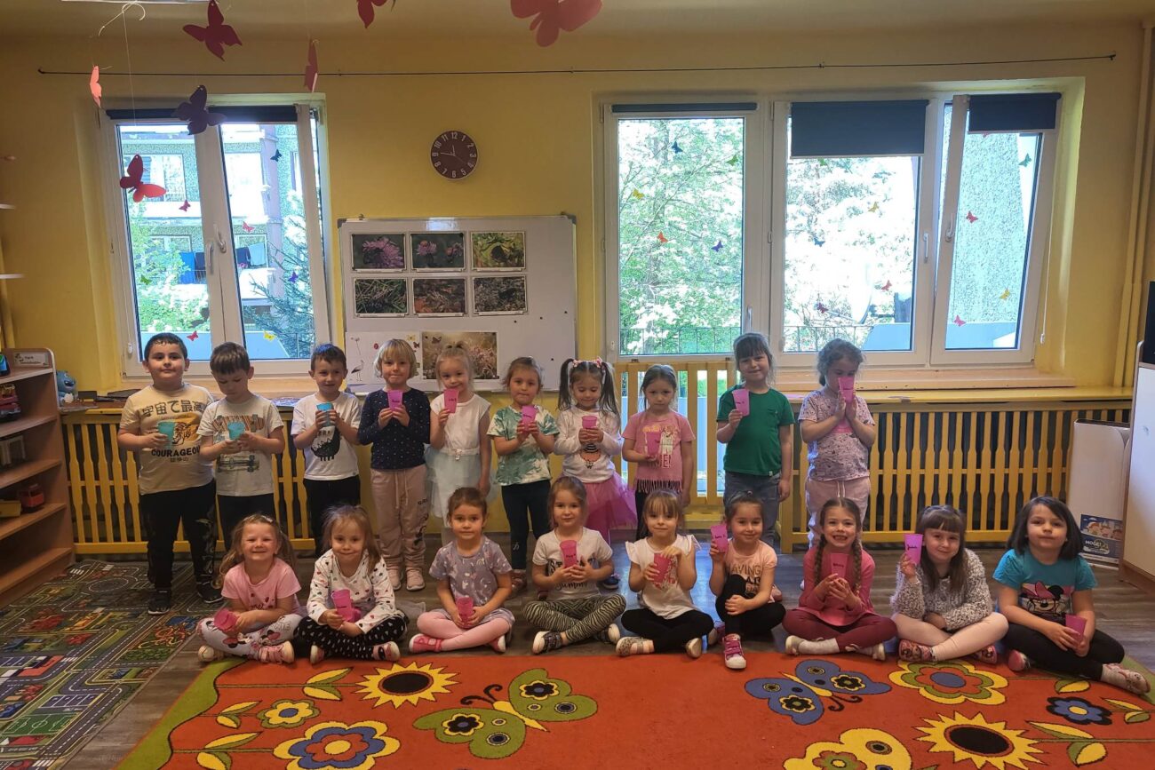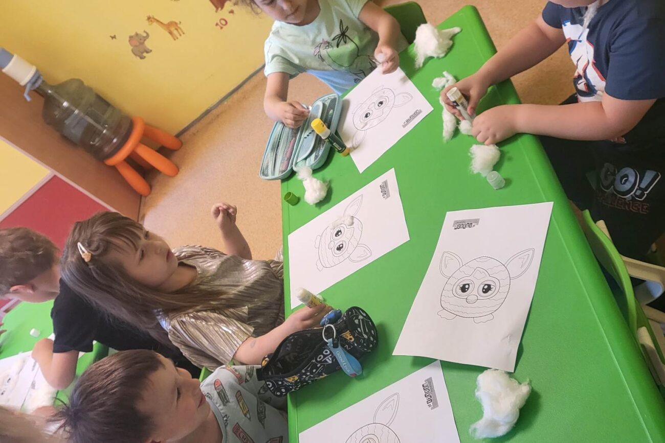 Przedszkolaki z zaciekawieniem wysłuchali „Bajkę o ciepłym i puchatym”. Była rozmowa na temat: co to są ciepłe i puchate oraz zimne i kolczaste słowa. Wszystkim uświadomiło to, że słowa są nieprzewidywalne, mogą sprawiać radość, ale również mogą zranić. Motylki przez cały tydzień za dobre uczynki zbierały do plastikowych kubeczków puchate kuleczki – symbol życzliwości. Dzieci wspólnie szukali ciepłego – puchatego oraz zimnego i kolczastego w naszej codzienności. Przedszkolaki miały za zadanie aby, smutnego stworka uszczęśliwić zdobiąc go ciepłym i puchatym. Nie zabrakło zabaw w których przedszkolaki uczyły się mówić o swoich emocjach. Na zakończenie każde dziecko zabrało do domu swój kubek z ciepłym i puchatym szerząc życzliwość i dobro również wśród rodziny.