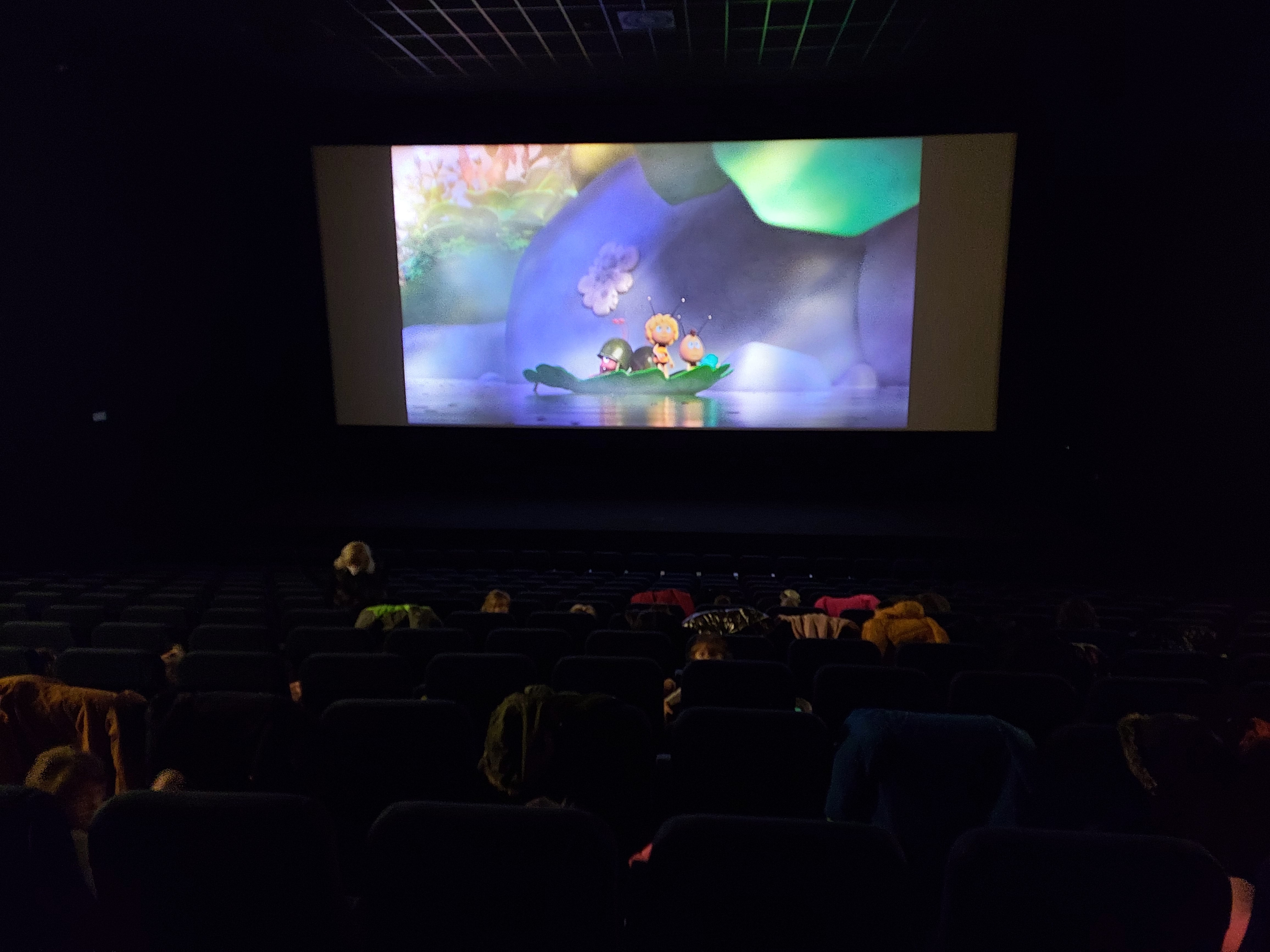 Dnia 19.11.2021 r. Nasze Przedszkolaki z grup : ,,Misie”, ,,Motylki” i ,, Biedronki” pojechały na projekcję pt.: ,, Pszczółka Maja mały wielki skarb” do Kina Helios w Sosnowcu.