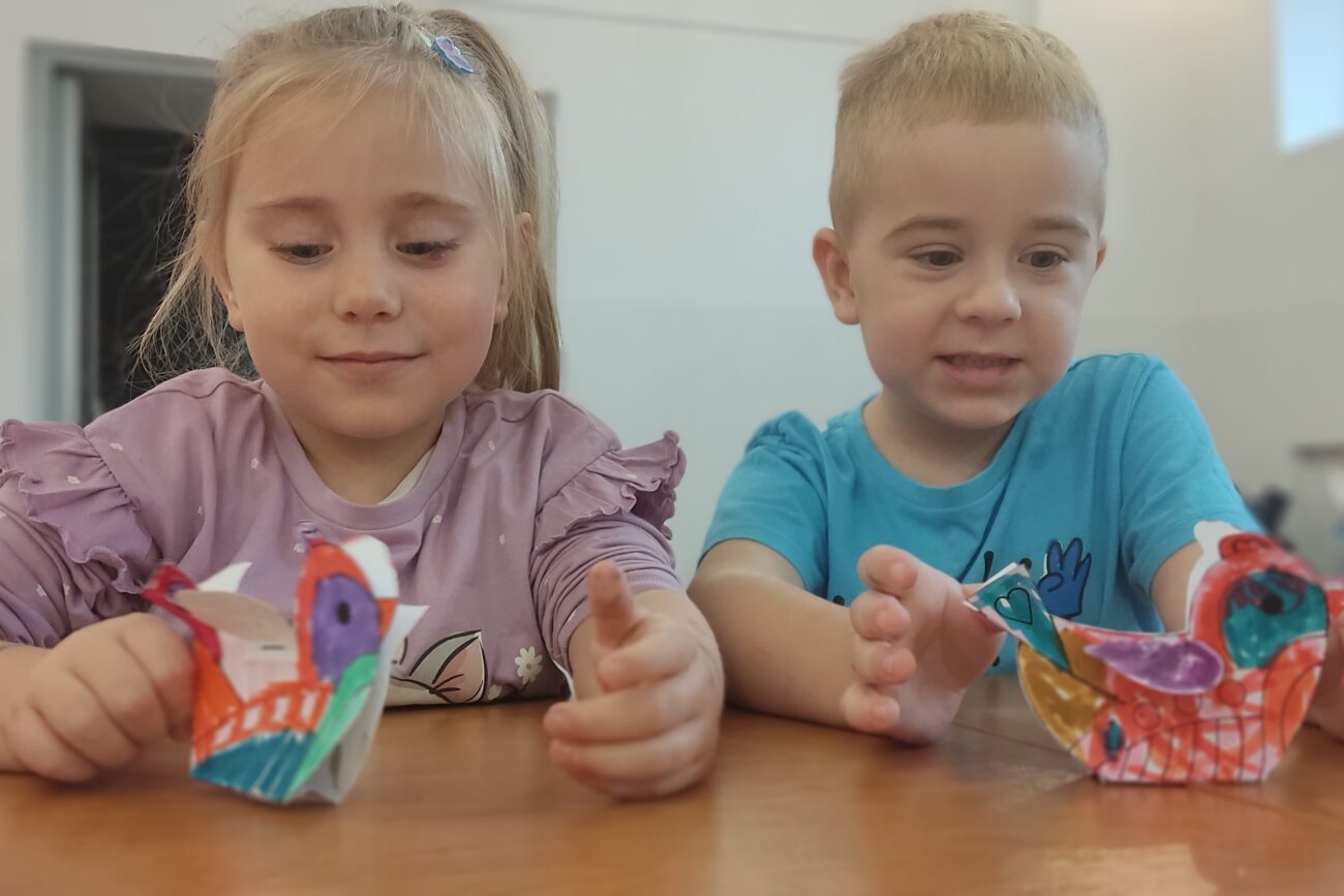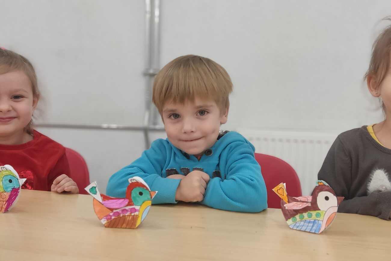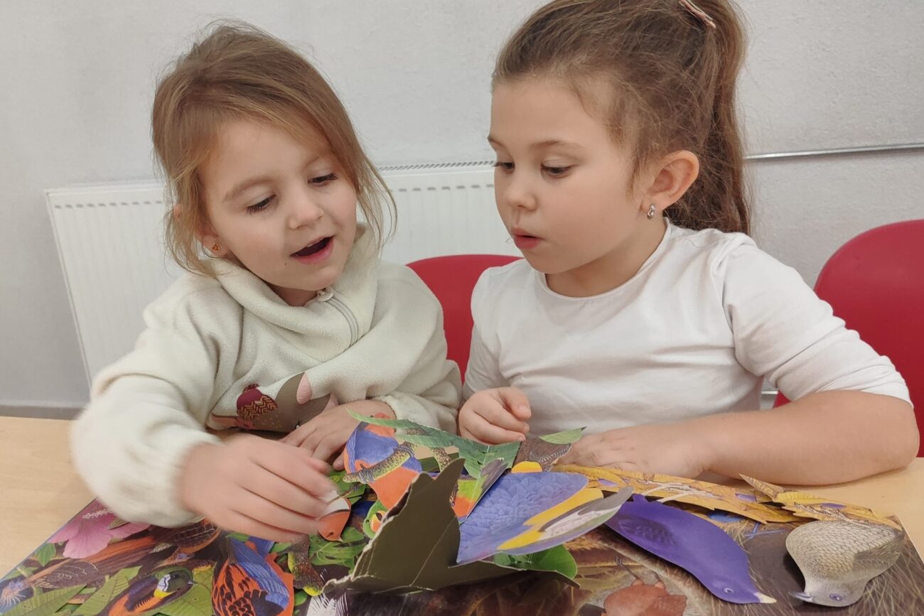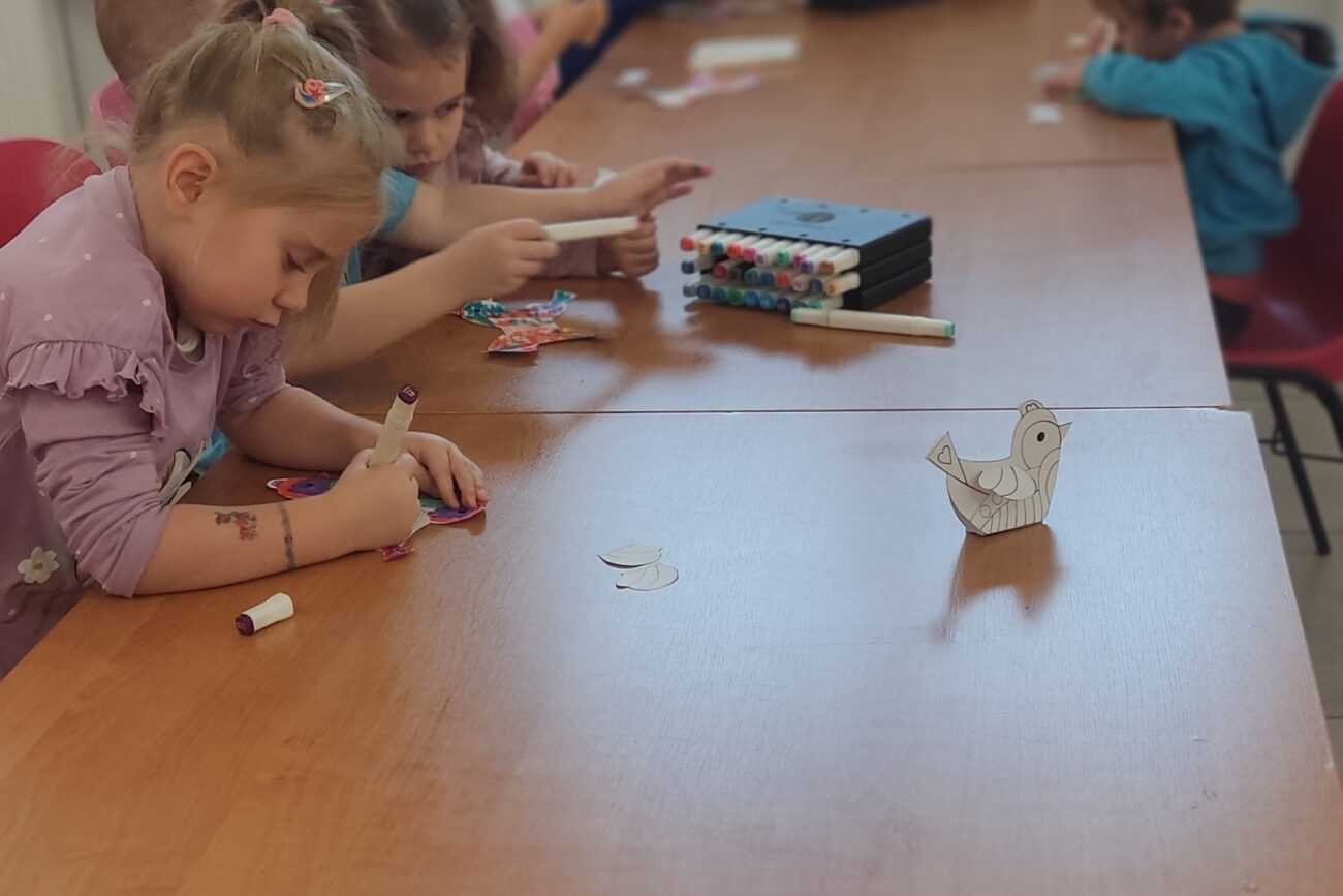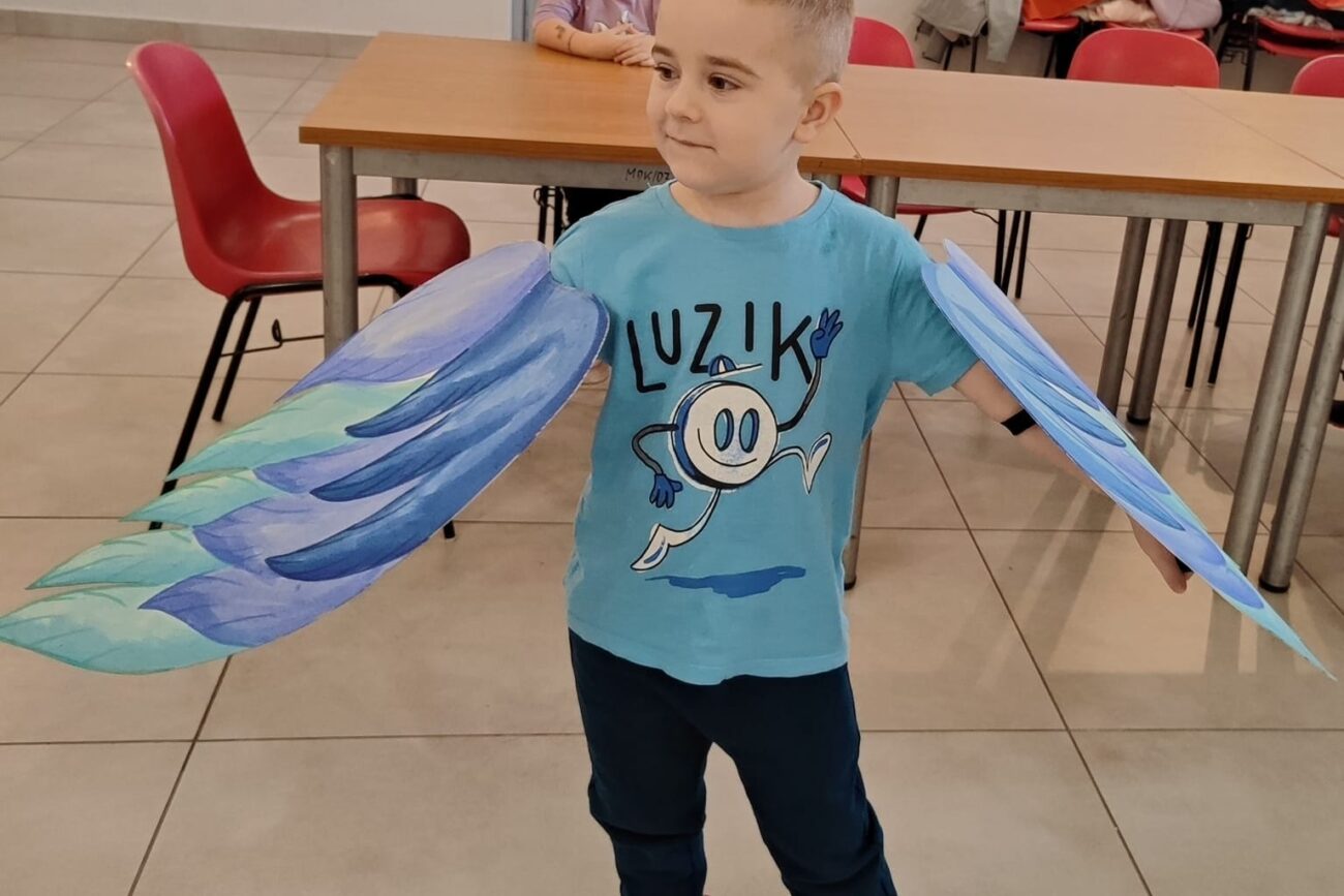 Na warsztatach dowiedziały się jakie ptaki odlatują do ciepłych krajów. Wysłuchały ciekawej bajki, odgadywały ptasie zagadki oraz miały okazję same poczuć się jak ptaki dzięki pięknym skrzydłom. Na koniec wykonały pracę plastyczną.