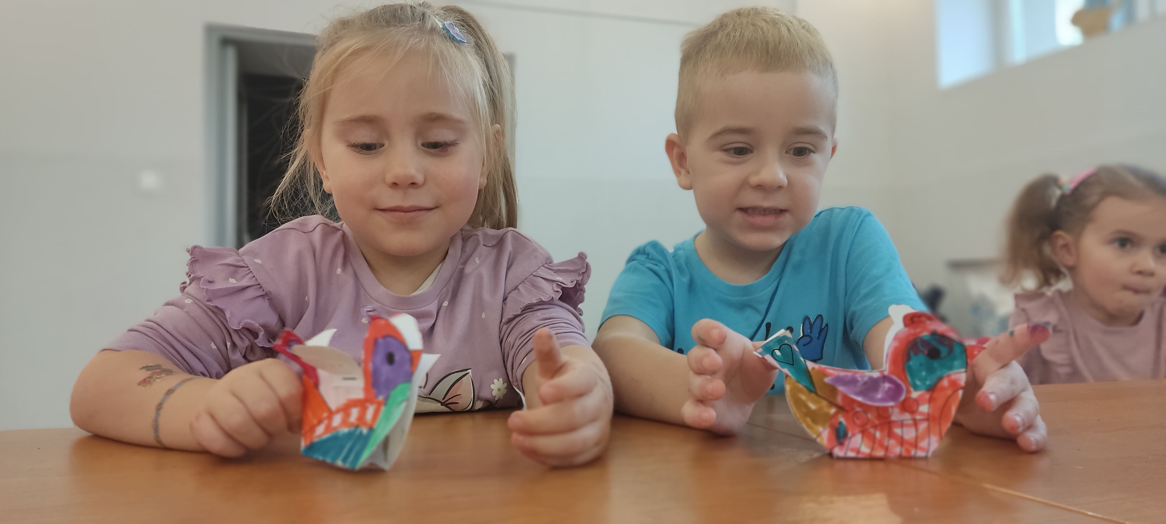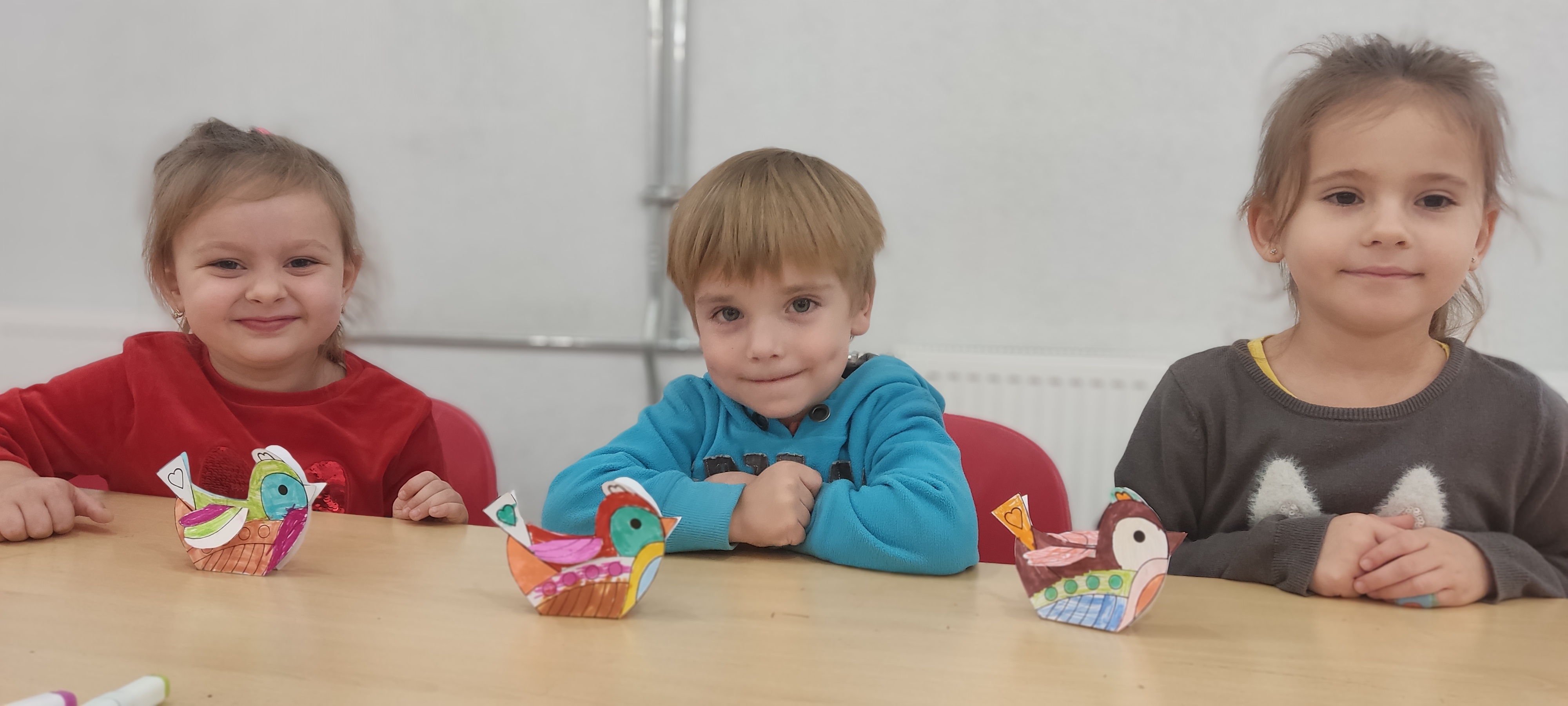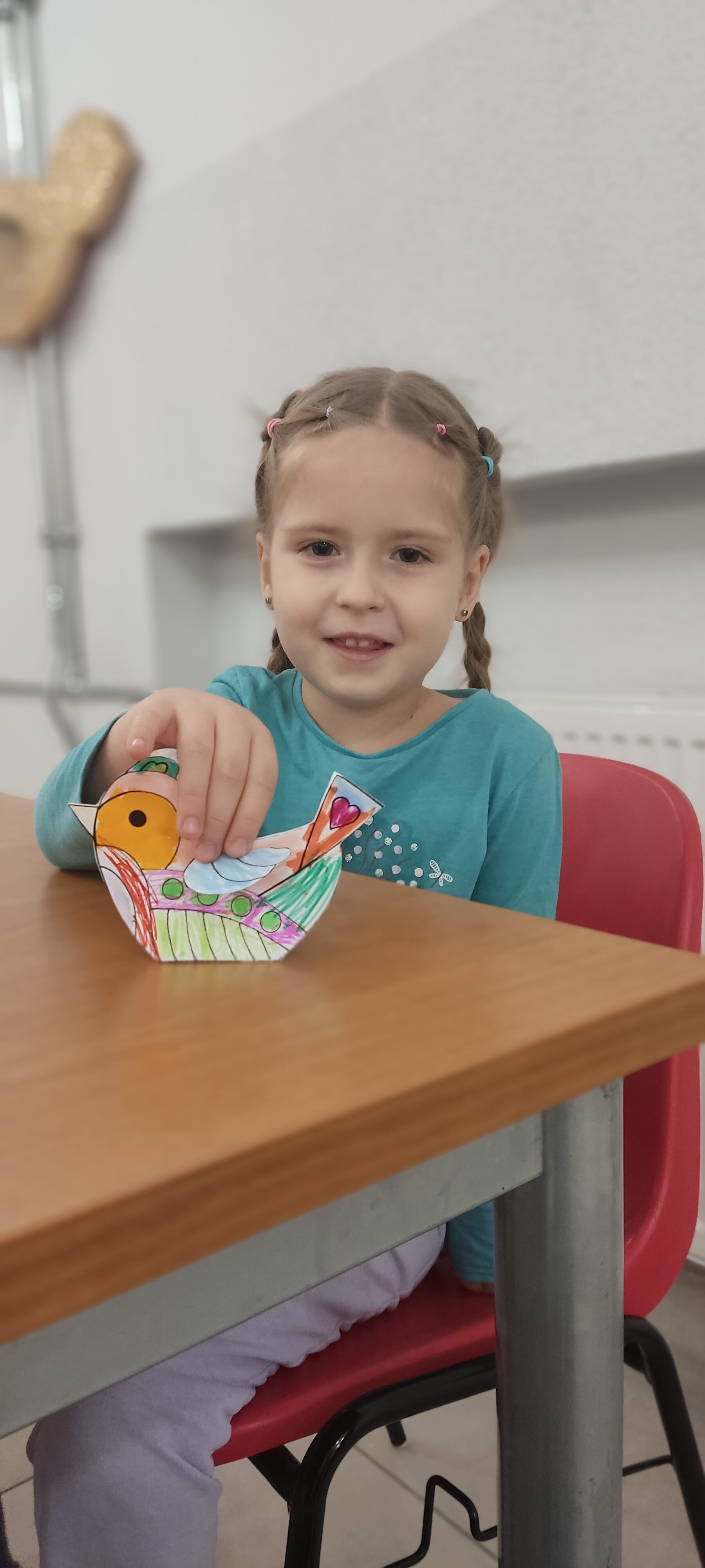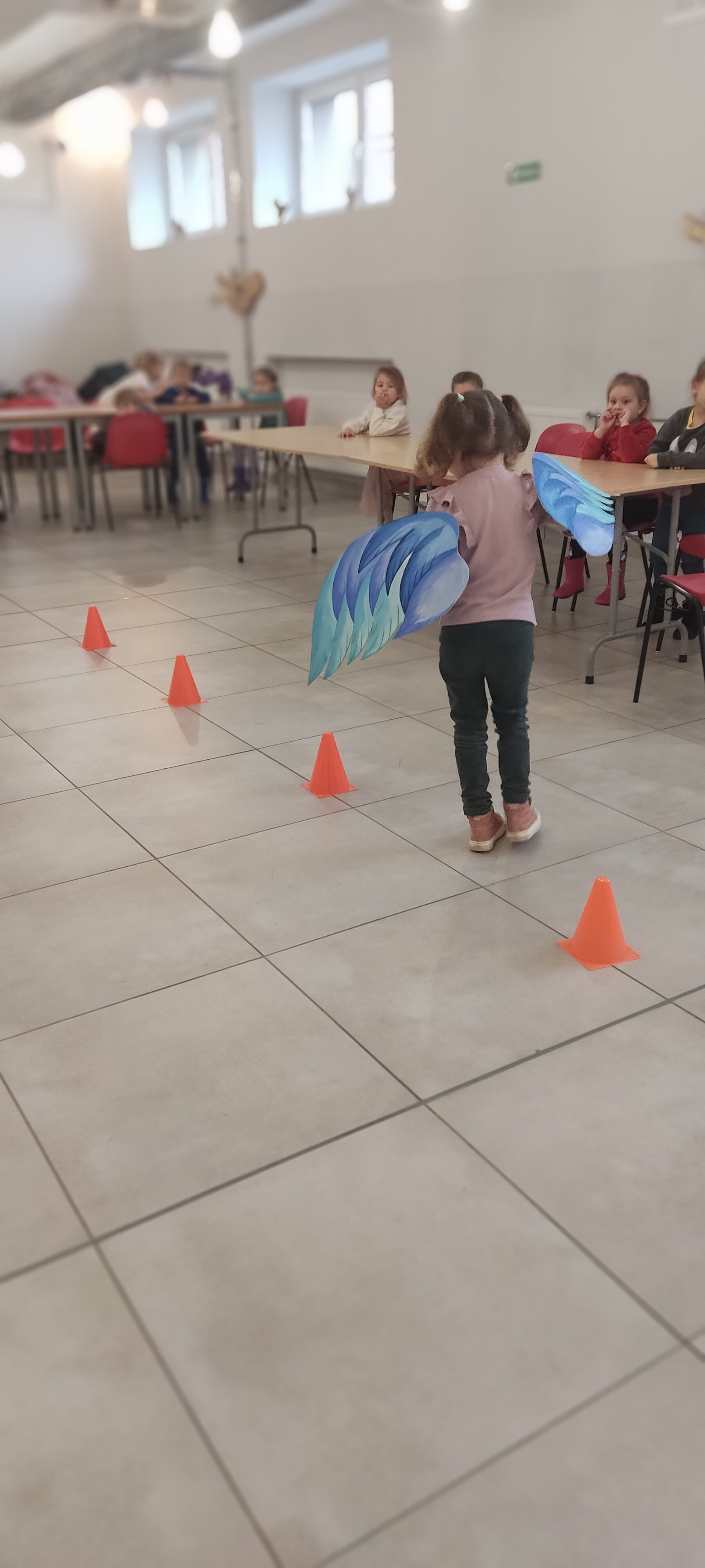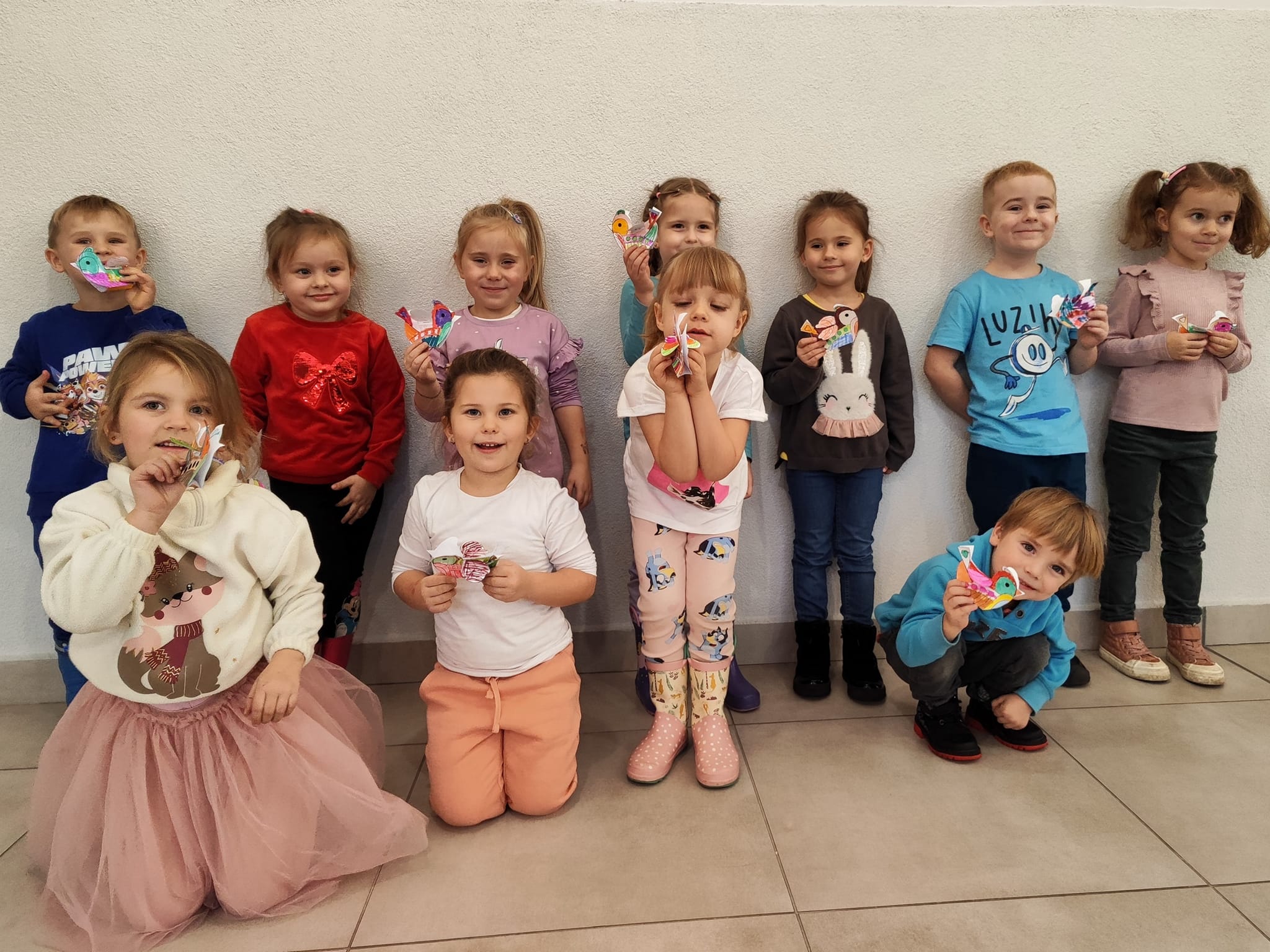 Na warsztatach dowiedziały się jakie ptaki odlatują do ciepłych krajów. Wysłuchały ciekawej bajki, odgadywały ptasie zagadki oraz miały okazję same poczuć się jak ptaki dzięki pięknym skrzydłom. Na koniec wykonały pracę plastyczną.