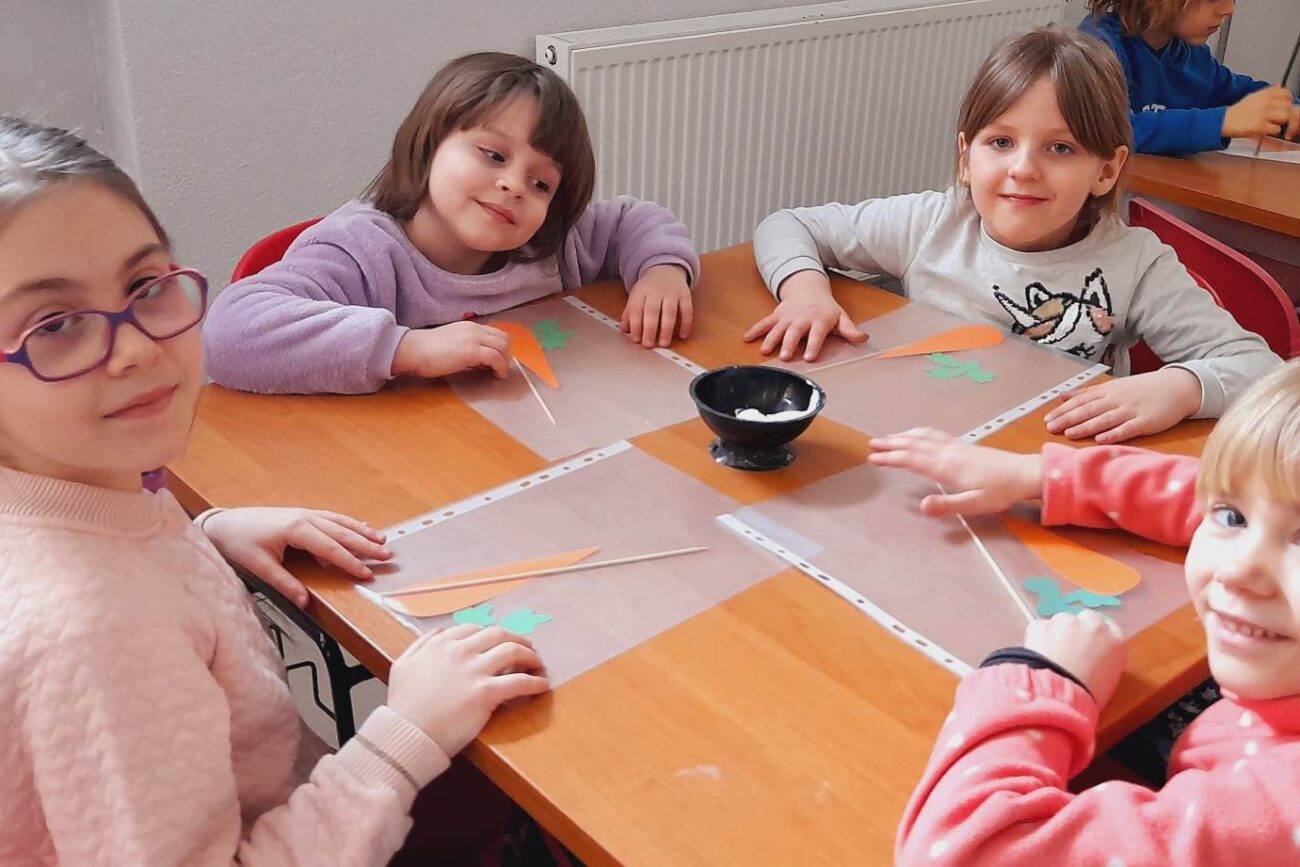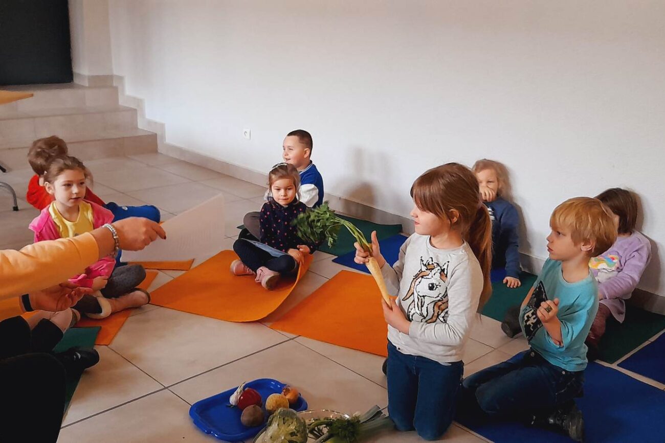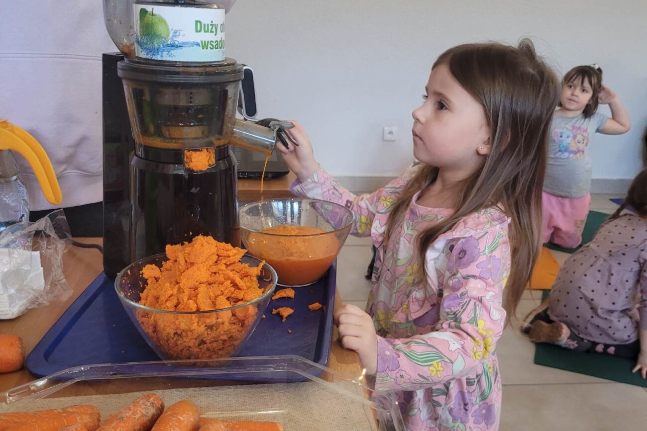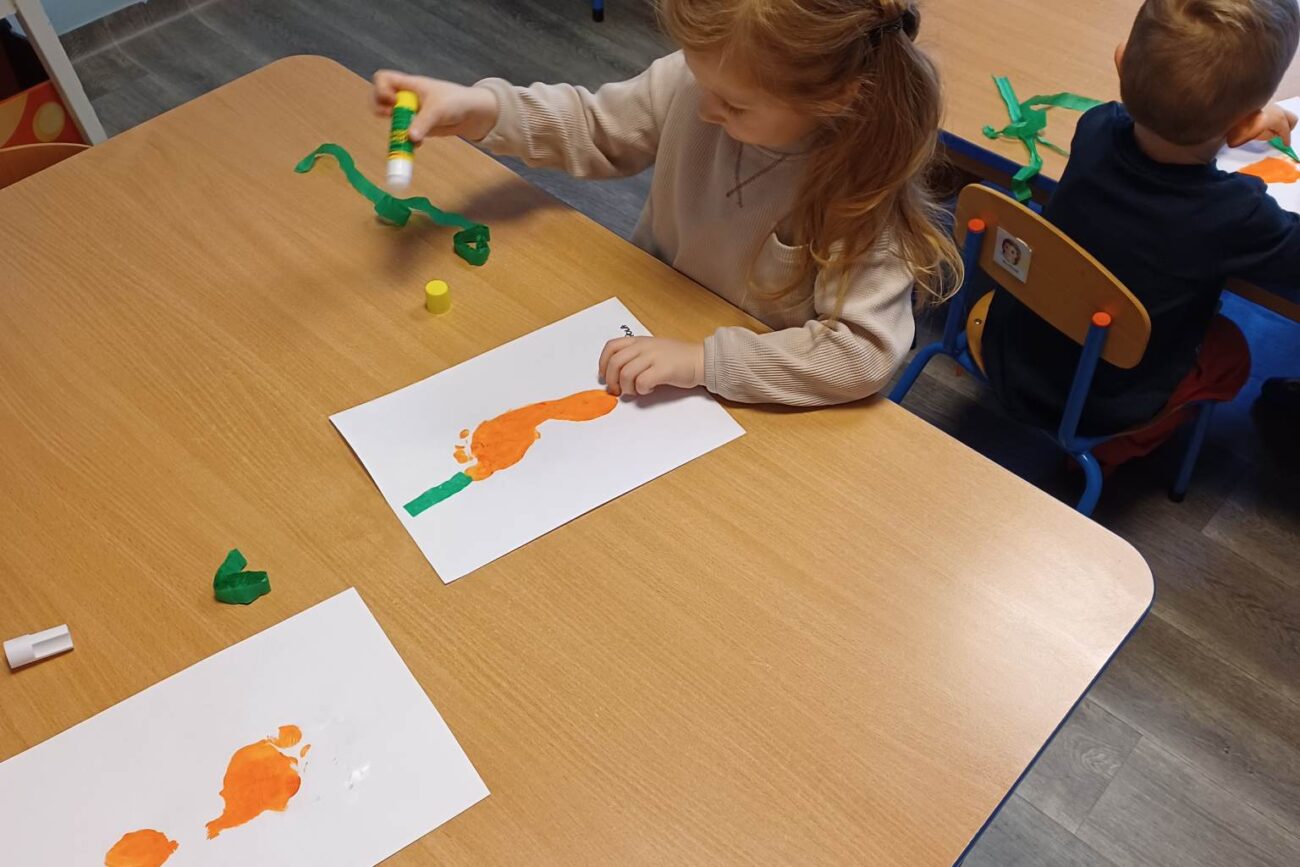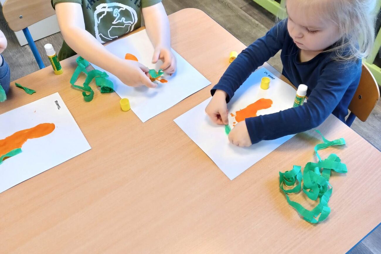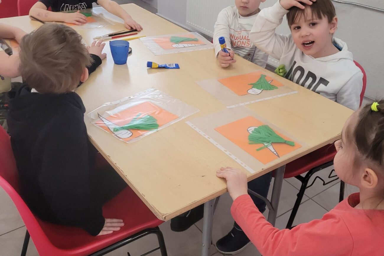 Dnia 03.04. oraz 04.04.2023 .grupa „Biedronki ” oraz grupa ” Motylki” uczestniczyła w zajęciach zorganizowanych przez MDK- Kazimierz Górniczy z okazji ” Dnia Marchewki”. Poprzez różnorodne zadania do wykonania przygotowane przez Panią z Biblioteki dzieci świetnie się bawiły, poznając przy tym wartości odżywcze marchewki. Słuchały piosenki: „Na marchewki urodziny”, a następnie wybierały i nazywały spośród warzyw tylko te, występujące w treści piosenki. Wykonywały zdrowy wyciskany sok marchwiowy i go degustowały, porównując sok naturalnie przygotowany z sokiem ze sklepu. Uczestniczyły w drużynowych zawodach na czas : „Marchewkowe pole”, gdzie miały zebrać jak najszybciej marchewki. Dużą frajdę sprawiła dzieciom zabawa integracyjna z wykorzystaniem chusty Klanza, gdzie miały za zadanie utrzymać jak najdłużej na jej powierzchni, „świeżaki”. Na koniec spotkania wykonały pracę plastyczną Grupa „Biedronki ” oraz ” Motylki” składa podziękowania Pani z Biblioteki za włożony wkład pracy i piękne przygotowanie zajęć oraz przybliżenie dzieciom tematyki zdrowotnej.