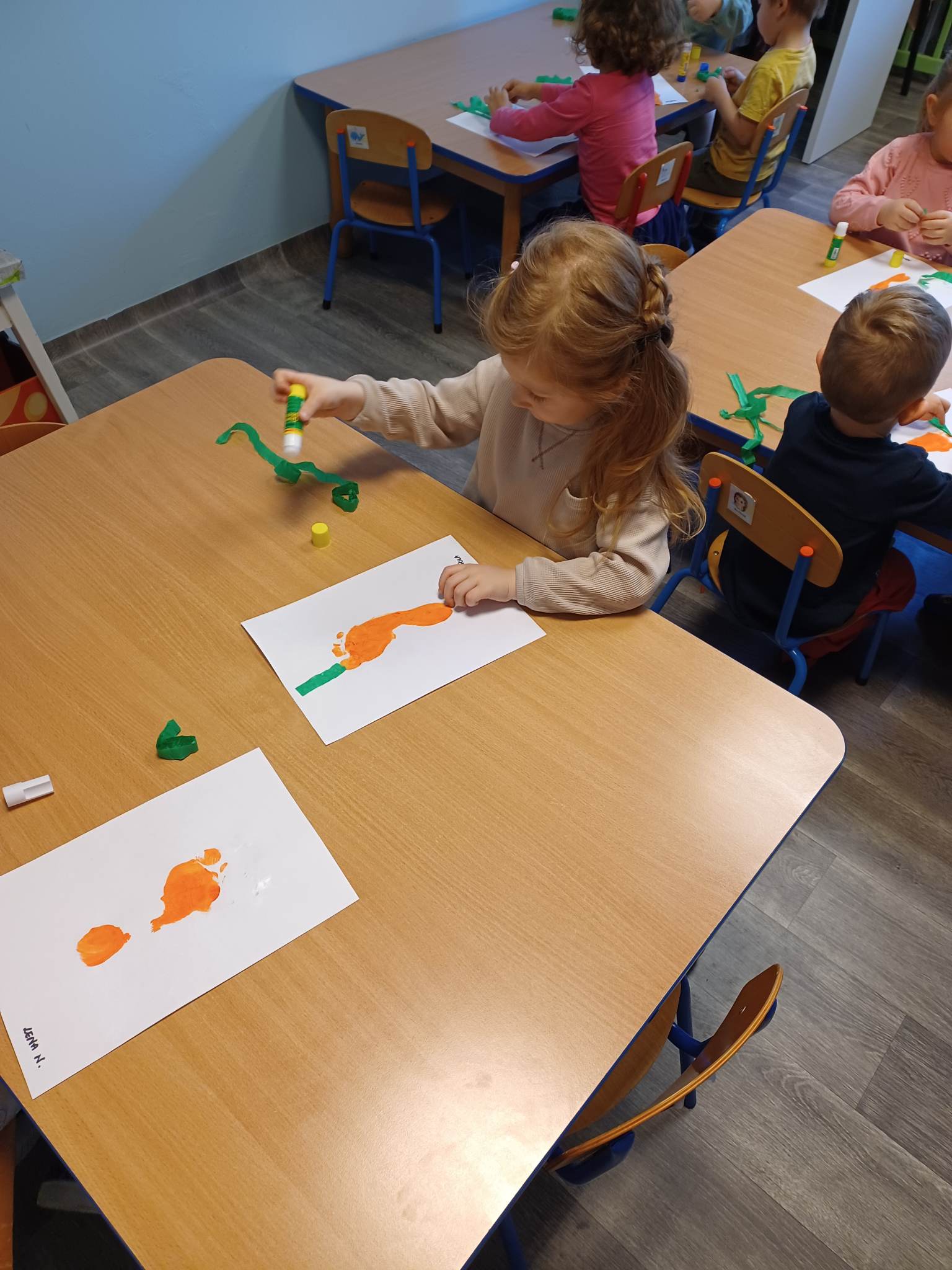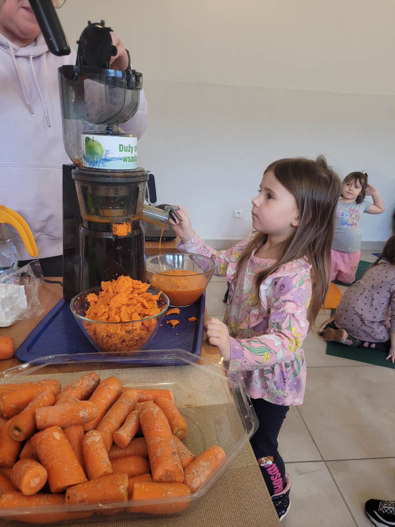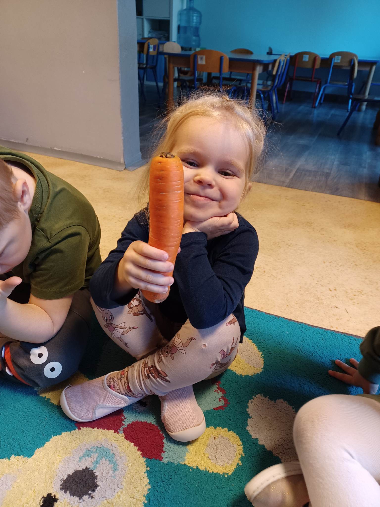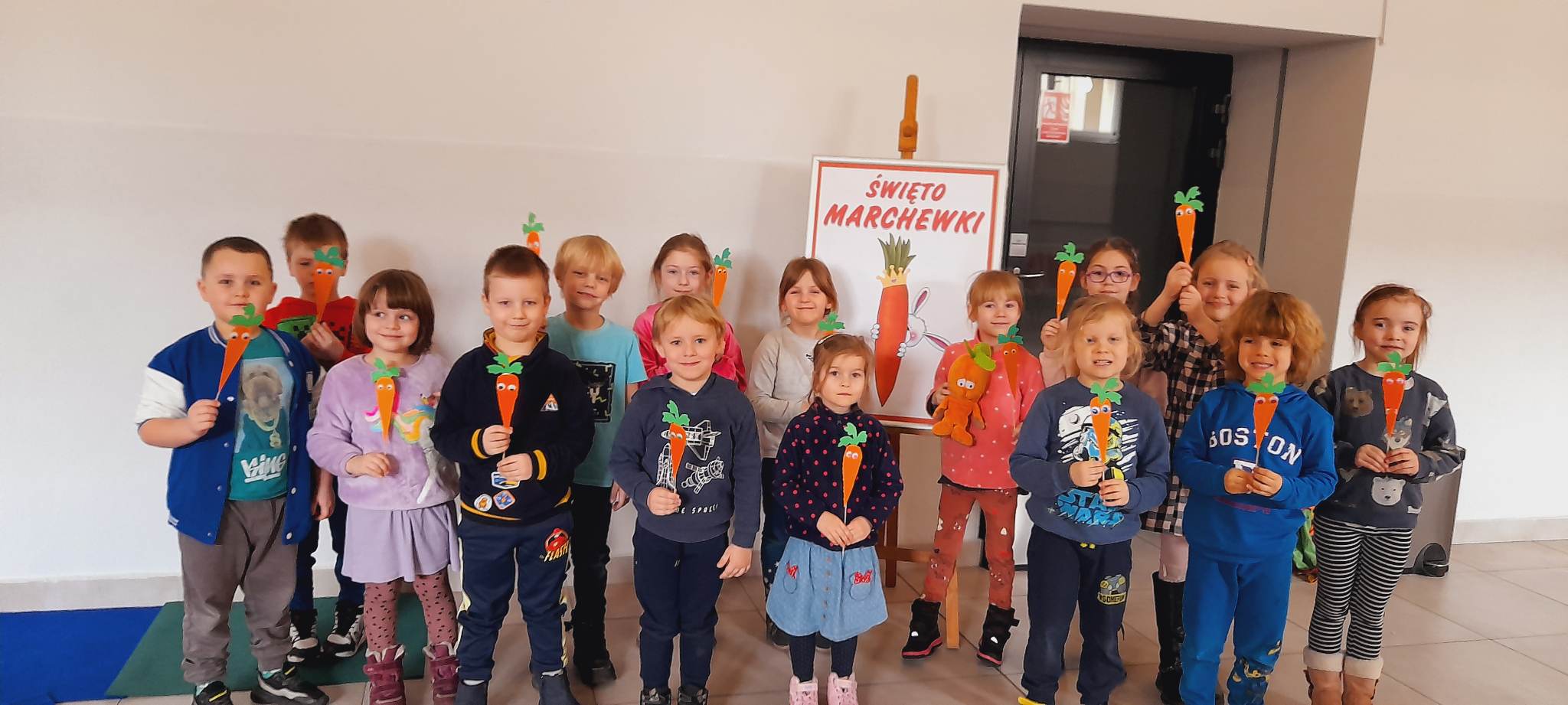 Dnia 03.04. oraz 04.04.2023 .grupa „Biedronki ” oraz grupa ” Motylki” uczestniczyła w zajęciach zorganizowanych przez MDK- Kazimierz Górniczy z okazji ” Dnia Marchewki”. Poprzez różnorodne zadania do wykonania przygotowane przez Panią z Biblioteki dzieci świetnie się bawiły, poznając przy tym wartości odżywcze marchewki. Słuchały piosenki: „Na marchewki urodziny”, a następnie wybierały i nazywały spośród warzyw tylko te, występujące w treści piosenki. Wykonywały zdrowy wyciskany sok marchwiowy i go degustowały, porównując sok naturalnie przygotowany z sokiem ze sklepu. Uczestniczyły w drużynowych zawodach na czas : „Marchewkowe pole”, gdzie miały zebrać jak najszybciej marchewki. Dużą frajdę sprawiła dzieciom zabawa integracyjna z wykorzystaniem chusty Klanza, gdzie miały za zadanie utrzymać jak najdłużej na jej powierzchni, „świeżaki”. Na koniec spotkania wykonały pracę plastyczną Grupa „Biedronki ” oraz ” Motylki” składa podziękowania Pani z Biblioteki za włożony wkład pracy i piękne przygotowanie zajęć oraz przybliżenie dzieciom tematyki zdrowotnej.