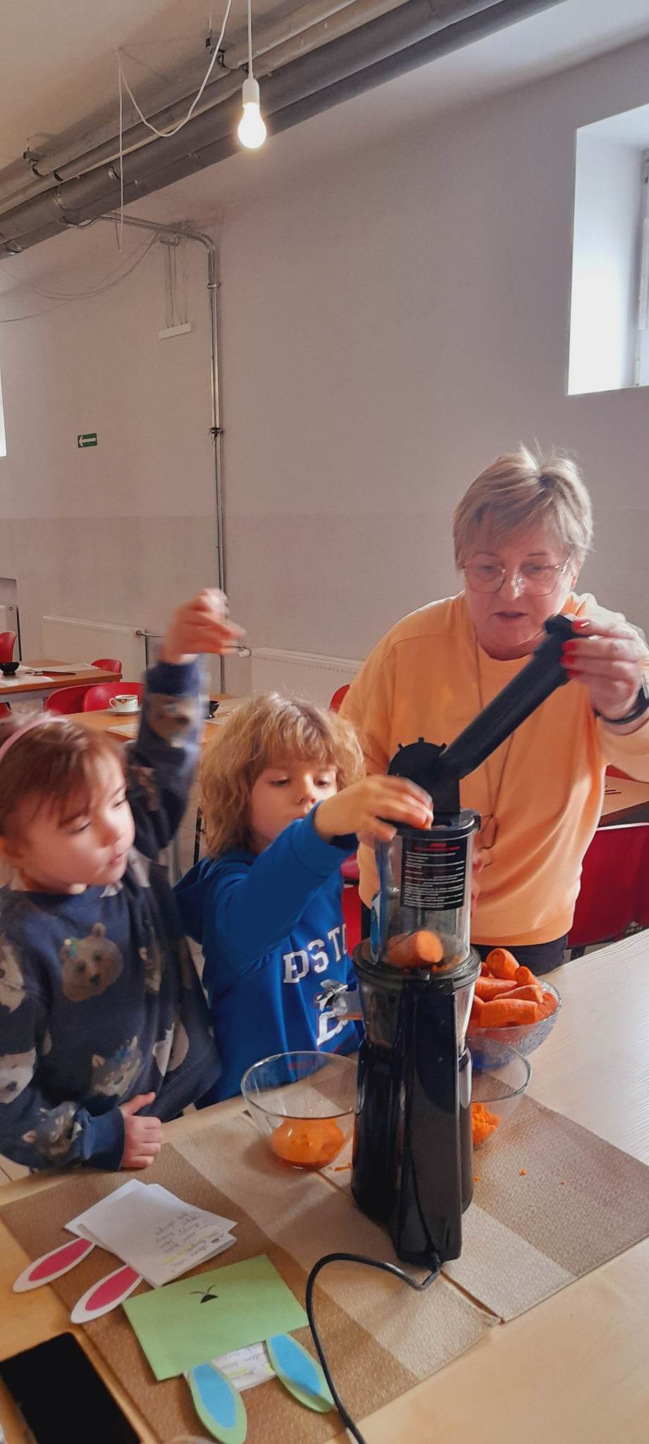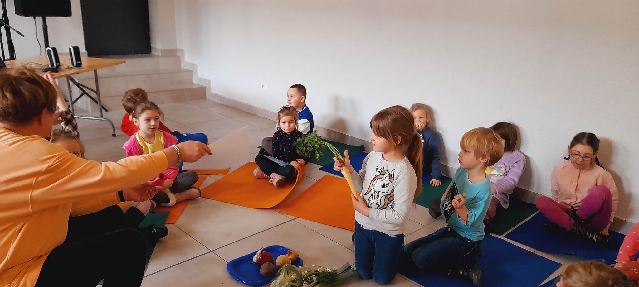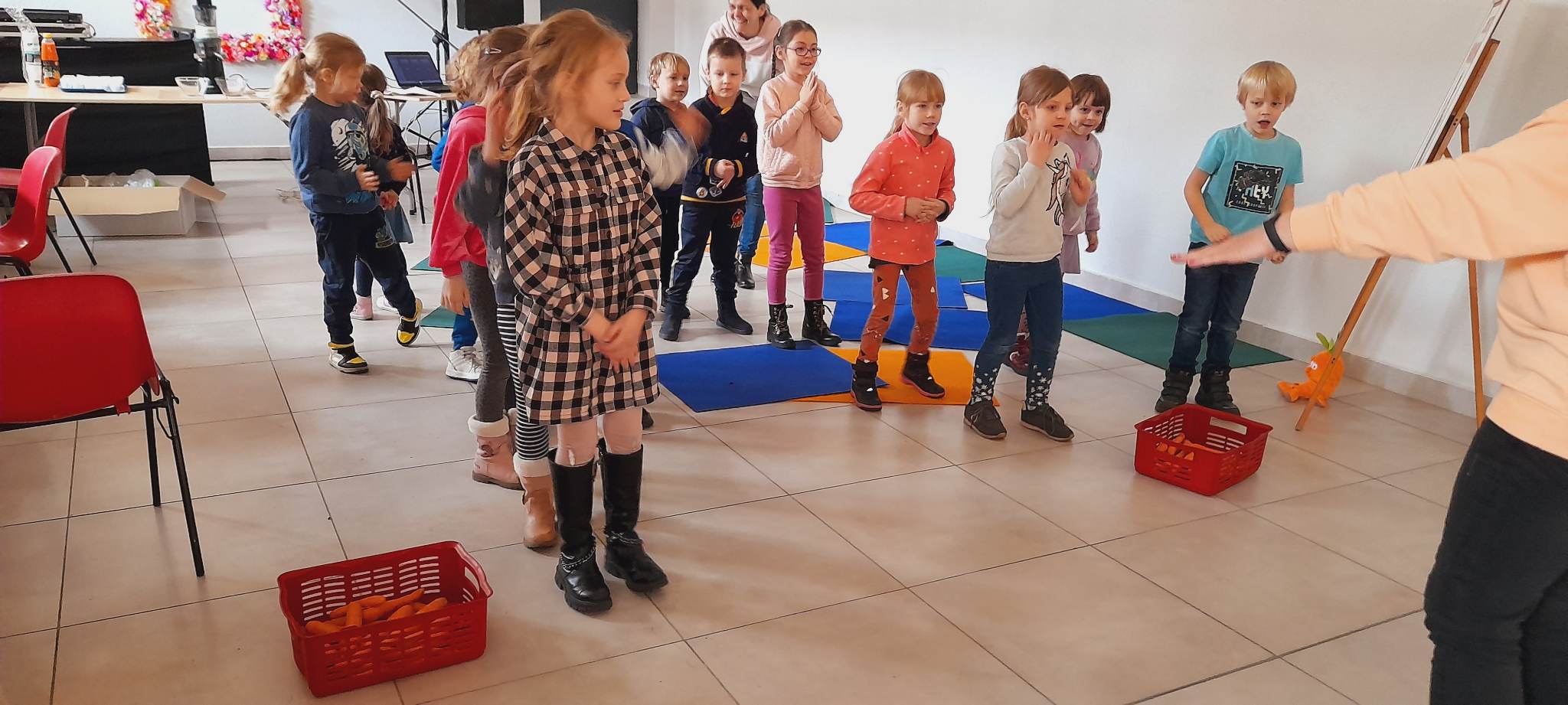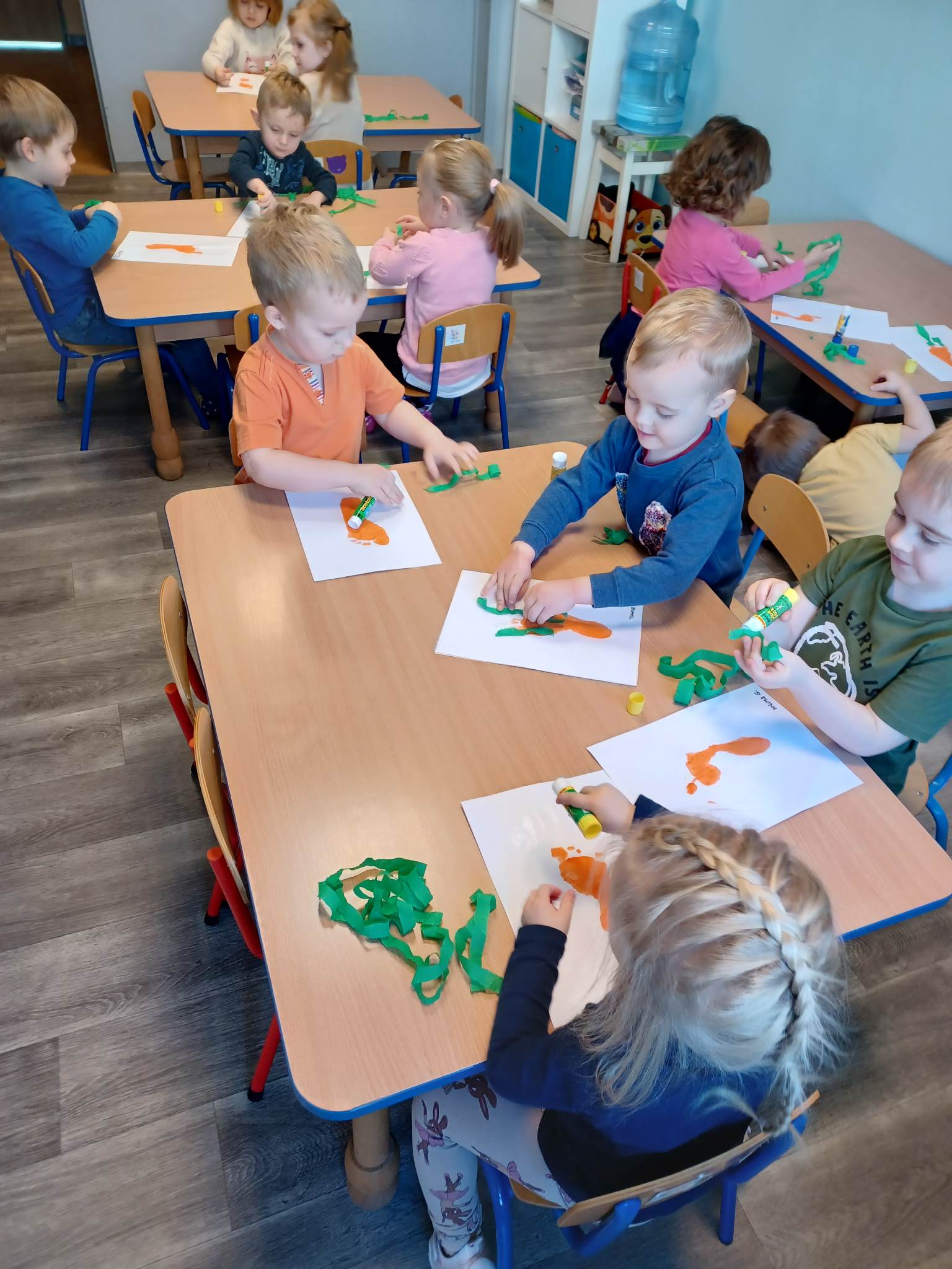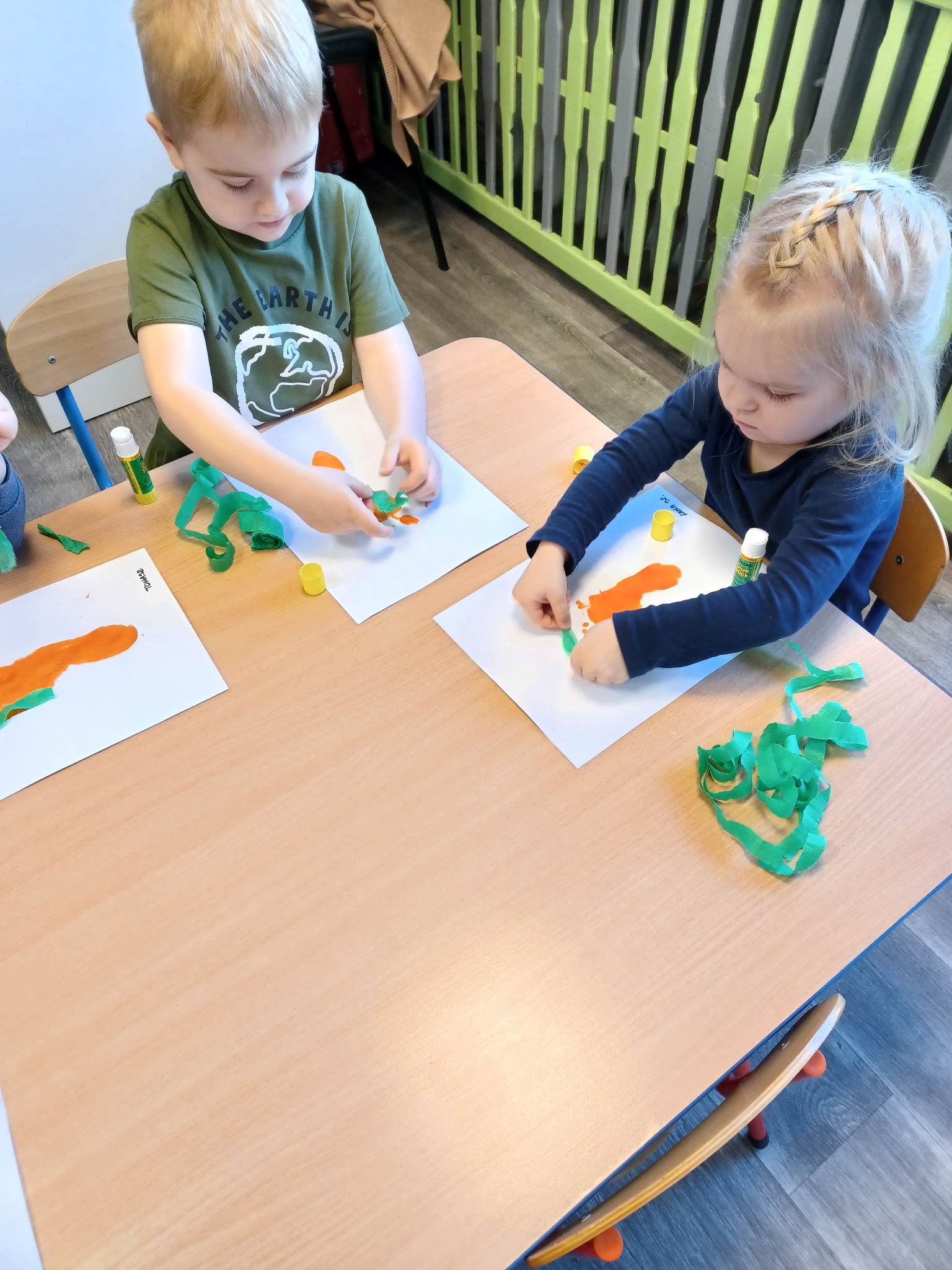 Dnia 03.04. oraz 04.04.2023 .grupa „Biedronki ” oraz grupa ” Motylki” uczestniczyła w zajęciach zorganizowanych przez MDK- Kazimierz Górniczy z okazji ” Dnia Marchewki”. Poprzez różnorodne zadania do wykonania przygotowane przez Panią z Biblioteki dzieci świetnie się bawiły, poznając przy tym wartości odżywcze marchewki. Słuchały piosenki: „Na marchewki urodziny”, a następnie wybierały i nazywały spośród warzyw tylko te, występujące w treści piosenki. Wykonywały zdrowy wyciskany sok marchwiowy i go degustowały, porównując sok naturalnie przygotowany z sokiem ze sklepu. Uczestniczyły w drużynowych zawodach na czas : „Marchewkowe pole”, gdzie miały zebrać jak najszybciej marchewki. Dużą frajdę sprawiła dzieciom zabawa integracyjna z wykorzystaniem chusty Klanza, gdzie miały za zadanie utrzymać jak najdłużej na jej powierzchni, „świeżaki”. Na koniec spotkania wykonały pracę plastyczną Grupa „Biedronki ” oraz ” Motylki” składa podziękowania Pani z Biblioteki za włożony wkład pracy i piękne przygotowanie zajęć oraz przybliżenie dzieciom tematyki zdrowotnej.