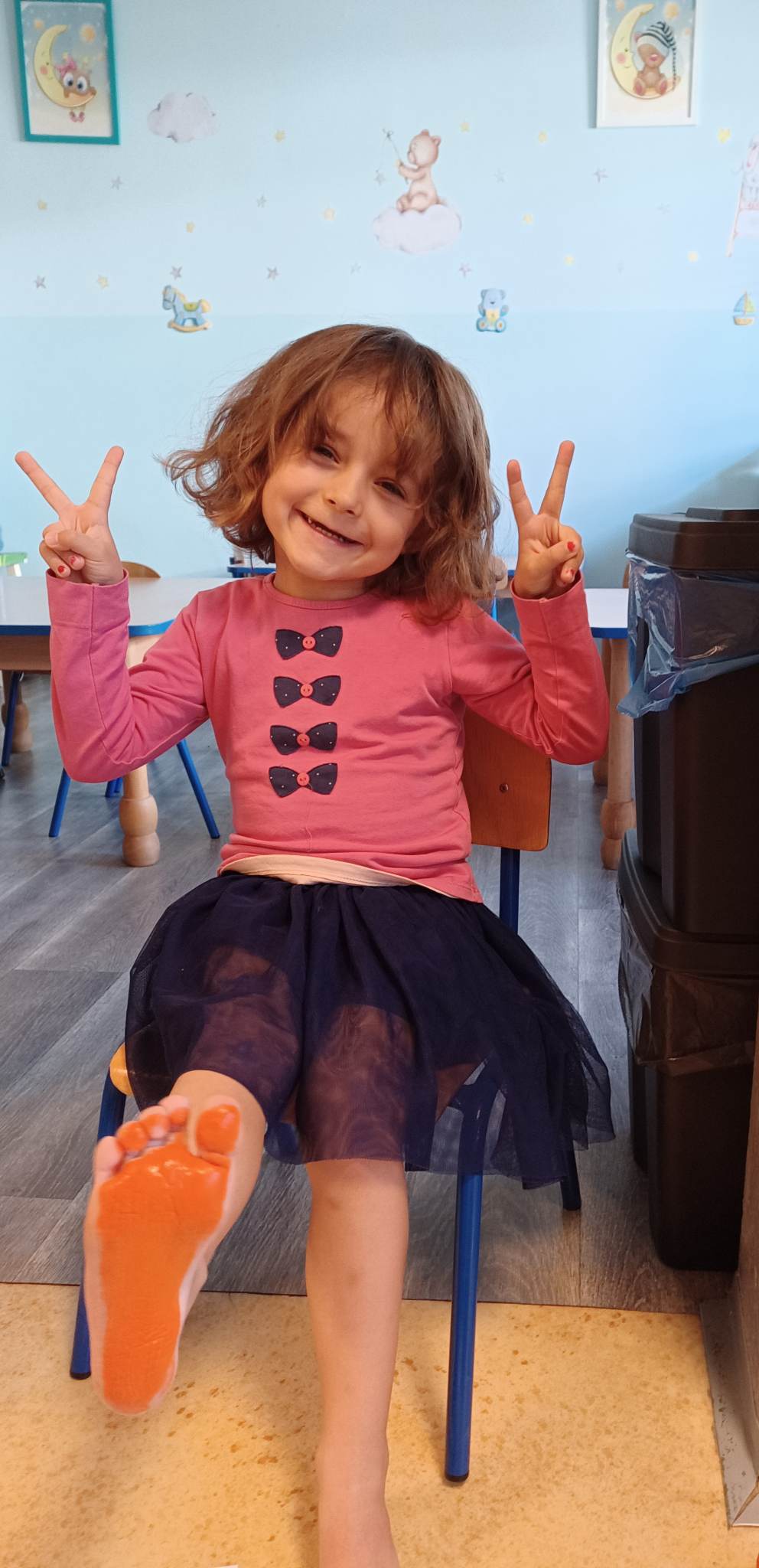 „Misie” również świętowały Dzień Marchewki w przedszkolu. Rozpoznawały marchewkę po kształcie, zastanawiały się co można z niej zrobić i do czego wykorzystać a na zakończenie wykonały marchewkę odbijając swoje stopy w pomarańczowej farbie i dorabiając jej liście z bibuły.