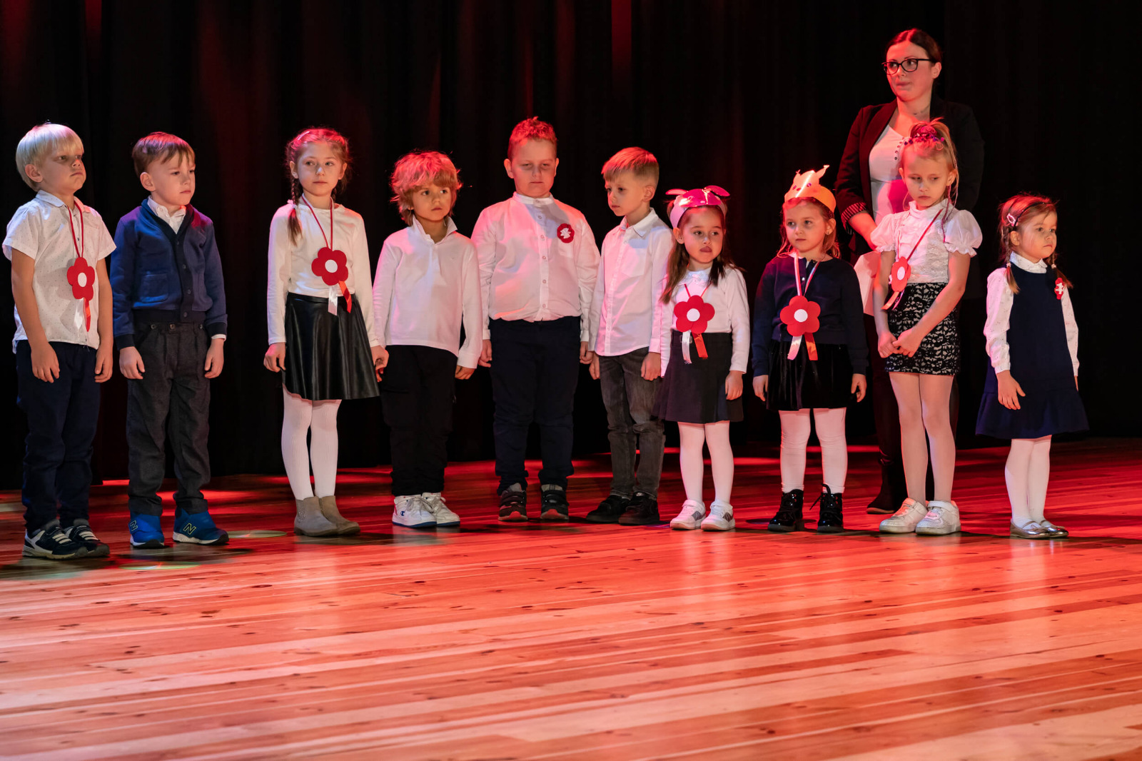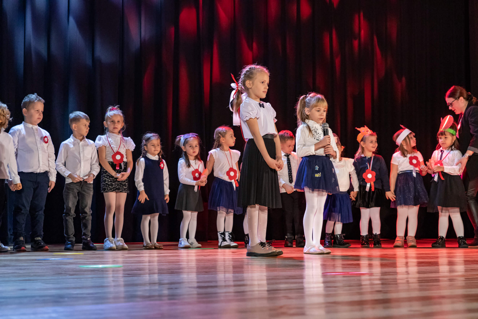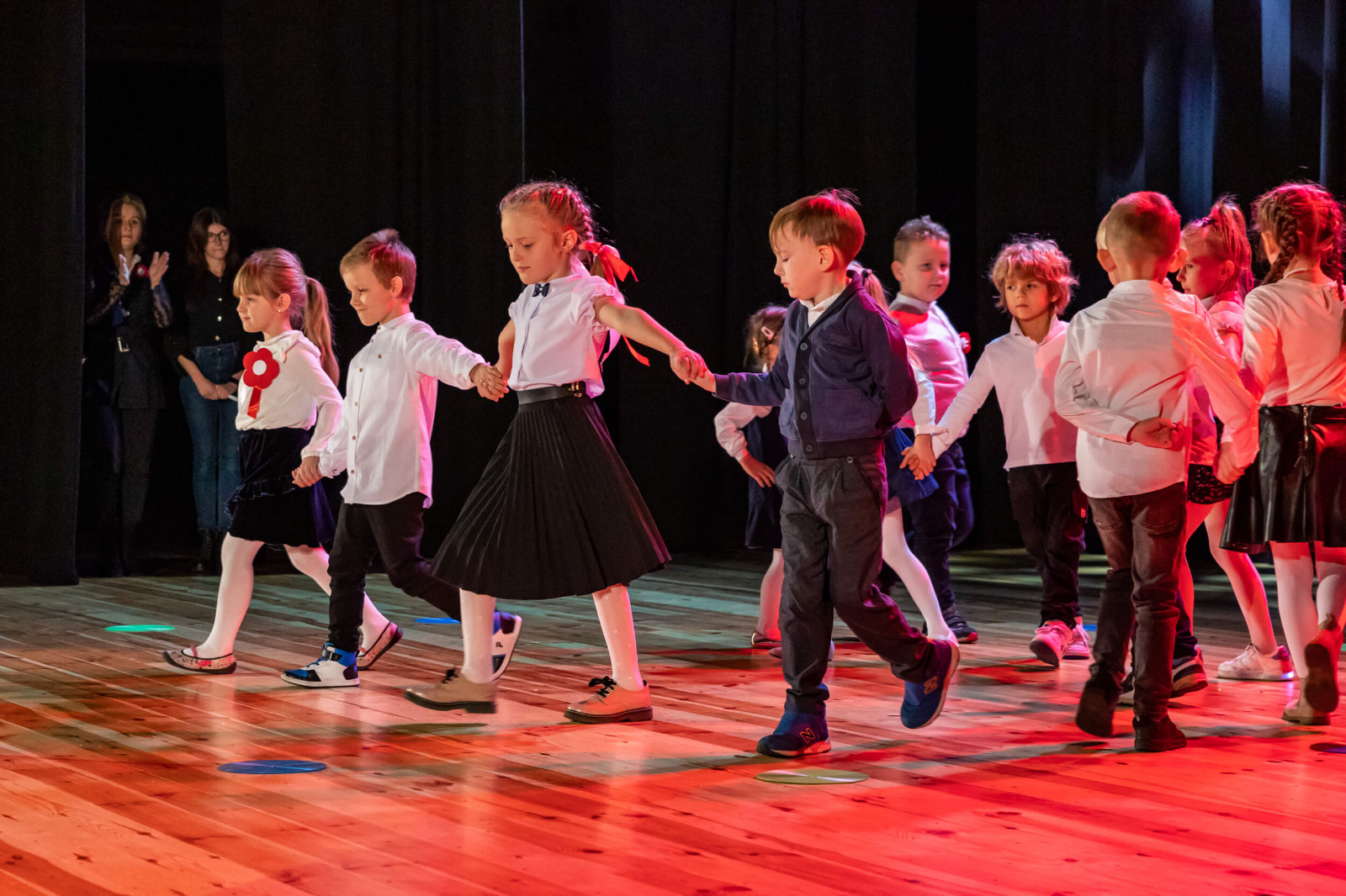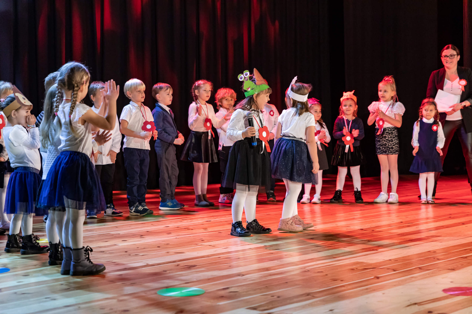 Dzieci reprezentujące nasze przedszkole wystąpiły z przepięknym występem pod kierunkiem Pań nauczycielek. Występ dzieci rozpoczęły od tańca narodowego – poloneza. Podczas występu dzieci zaprezentowały wiersze, piosenki, nie zabrakło również tańca.