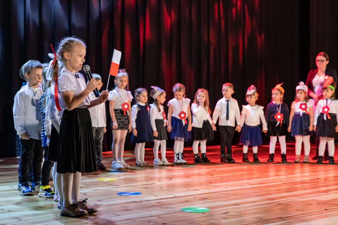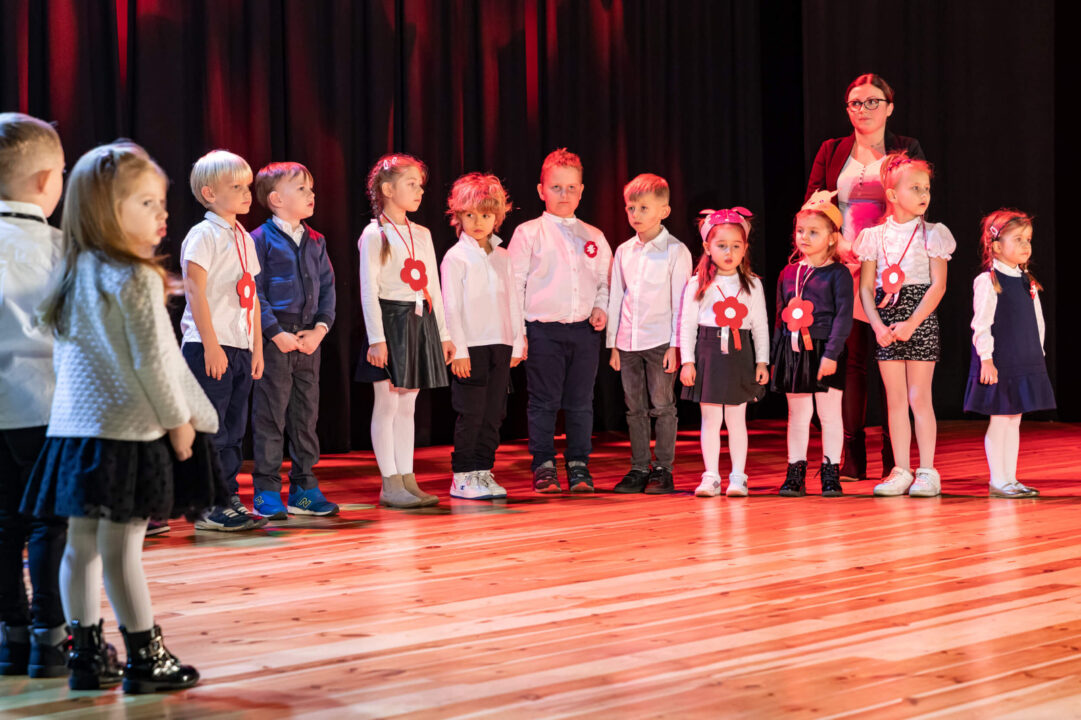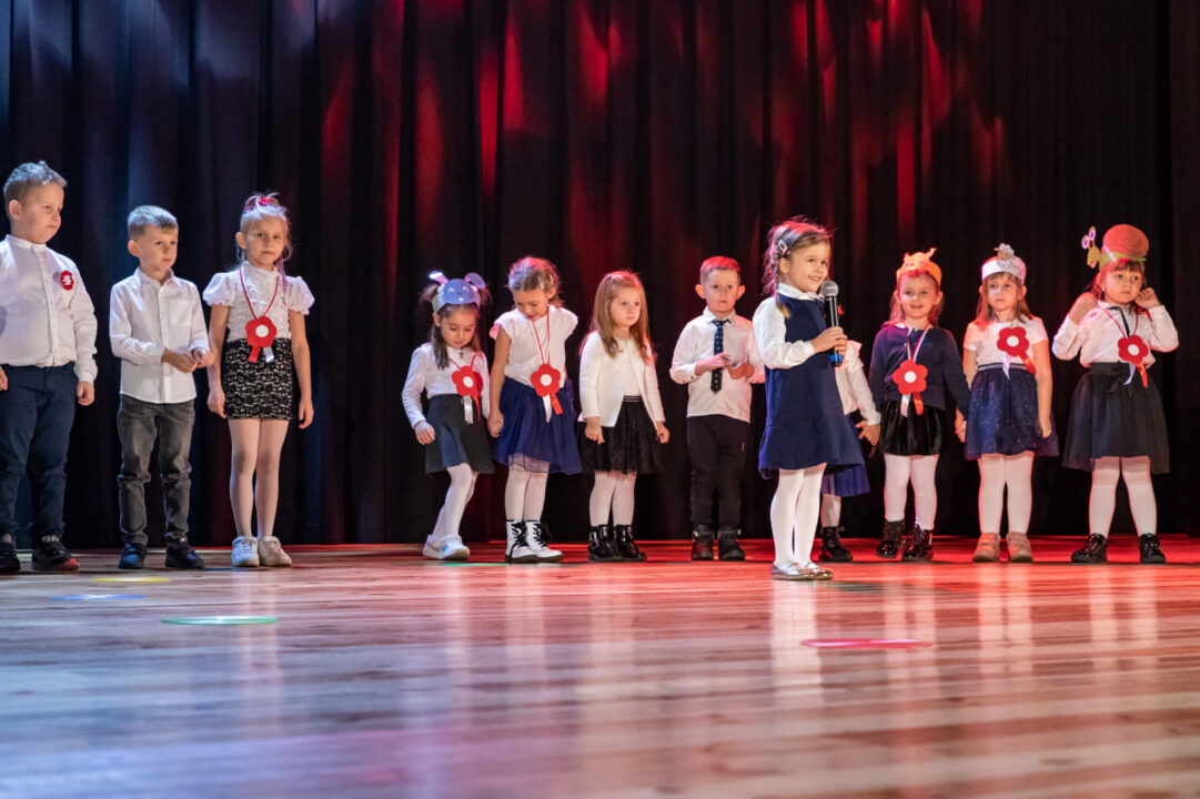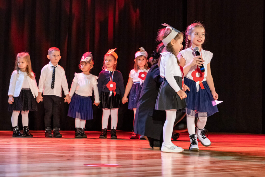Dzieci reprezentujące nasze przedszkole wystąpiły z przepięknym występem pod kierunkiem Pań nauczycielek. Występ dzieci rozpoczęły od tańca narodowego – poloneza. Podczas występu dzieci zaprezentowały wiersze, piosenki, nie zabrakło również tańca.