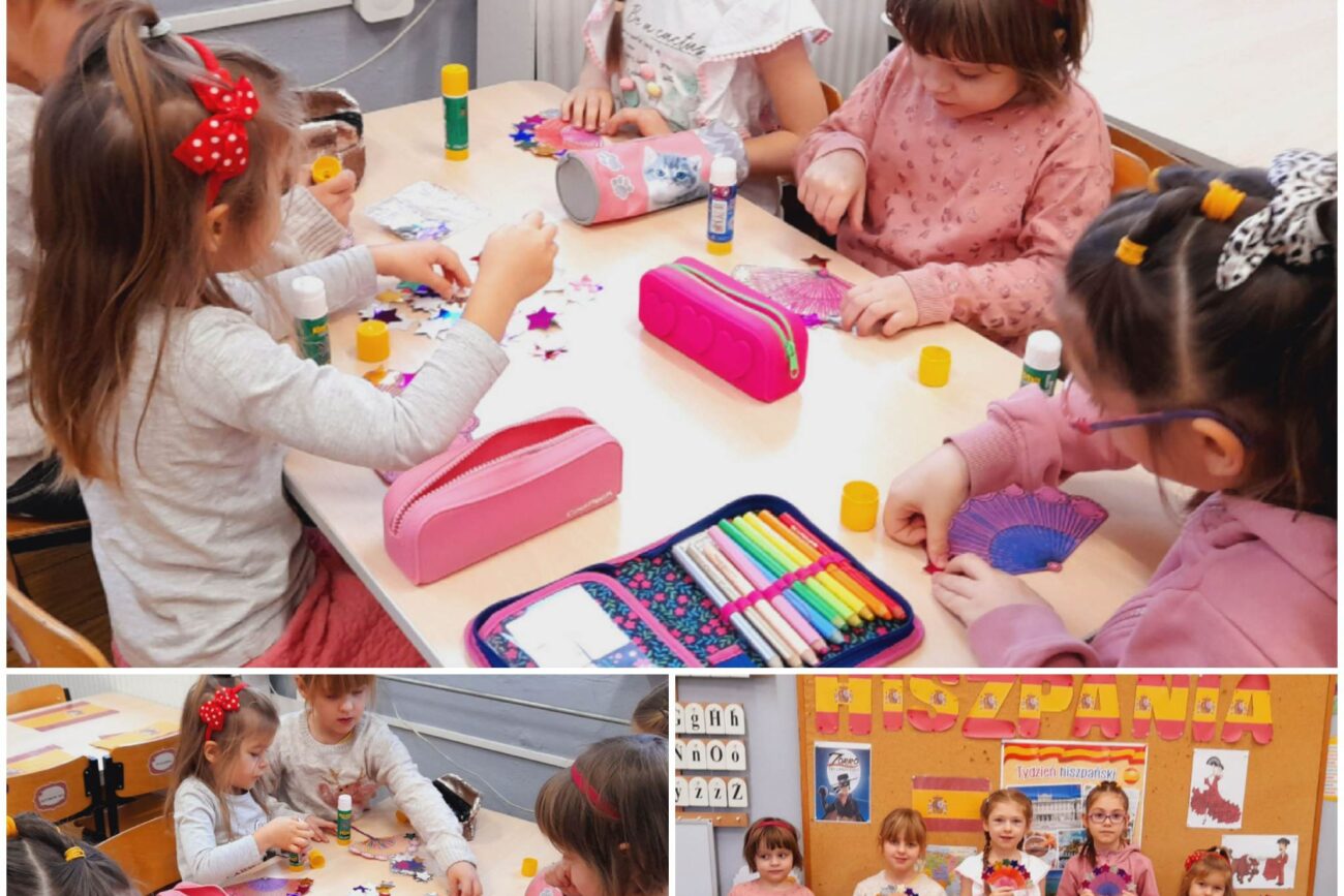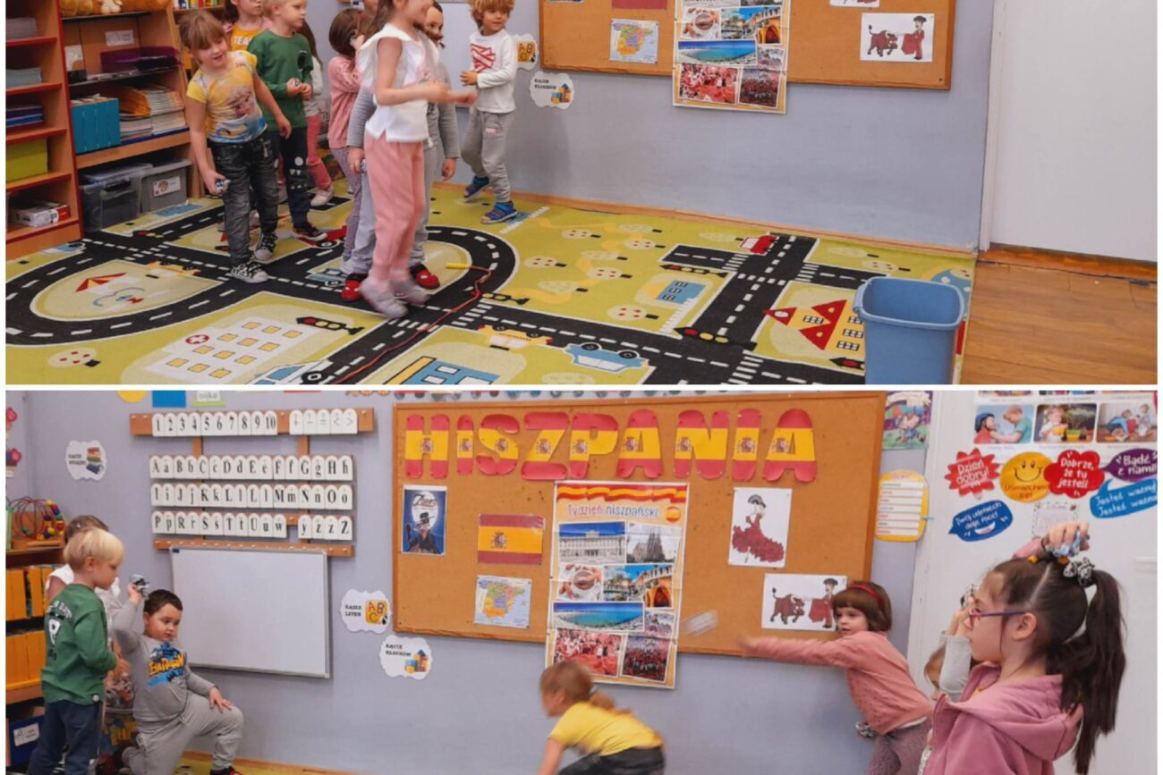 W dniu 18.11.2022r. podczas zajęć nasze przedszkolaki wybrały się w podróż do słonecznej Hiszpanii. Dzieci dowiedziały się, gdzie leży na mapie Europy, a także jak nazywa się jej stolica. Pani Madzia nauczyła przedszkolaków podstawowych słów hiszpańskich. Wszystkie grupy poznały najciekawsze tradycje. Najbardziej spodobała się La Tomatina czyli „Bitwa na pomidory” oraz Corrida. Dzieci zatańczyły w rytm hiszpańskiej muzyki i wykonały samodzielnie piękne hiszpańskie wachlarze. a grupa najstarsza: maski ,,Zorro”.