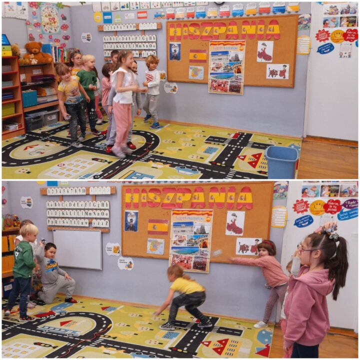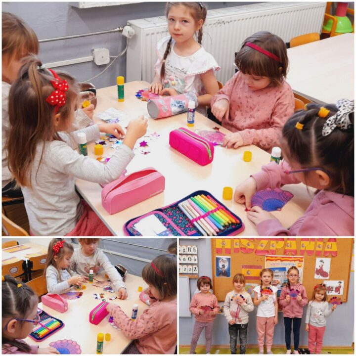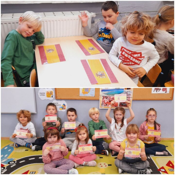 W dniu 18.11.2022r. podczas zajęć nasze przedszkolaki wybrały się w podróż do słonecznej Hiszpanii. Dzieci dowiedziały się, gdzie leży na mapie Europy, a także jak nazywa się jej stolica. Pani Madzia nauczyła przedszkolaków podstawowych słów hiszpańskich. Wszystkie grupy poznały najciekawsze tradycje. Najbardziej spodobała się La Tomatina czyli „Bitwa na pomidory” oraz Corrida. Dzieci zatańczyły w rytm hiszpańskiej muzyki i wykonały samodzielnie piękne hiszpańskie wachlarze. a grupa najstarsza: maski ,,Zorro”.