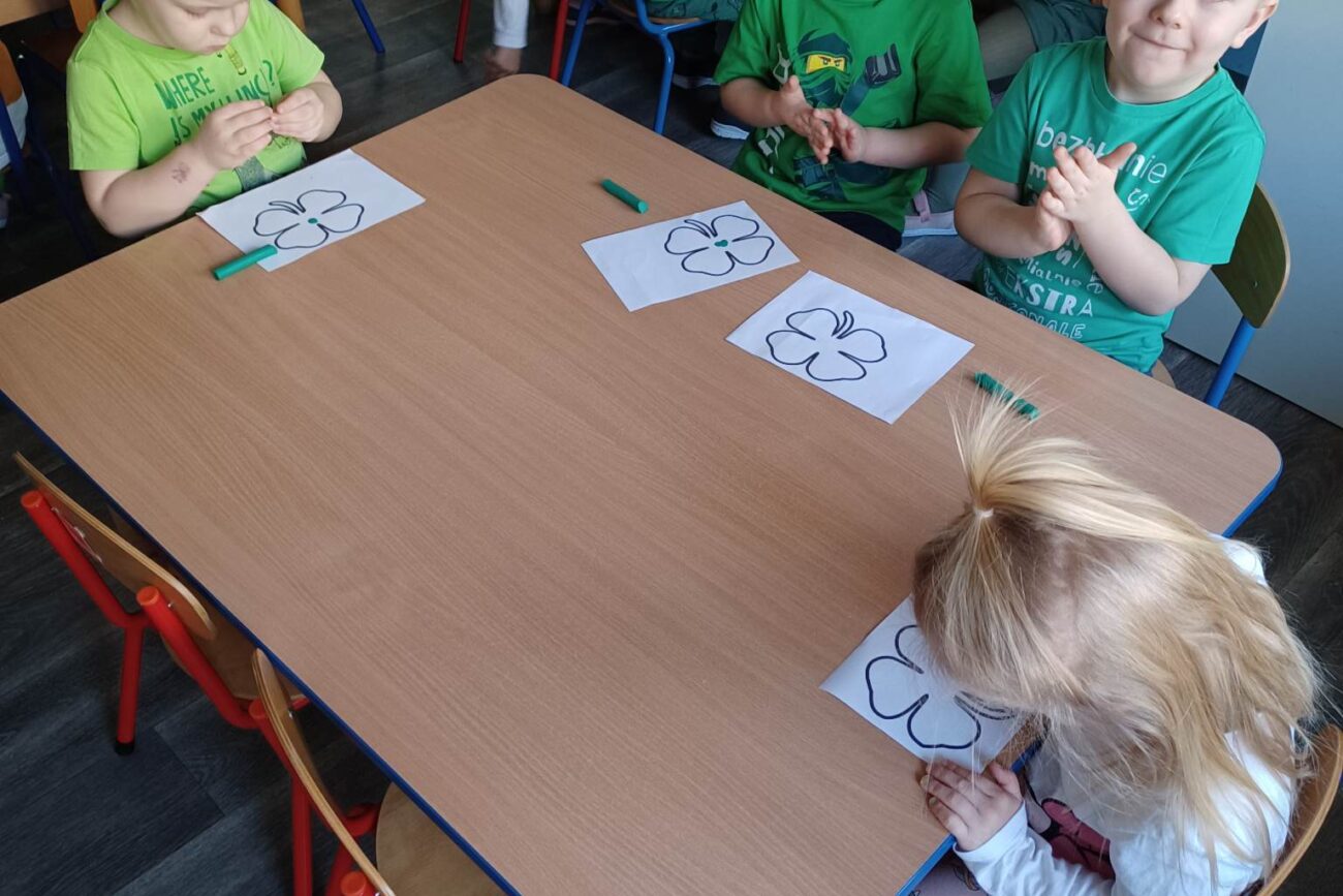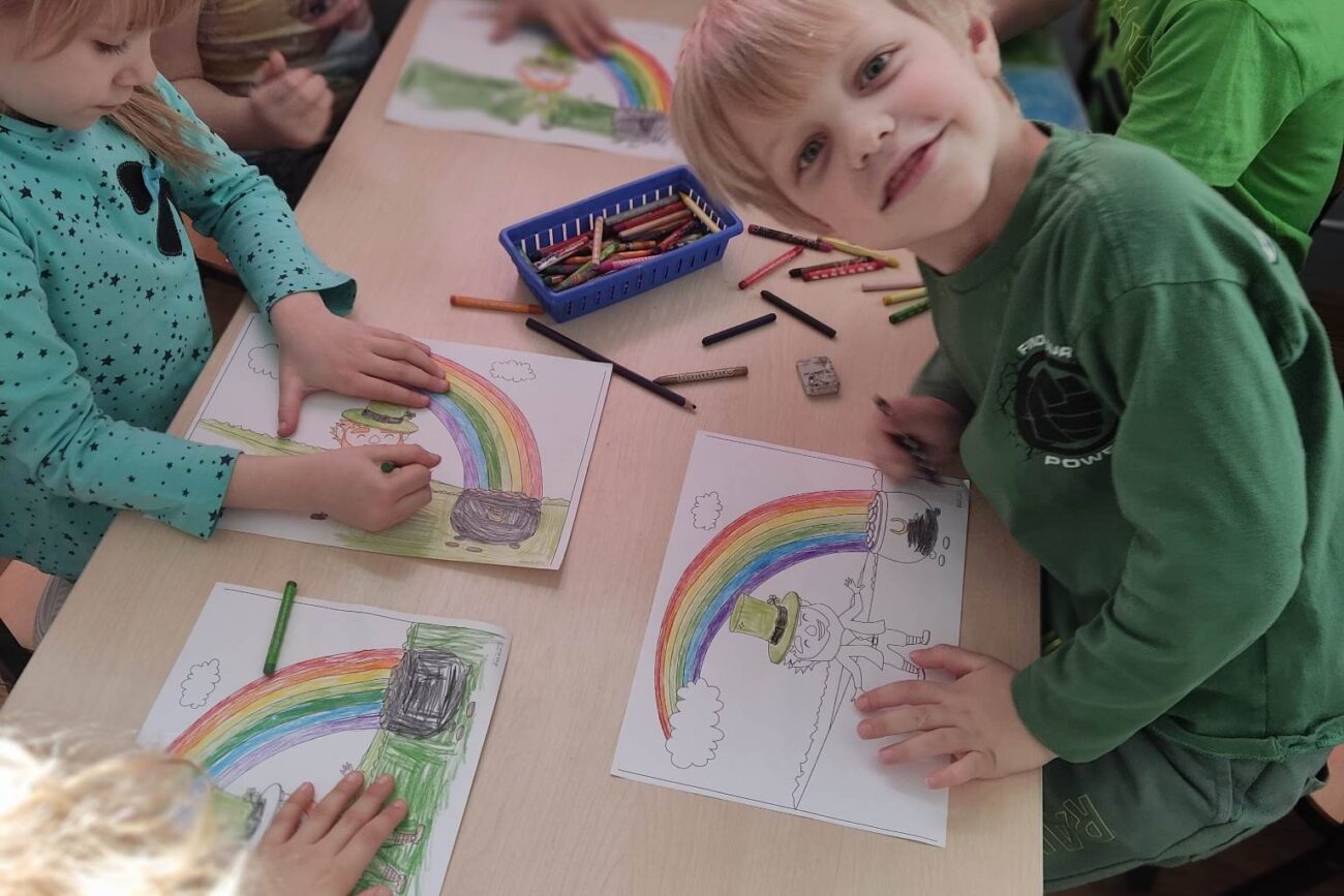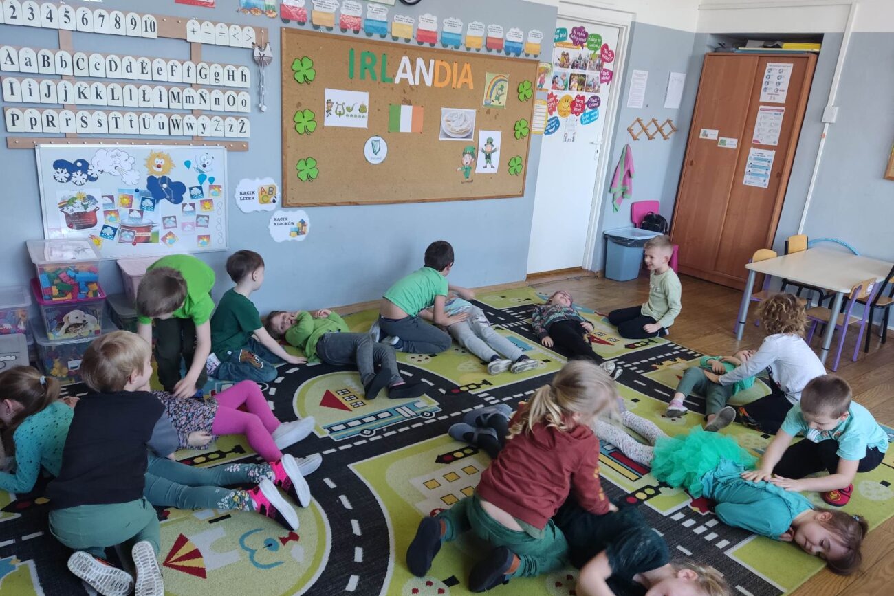 W dniu 17.03.2023r. nasze Przedszkolaki poznały kolejny kraj Europejski – Irlandię. Zaponzały się z wyglądem flagi, nazwę stolicy, położenie na mapie, a także wysłuchały hymnu. Obowiązującym kolorem tego dnia była zieleń, nawiązująca do trawiastego krajobrazu Irlandii i symbolizująca koniczynę. Dzieci poznały małego skrzata Irlandii o imieniu Leprechaun, który, jak głosi legenda, ukrywa złoto na końcu tęczy. Przedszkolaki próbowały zatańczyć irlandzki taniec oraz pobawiły się w zabawę „naleśnik”. W Irlandii jednym z ulubionych słodkich przysmaków jest naleśnik, dlatego Pani Iwonka dla Motylków i Misiów przygotowała na obiad przepyszne naleśniki 😉