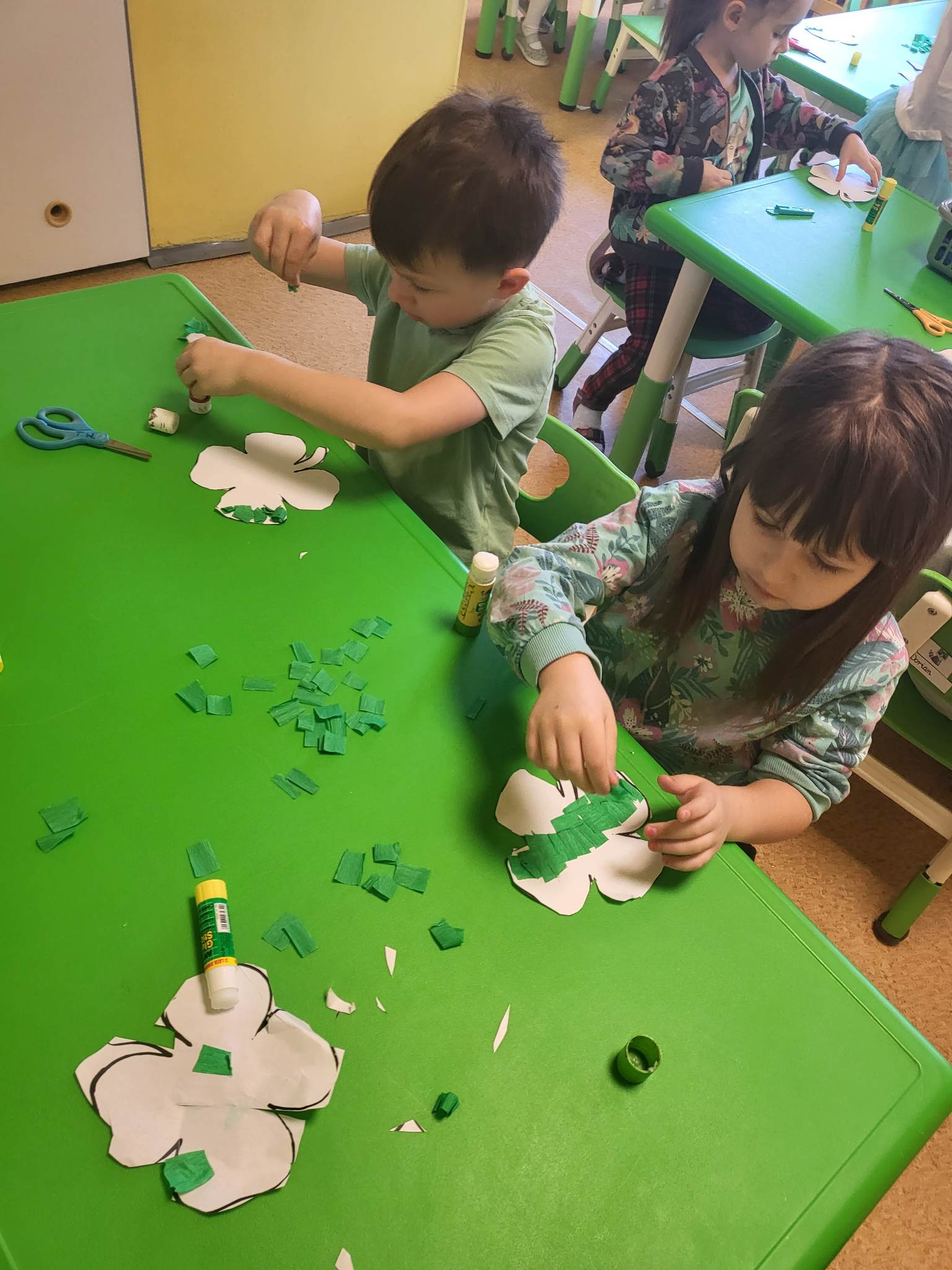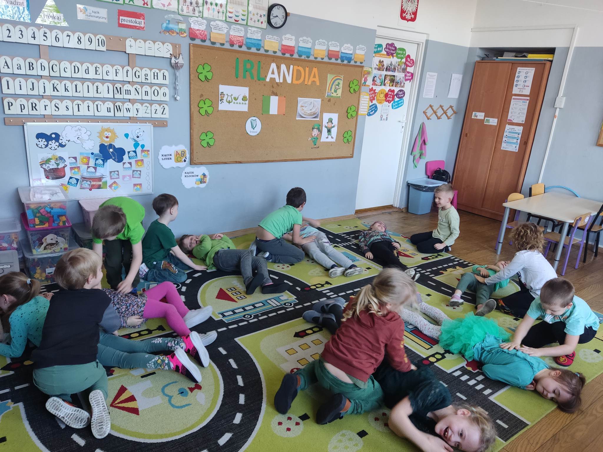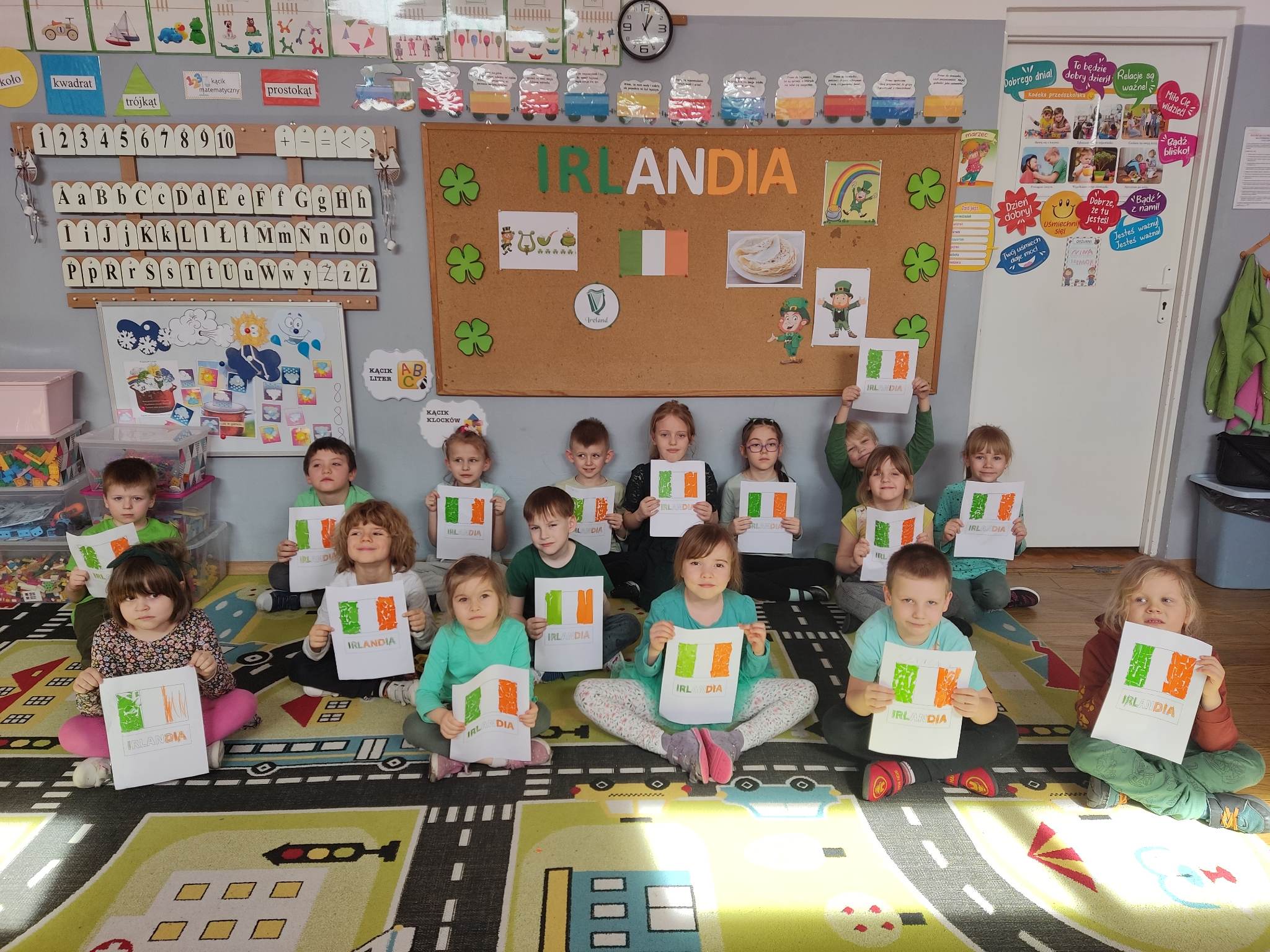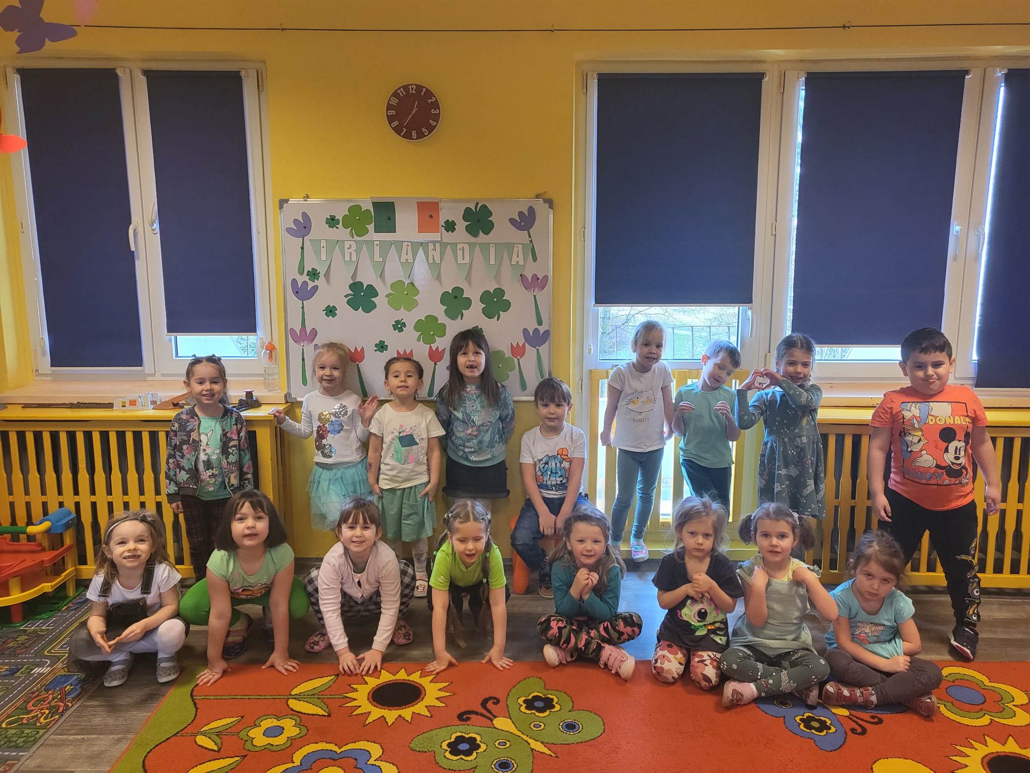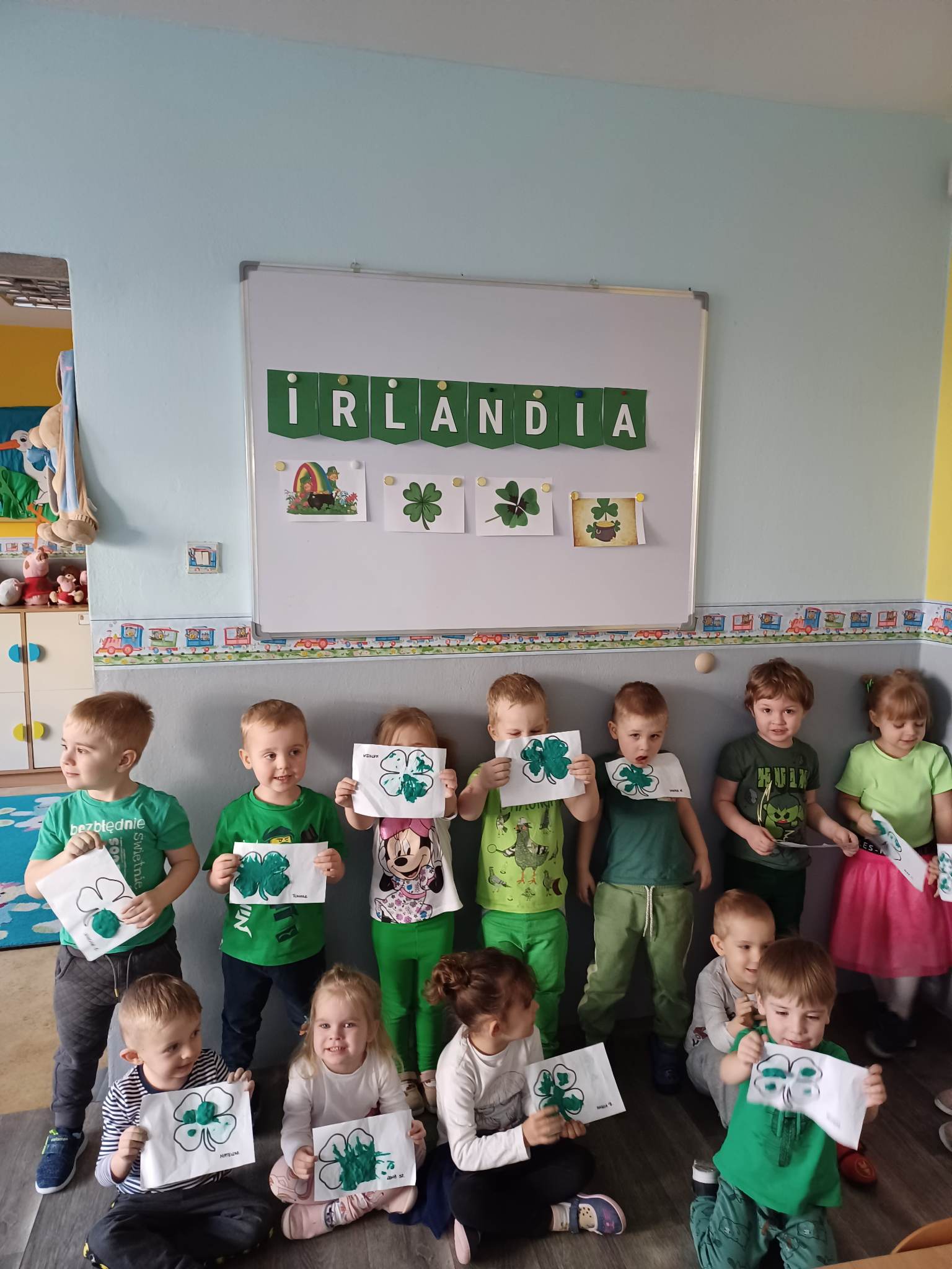 W dniu 17.03.2023r. nasze Przedszkolaki poznały kolejny kraj Europejski – Irlandię. Zaponzały się z wyglądem flagi, nazwę stolicy, położenie na mapie, a także wysłuchały hymnu. Obowiązującym kolorem tego dnia była zieleń, nawiązująca do trawiastego krajobrazu Irlandii i symbolizująca koniczynę. Dzieci poznały małego skrzata Irlandii o imieniu Leprechaun, który, jak głosi legenda, ukrywa złoto na końcu tęczy. Przedszkolaki próbowały zatańczyć irlandzki taniec oraz pobawiły się w zabawę „naleśnik”. W Irlandii jednym z ulubionych słodkich przysmaków jest naleśnik, dlatego Pani Iwonka dla Motylków i Misiów przygotowała na obiad przepyszne naleśniki 😉