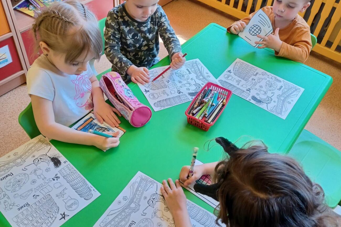 W dniu 28.04.2023 Nasze Przedszkolaki poznały kolejny europejski kraj jakim były Włochy. Dowiedziały się jak witamy się po włosku, poznały potrawy, z których słyną Włochy. Odbyły wirtualna wycieczkę po Wenecji poznajac gondolierów oraz gondolę. Poznały również wyspę Murano, która słynie z wytwarzania wyrobów szklanych – dzieci miały okazję obejrzeć filmik pokazujący jak takie wyroby powstają. Oglądały zdjęcia dzięki, którym mogły przenieść się w zaczarowany swiat Włoch. Bawiły się makaronem tworząc swoje arcydzieła.