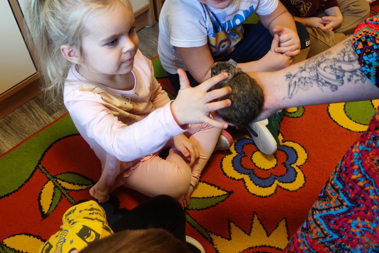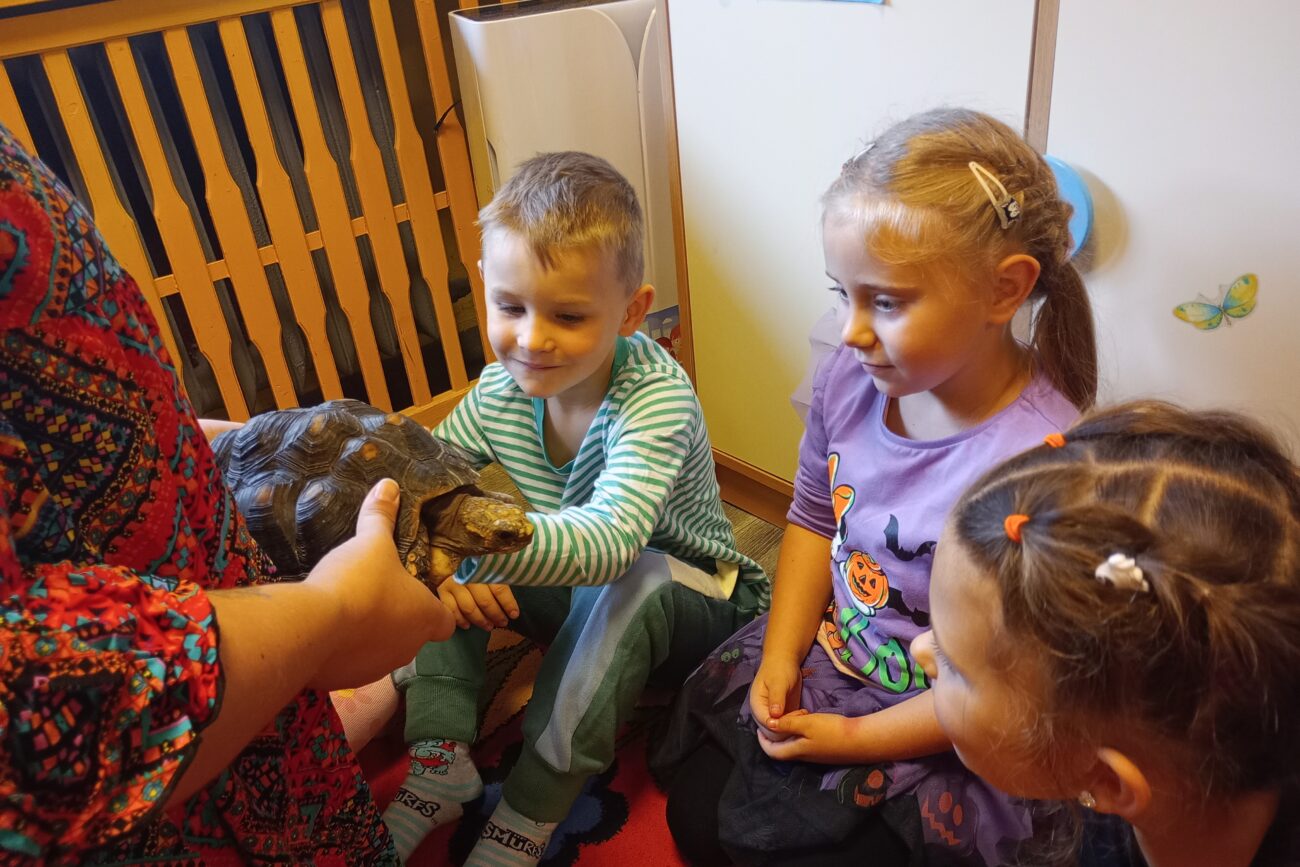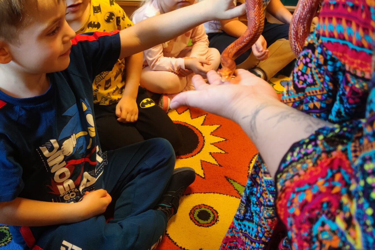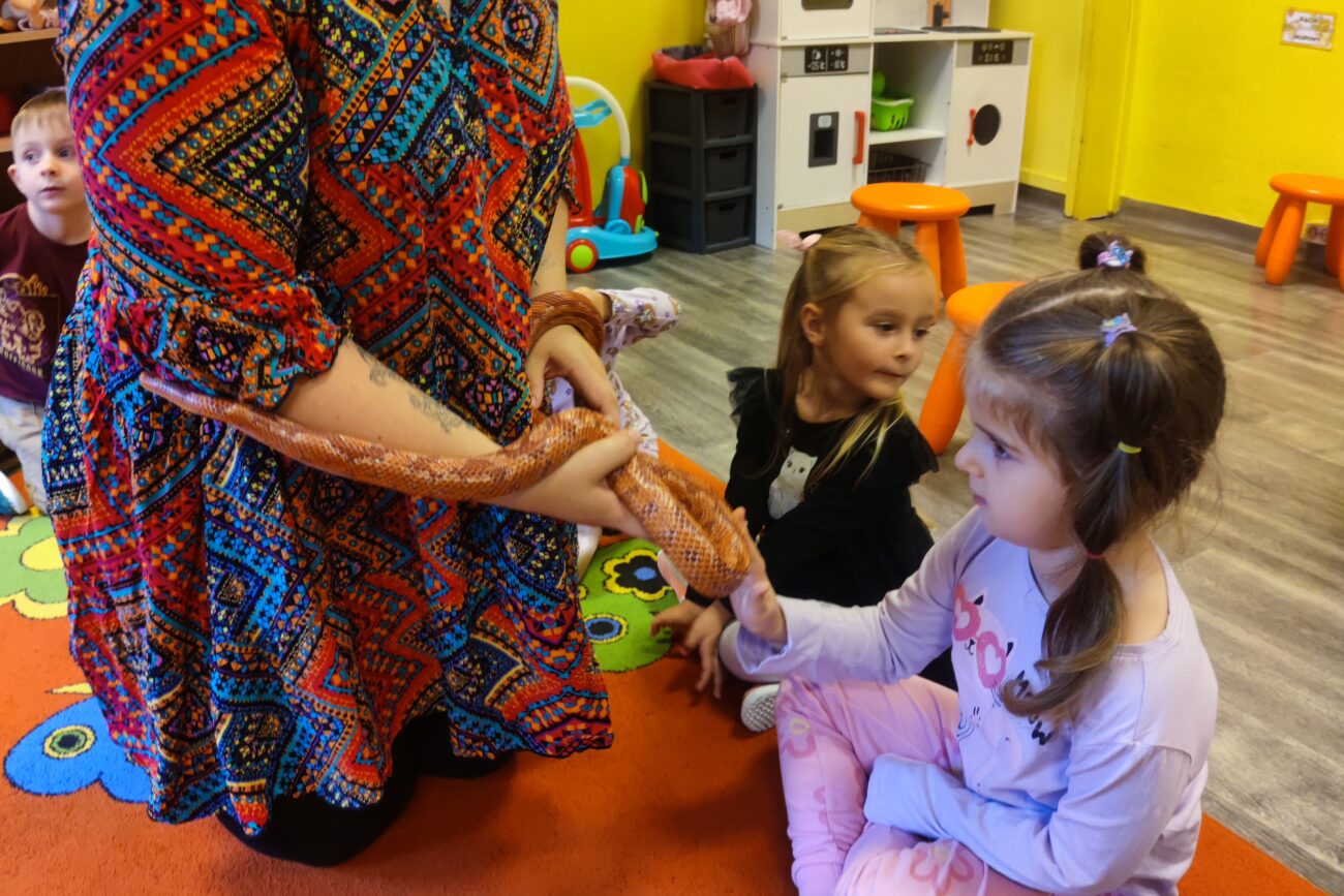 31 października nasze przedszkolaki miały okazję uczestniczyć w niecodziennych zajęciach. Dzięki firmie Walabia – Żywa Edukacja, w naszym przedszkolu mogliśmy gościć niecodziennych gości, a między innymi: Krzysia – małą i zwinną koszatniczkę o sporych i pozbawionych futerka uszkach, Jurka – malutkiego jeża o kujących, szarobrunatnych kolcach, Zbożówkę – wijącego się węża oraz Wiolę – powolnego żółwia. Pod czujnym okiem prowadzących każde dziecko mogło z bliska zobaczyć, dotknąć i głaskać do woli te przesympatyczne zwierzątka. Nasze przedszkolaki miały też okazje poznać wiele ciekawostek o życiu i upodobaniach tych niecodziennych gości.