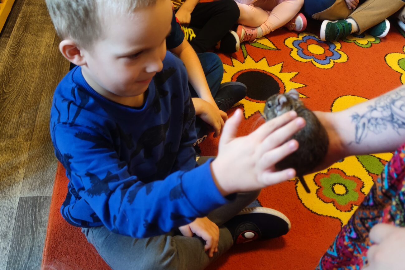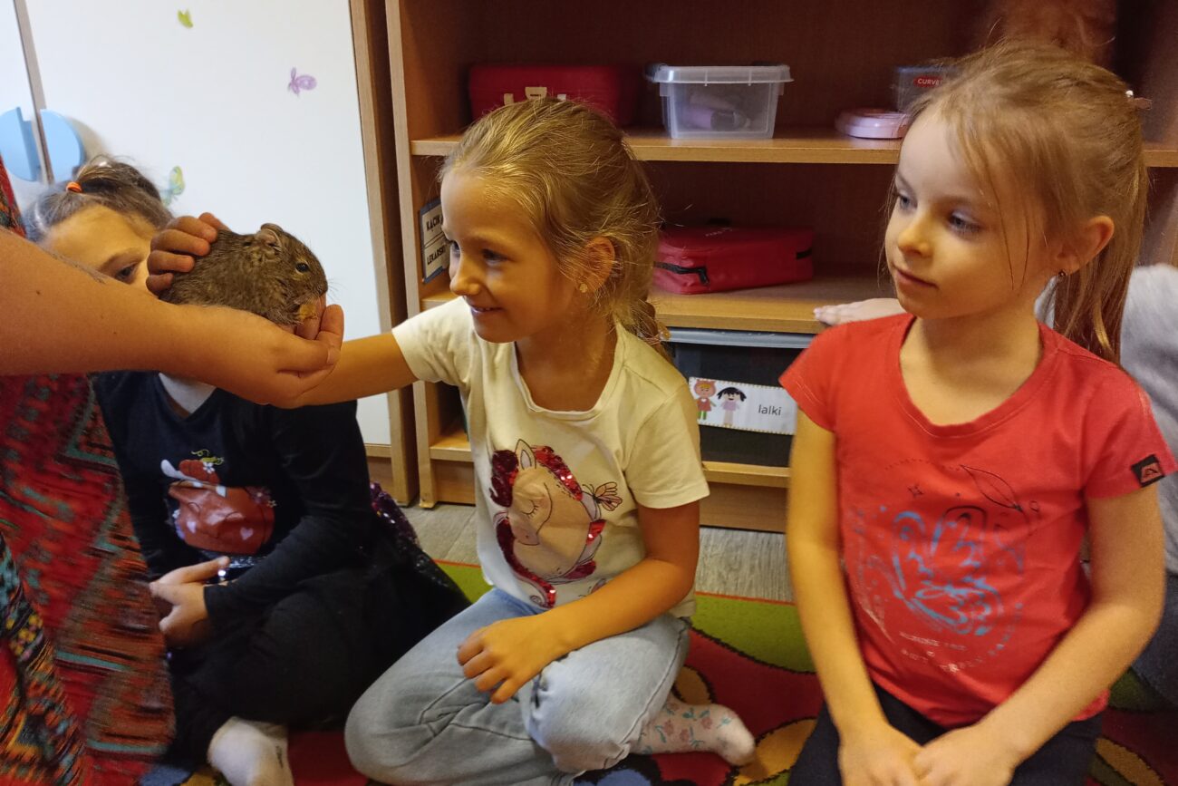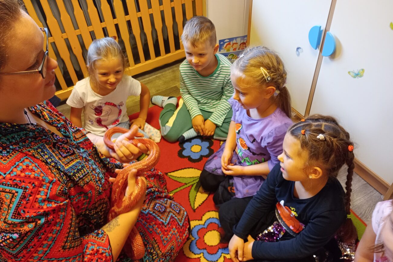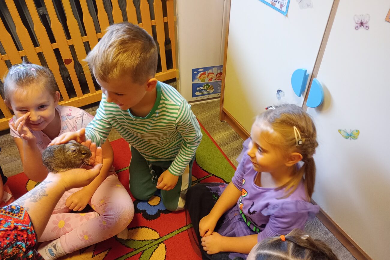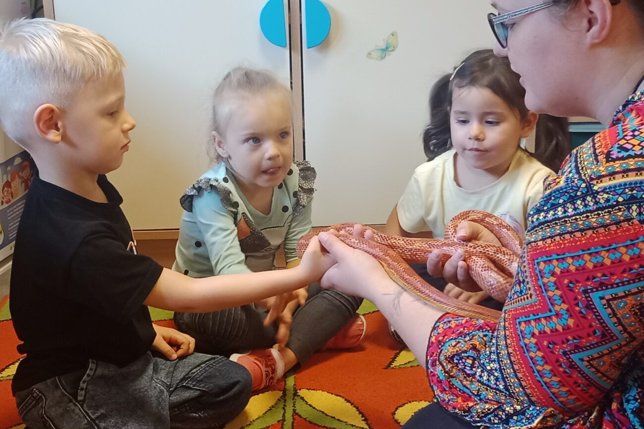31 października nasze przedszkolaki miały okazję uczestniczyć w niecodziennych zajęciach. Dzięki firmie Walabia – Żywa Edukacja, w naszym przedszkolu mogliśmy gościć niecodziennych gości, a między innymi: Krzysia – małą i zwinną koszatniczkę o sporych i pozbawionych futerka uszkach, Jurka – malutkiego jeża o kujących, szarobrunatnych kolcach, Zbożówkę – wijącego się węża oraz Wiolę – powolnego żółwia. Pod czujnym okiem prowadzących każde dziecko mogło z bliska zobaczyć, dotknąć i głaskać do woli te przesympatyczne zwierzątka. Nasze przedszkolaki miały też okazje poznać wiele ciekawostek o życiu i upodobaniach tych niecodziennych gości.