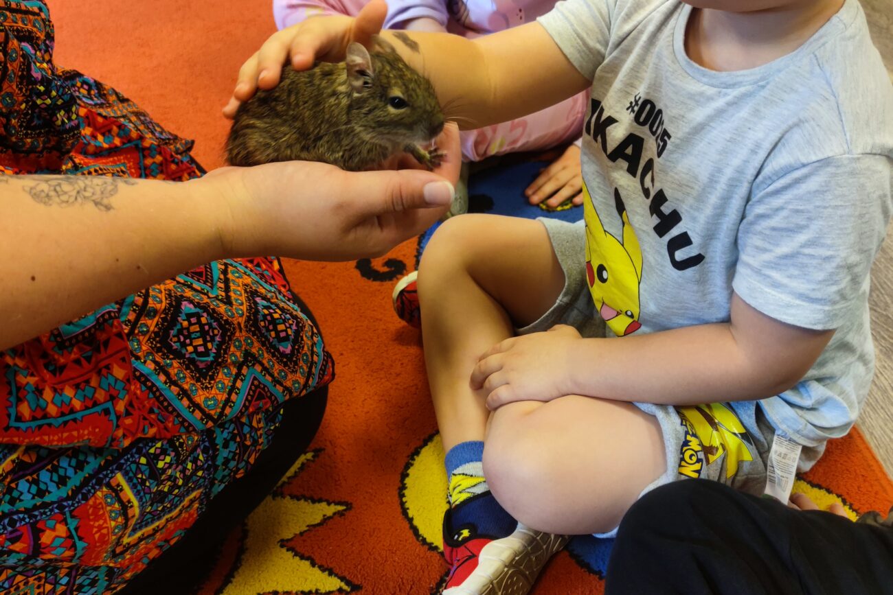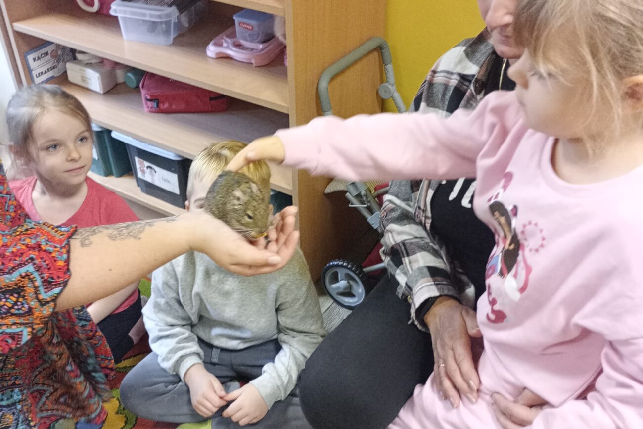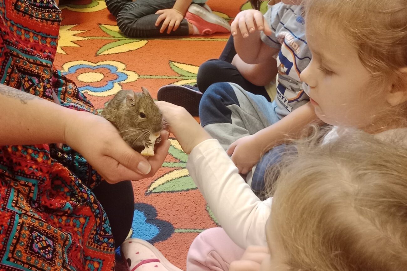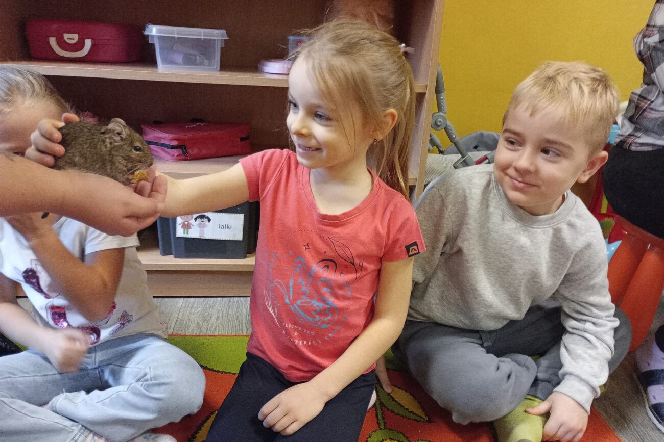 31 października nasze przedszkolaki miały okazję uczestniczyć w niecodziennych zajęciach. Dzięki firmie Walabia – Żywa Edukacja, w naszym przedszkolu mogliśmy gościć niecodziennych gości, a między innymi: Krzysia – małą i zwinną koszatniczkę o sporych i pozbawionych futerka uszkach, Jurka – malutkiego jeża o kujących, szarobrunatnych kolcach, Zbożówkę – wijącego się węża oraz Wiolę – powolnego żółwia. Pod czujnym okiem prowadzących każde dziecko mogło z bliska zobaczyć, dotknąć i głaskać do woli te przesympatyczne zwierzątka. Nasze przedszkolaki miały też okazje poznać wiele ciekawostek o życiu i upodobaniach tych niecodziennych gości.