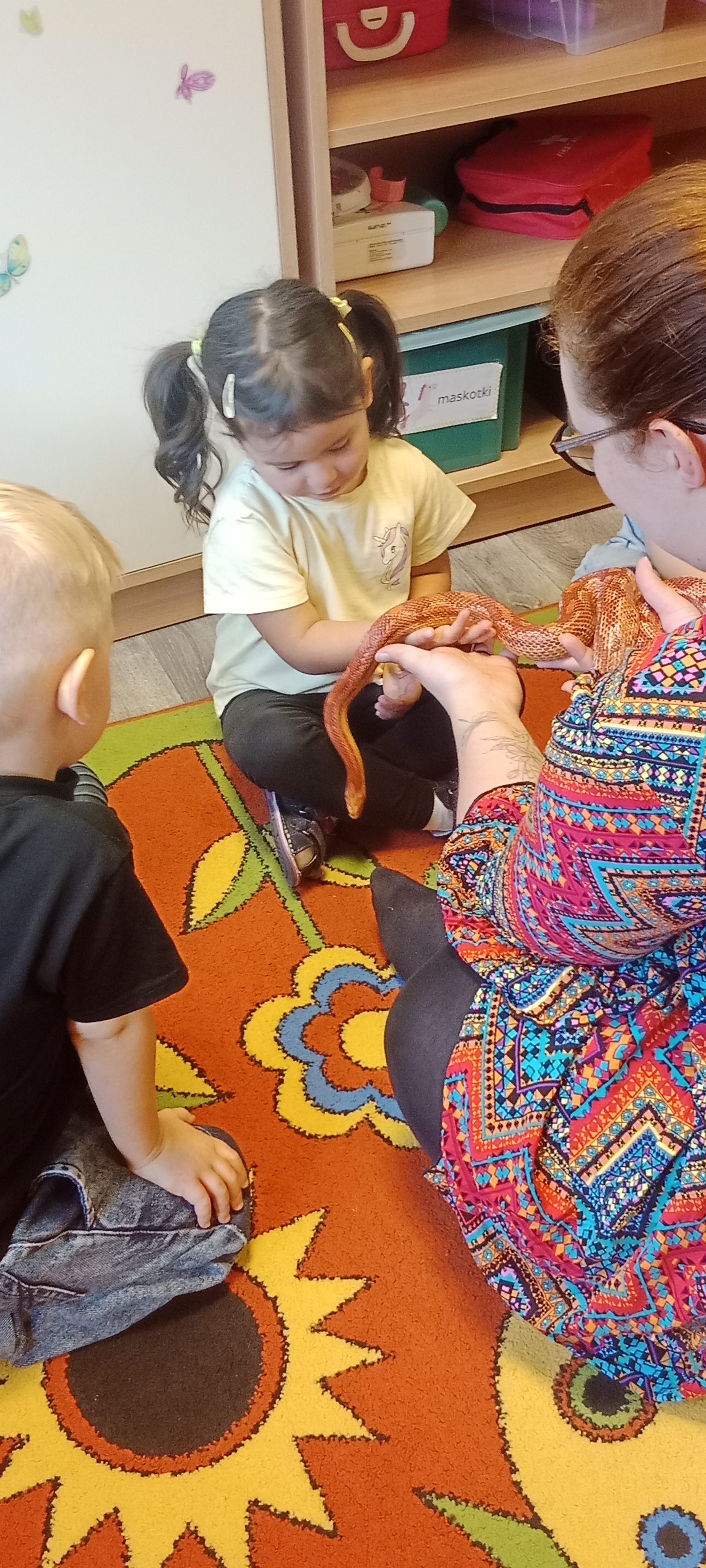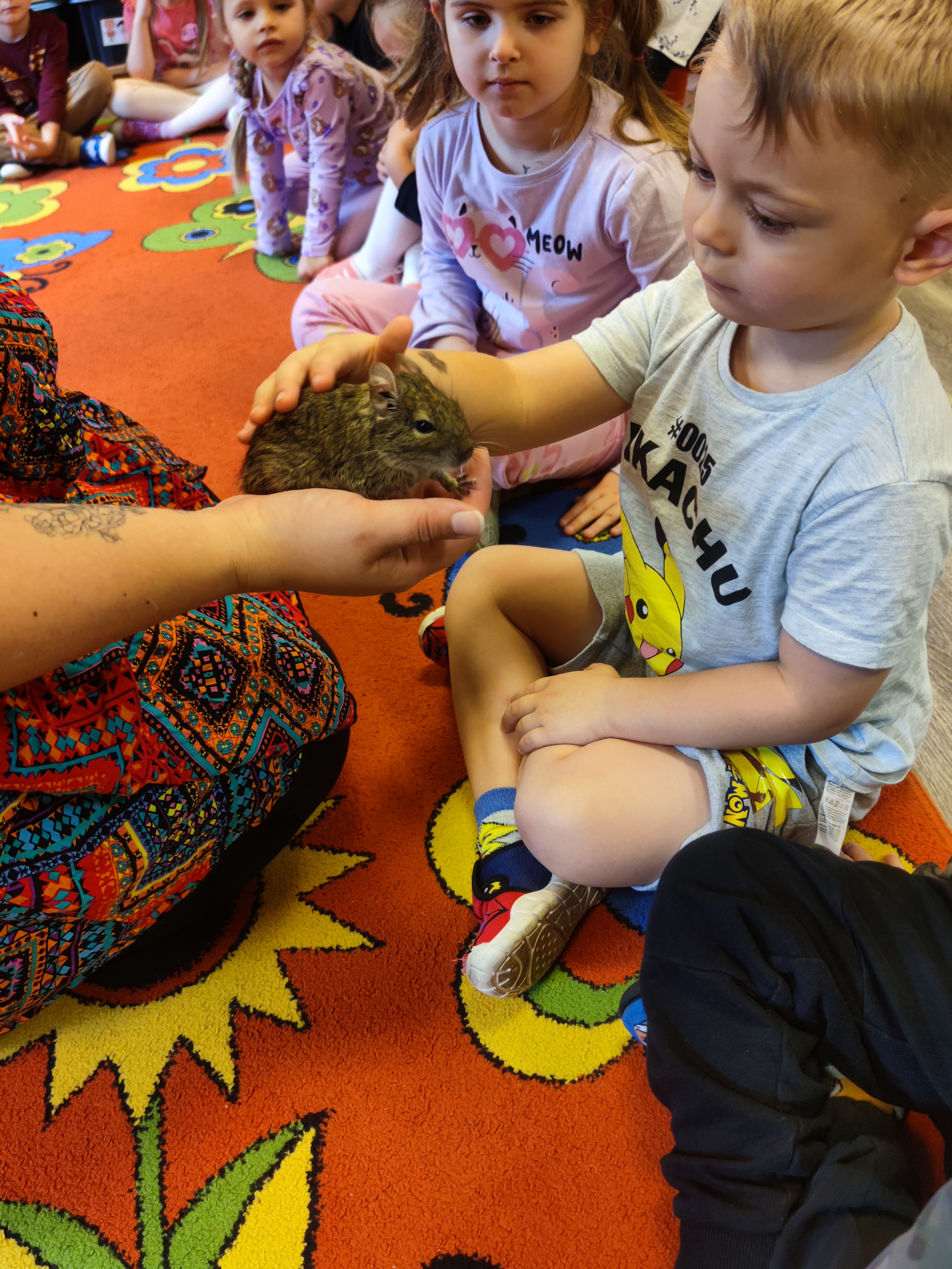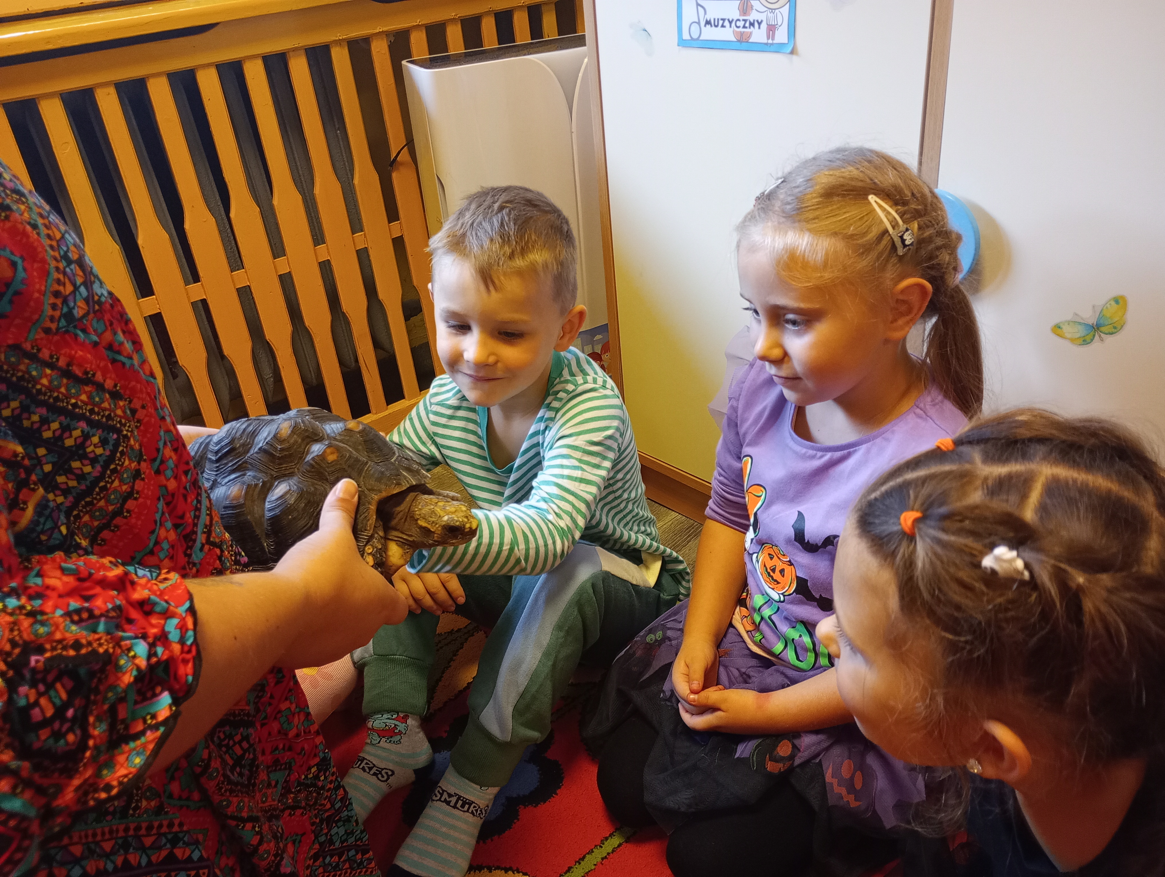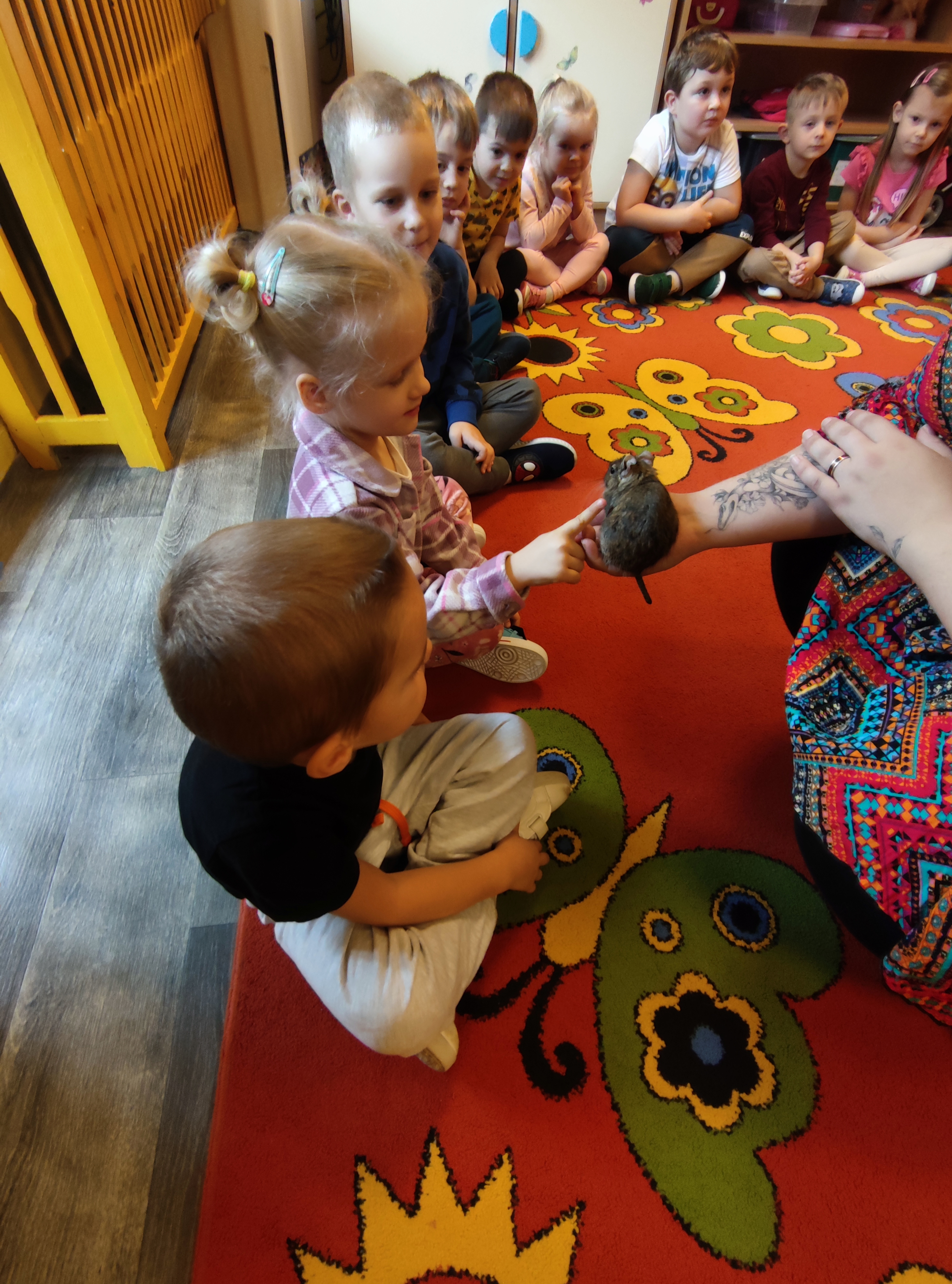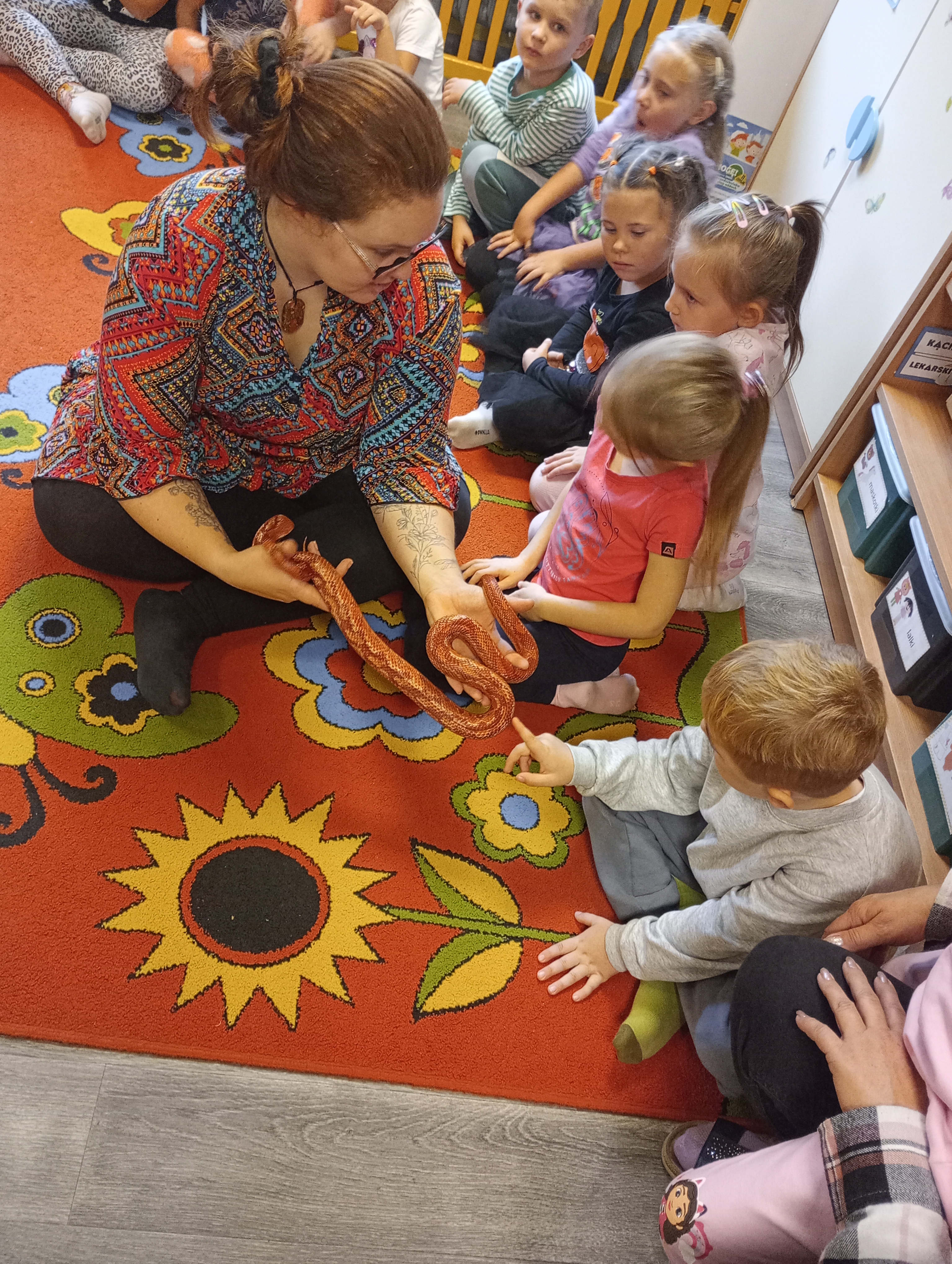 31 października nasze przedszkolaki miały okazję uczestniczyć w niecodziennych zajęciach. Dzięki firmie Walabia – Żywa Edukacja, w naszym przedszkolu mogliśmy gościć niecodziennych gości, a między innymi: Krzysia – małą i zwinną koszatniczkę o sporych i pozbawionych futerka uszkach, Jurka – malutkiego jeża o kujących, szarobrunatnych kolcach, Zbożówkę – wijącego się węża oraz Wiolę – powolnego żółwia. Pod czujnym okiem prowadzących każde dziecko mogło z bliska zobaczyć, dotknąć i głaskać do woli te przesympatyczne zwierzątka. Nasze przedszkolaki miały też okazje poznać wiele ciekawostek o życiu i upodobaniach tych niecodziennych gości.