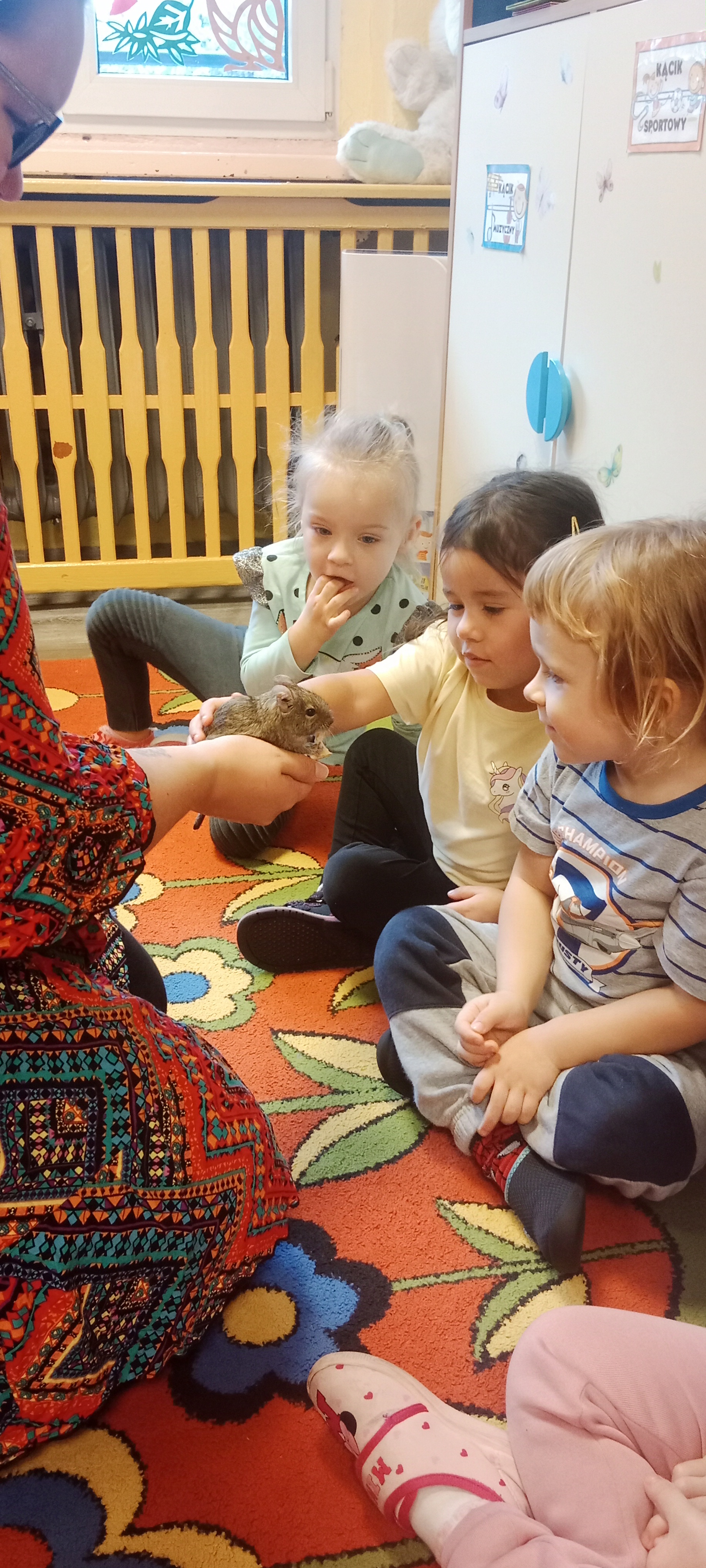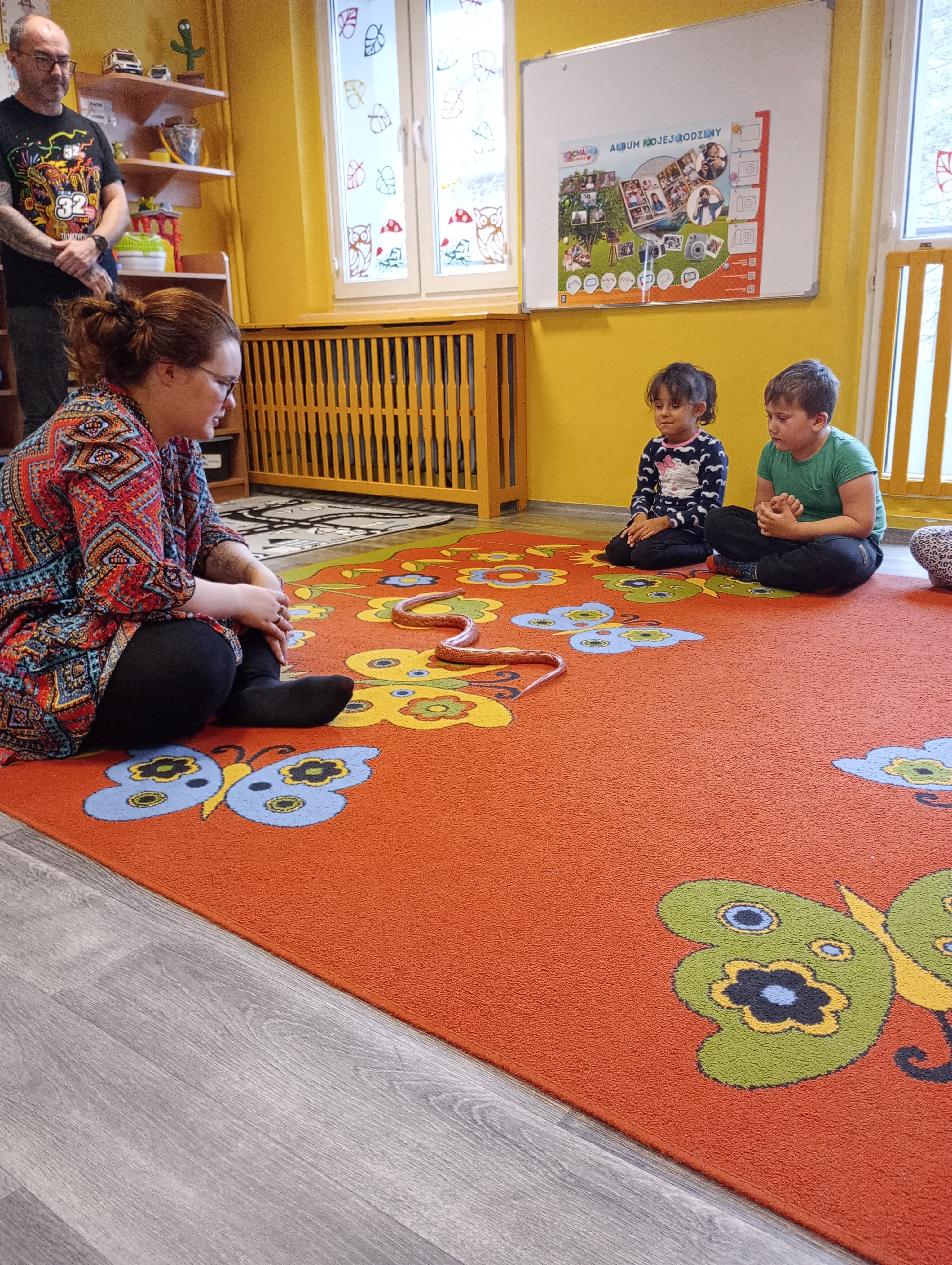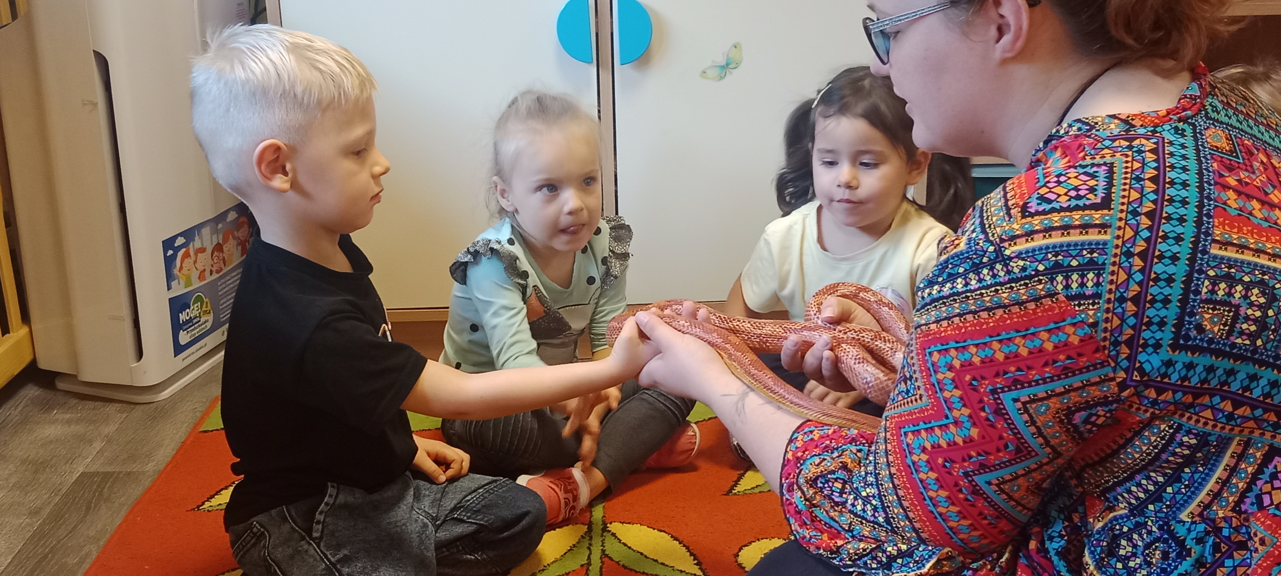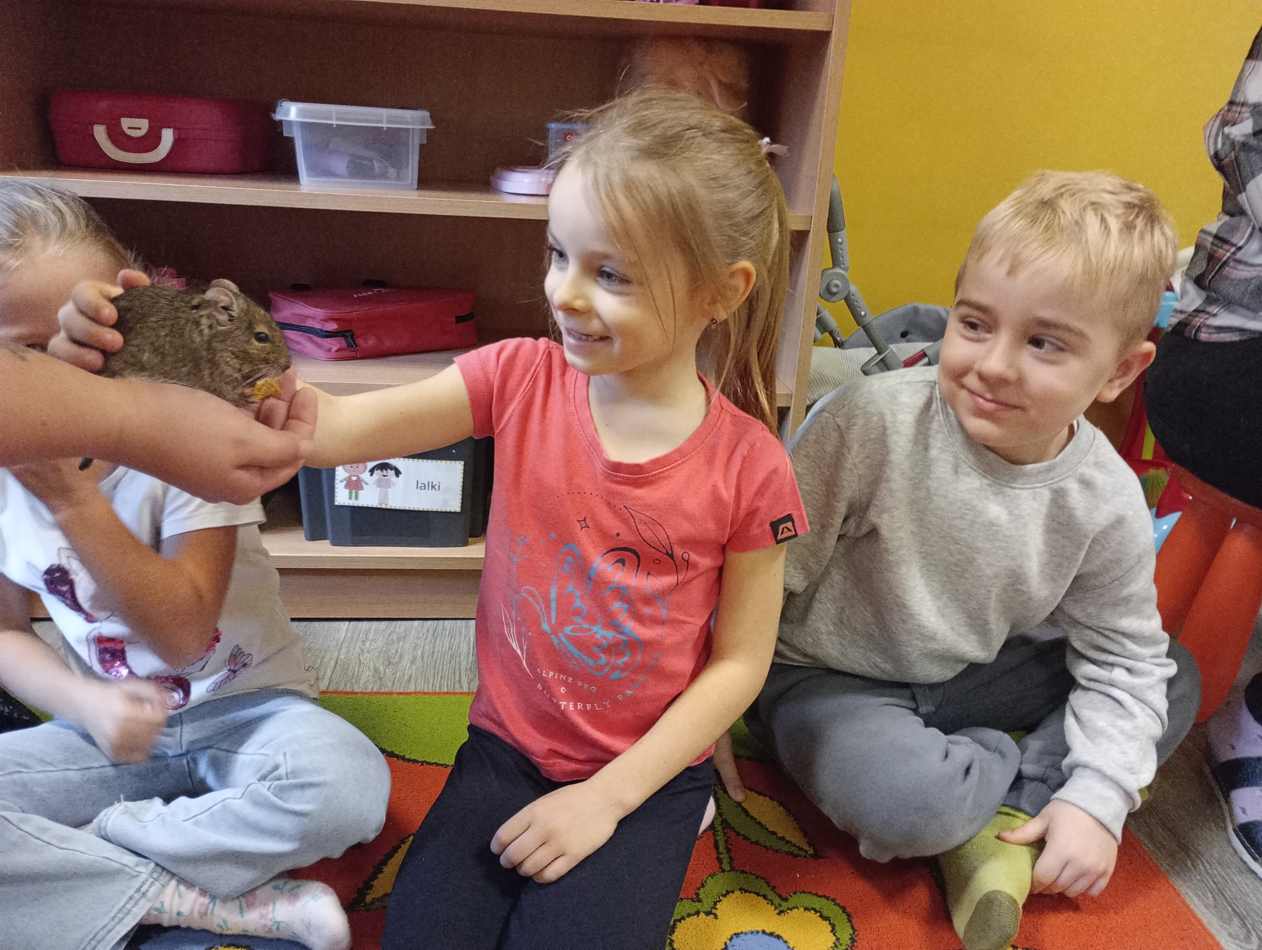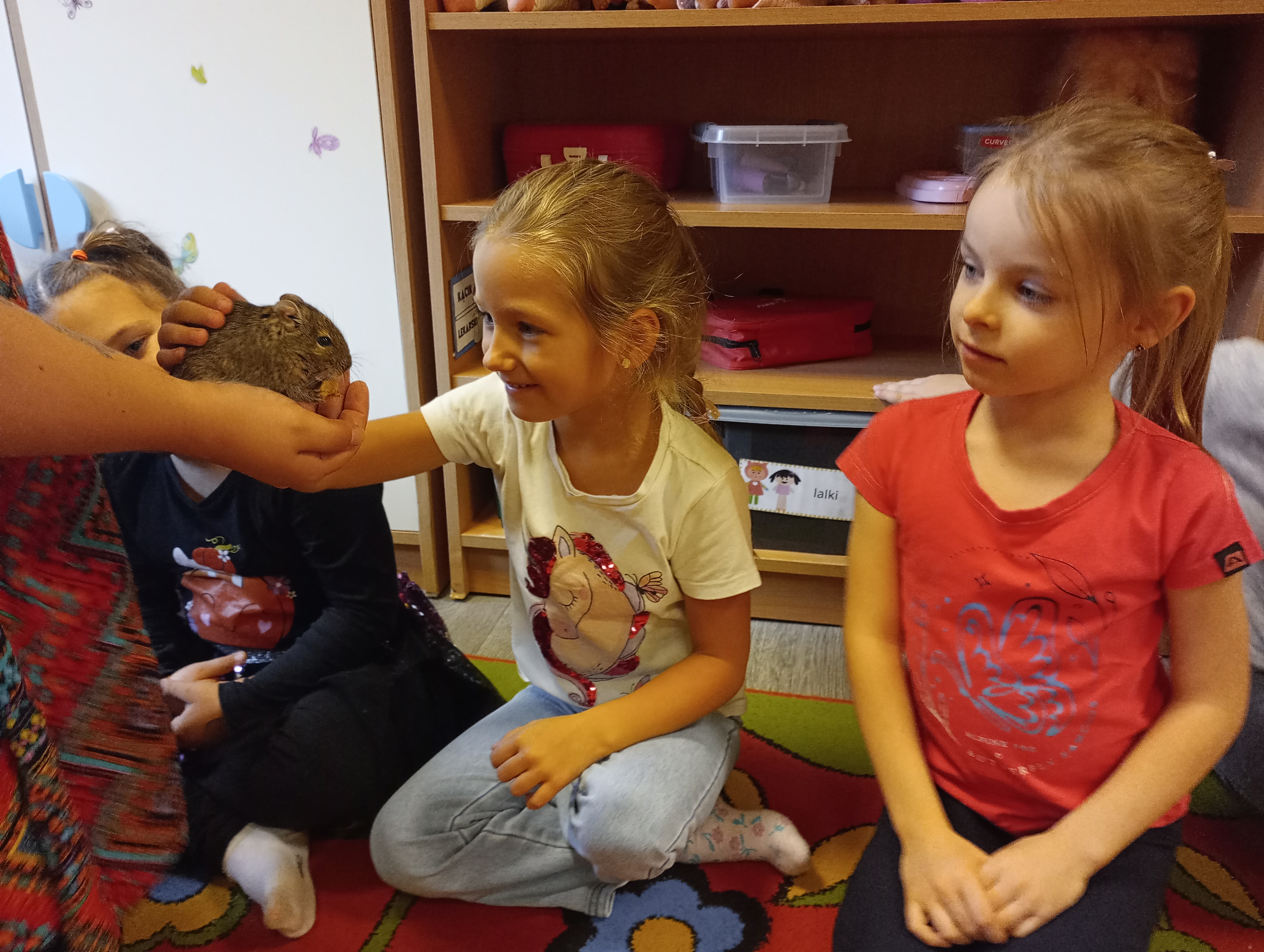 31 października nasze przedszkolaki miały okazję uczestniczyć w niecodziennych zajęciach. Dzięki firmie Walabia – Żywa Edukacja, w naszym przedszkolu mogliśmy gościć niecodziennych gości, a między innymi: Krzysia – małą i zwinną koszatniczkę o sporych i pozbawionych futerka uszkach, Jurka – malutkiego jeża o kujących, szarobrunatnych kolcach, Zbożówkę – wijącego się węża oraz Wiolę – powolnego żółwia. Pod czujnym okiem prowadzących każde dziecko mogło z bliska zobaczyć, dotknąć i głaskać do woli te przesympatyczne zwierzątka. Nasze przedszkolaki miały też okazje poznać wiele ciekawostek o życiu i upodobaniach tych niecodziennych gości.