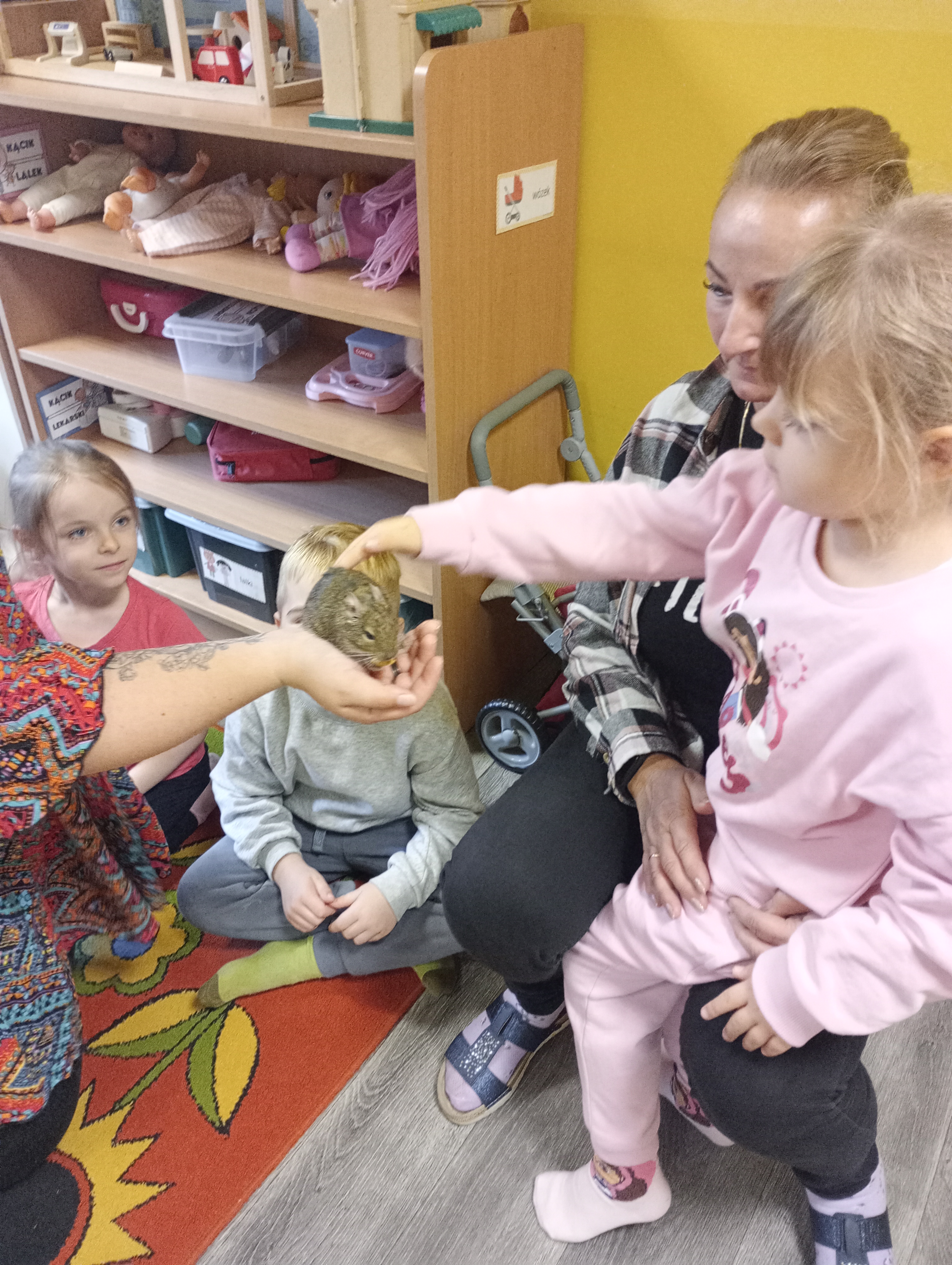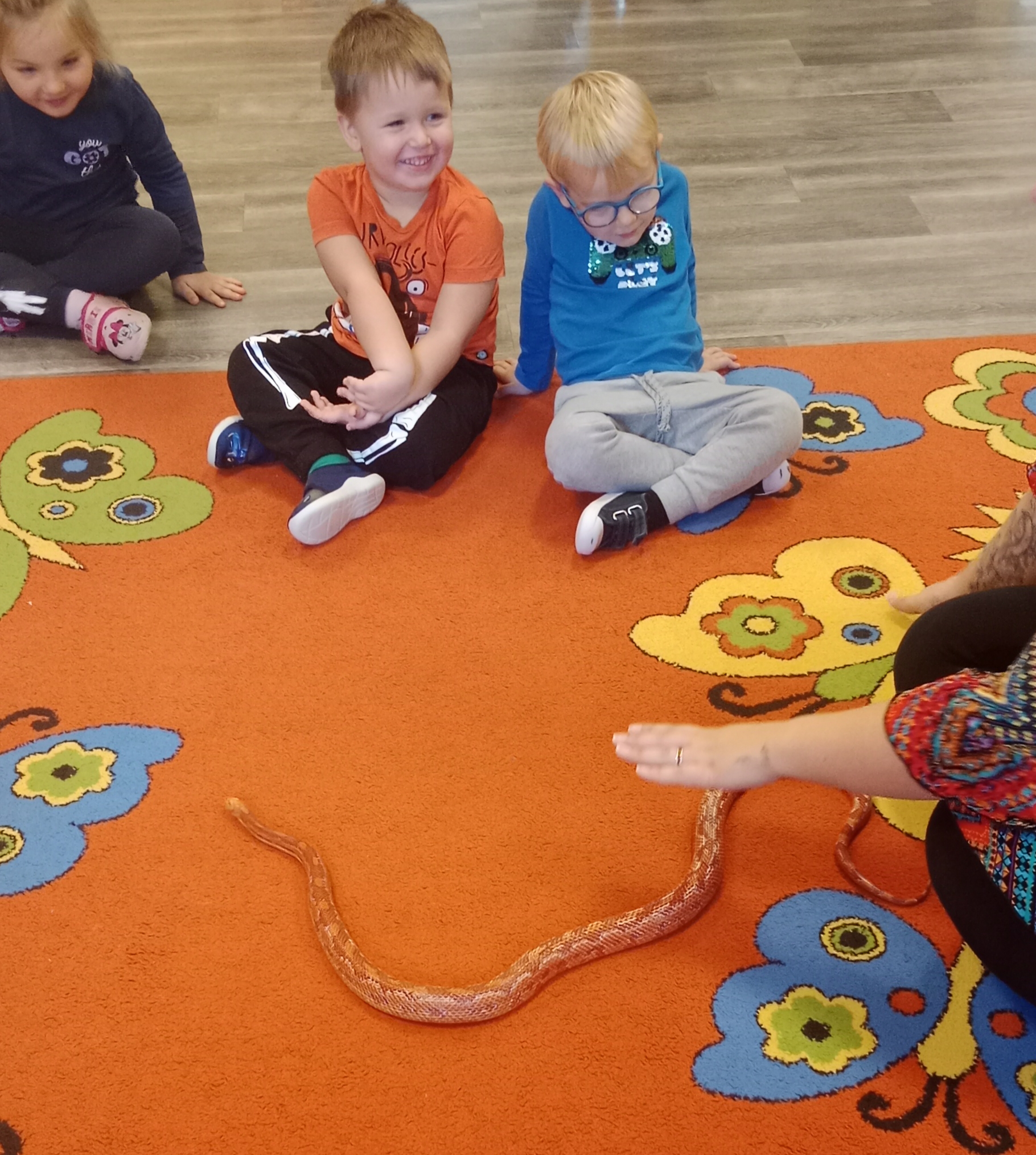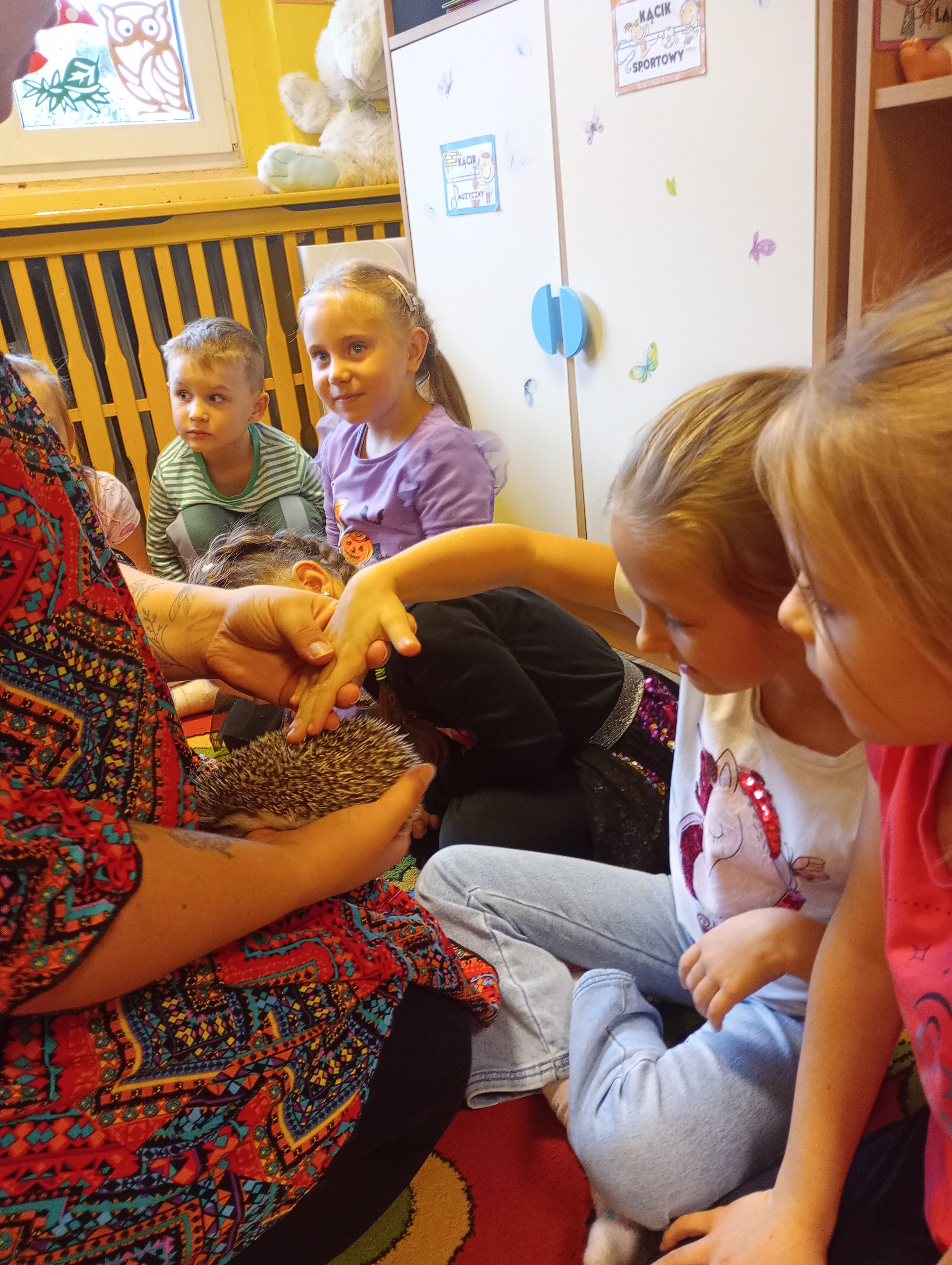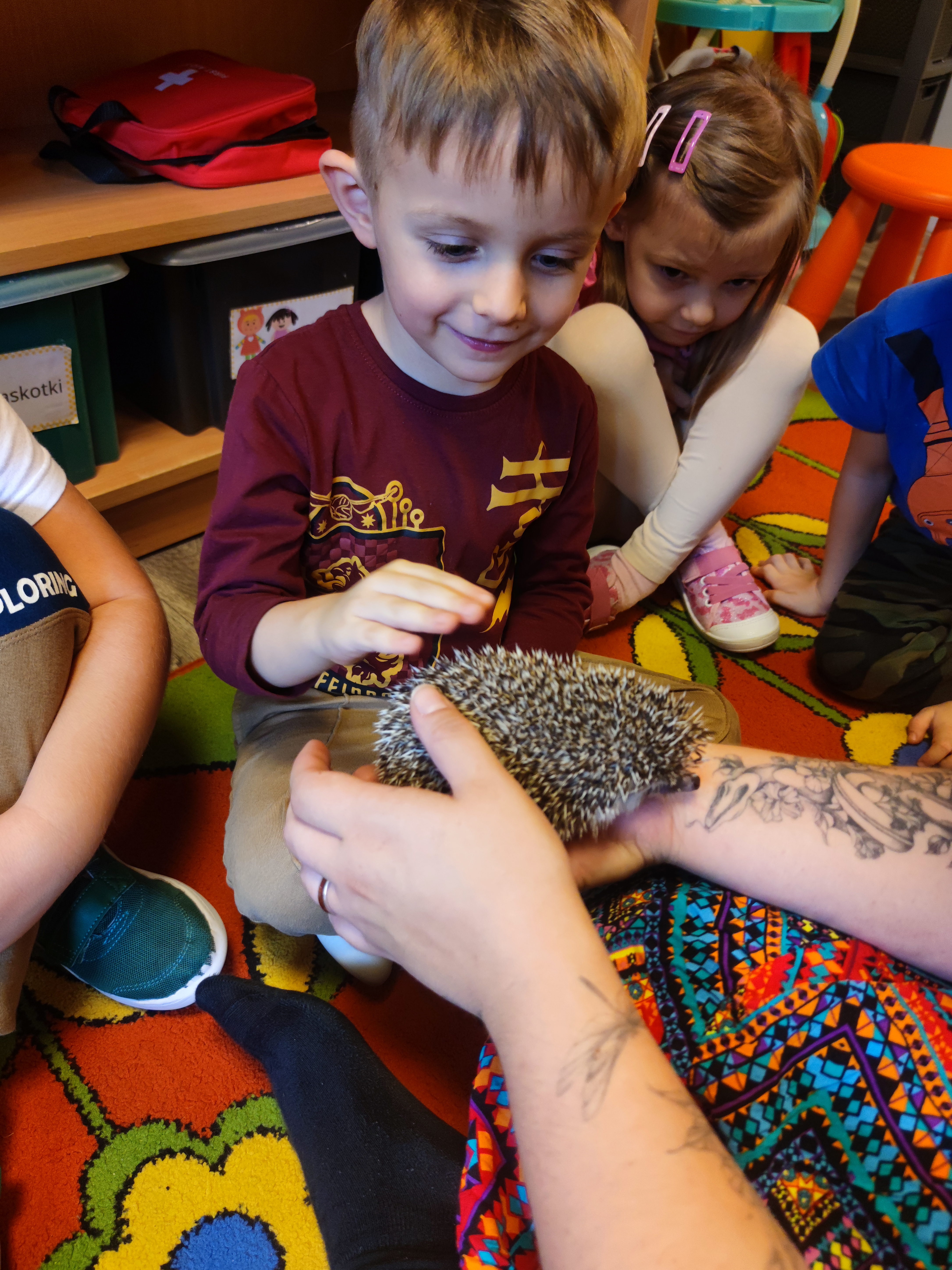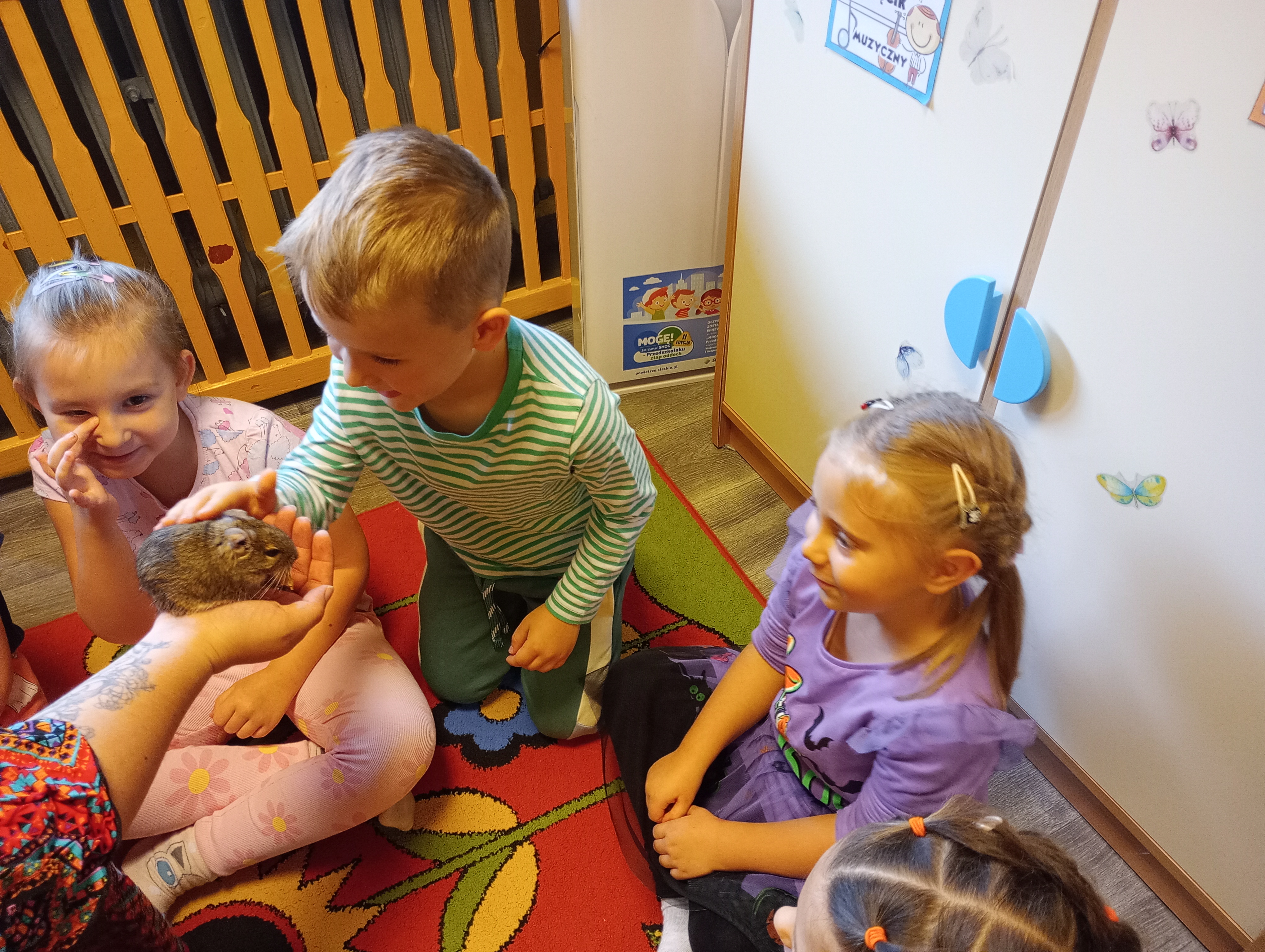 31 października nasze przedszkolaki miały okazję uczestniczyć w niecodziennych zajęciach. Dzięki firmie Walabia – Żywa Edukacja, w naszym przedszkolu mogliśmy gościć niecodziennych gości, a między innymi: Krzysia – małą i zwinną koszatniczkę o sporych i pozbawionych futerka uszkach, Jurka – malutkiego jeża o kujących, szarobrunatnych kolcach, Zbożówkę – wijącego się węża oraz Wiolę – powolnego żółwia. Pod czujnym okiem prowadzących każde dziecko mogło z bliska zobaczyć, dotknąć i głaskać do woli te przesympatyczne zwierzątka. Nasze przedszkolaki miały też okazje poznać wiele ciekawostek o życiu i upodobaniach tych niecodziennych gości.