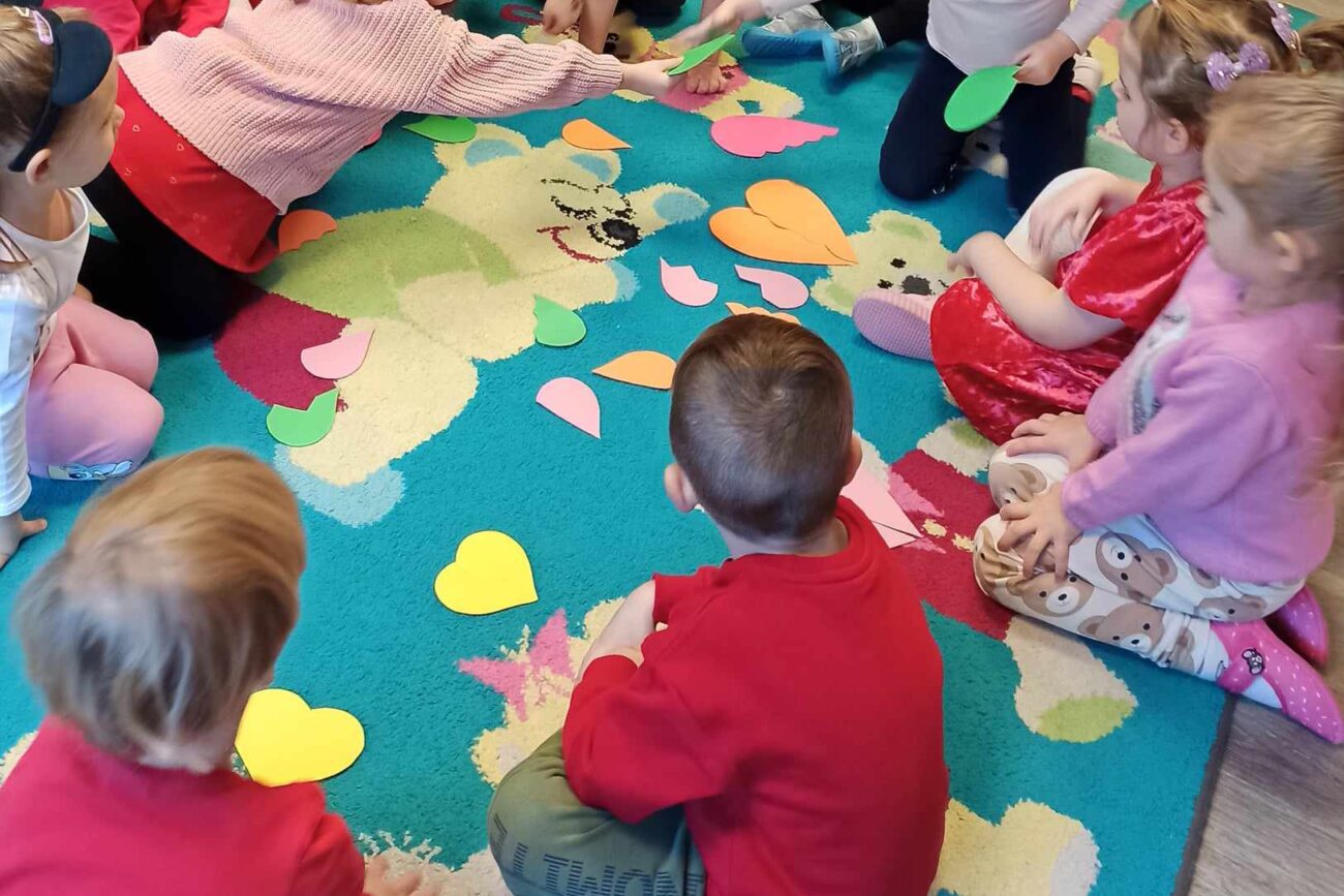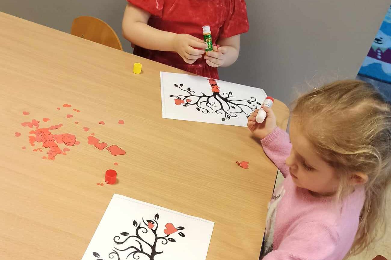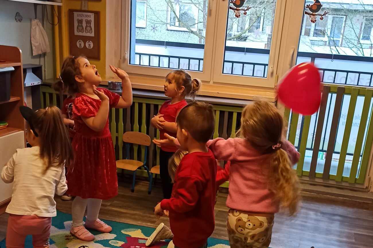 Brały udział w licznych aktywnościach, m.in. bawiły się w „Mam serduszko”, dopasowywały połówki serc, układały puzzle, tańczyły z balonami oraz wykonały walentynkową pracę plastyczną.
