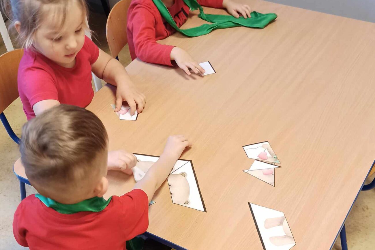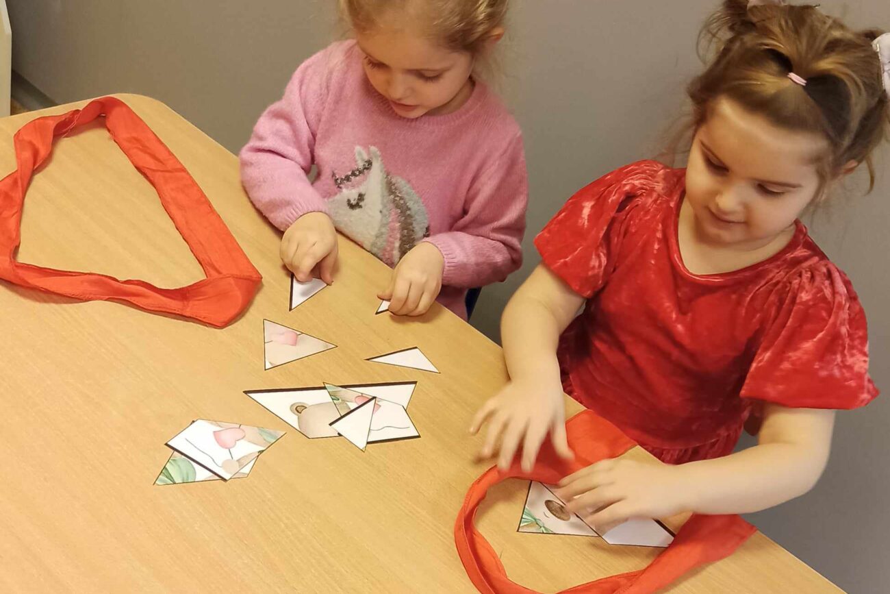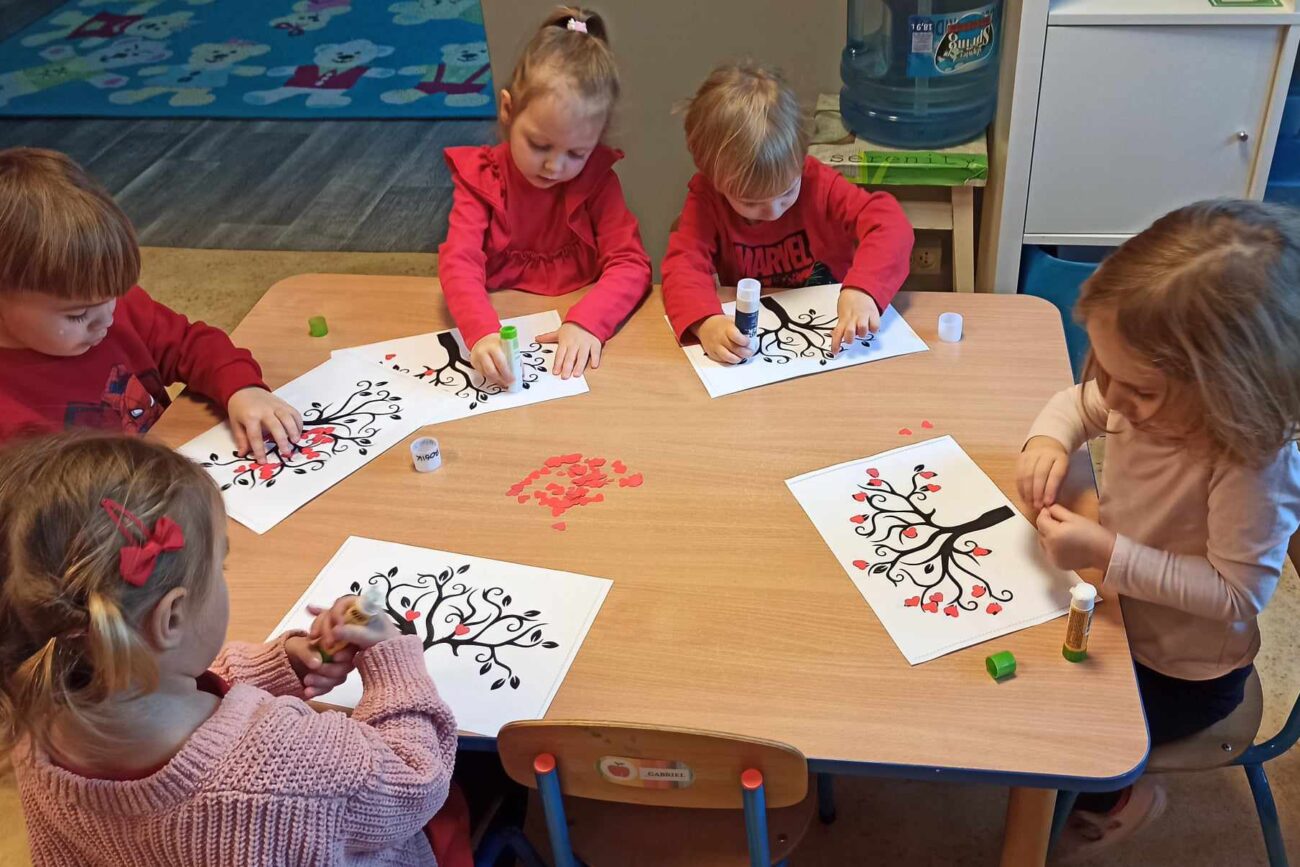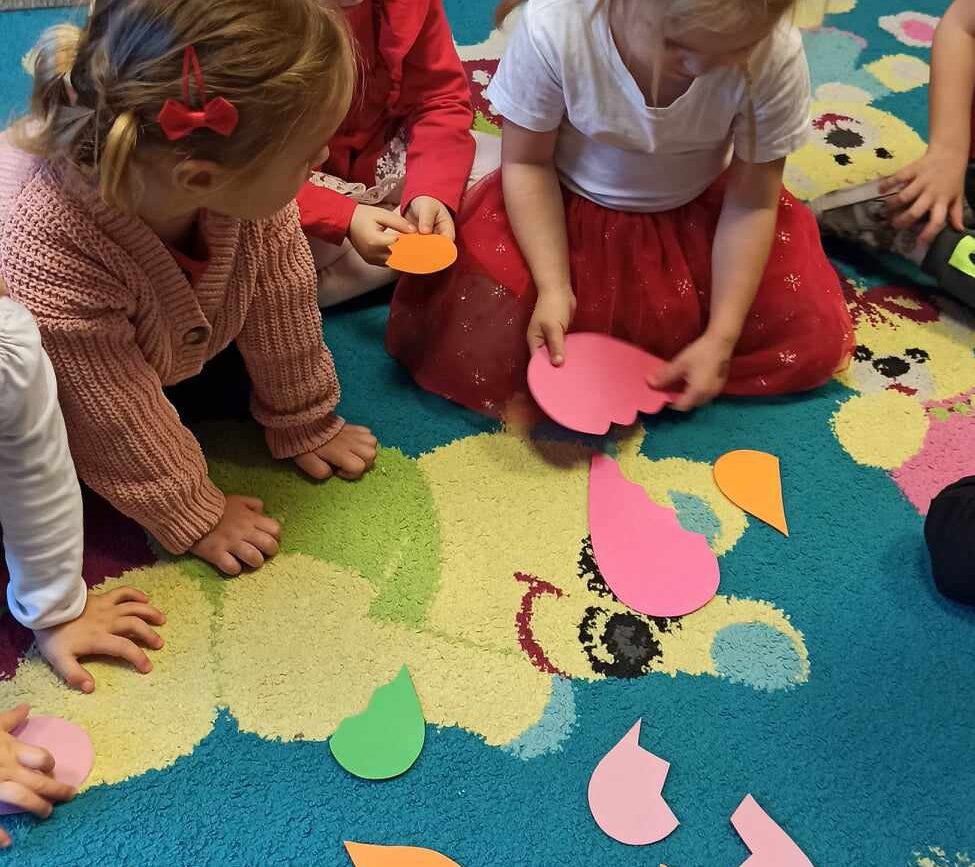 Brały udział w licznych aktywnościach, m.in. bawiły się w „Mam serduszko”, dopasowywały połówki serc, układały puzzle, tańczyły z balonami oraz wykonały walentynkową pracę plastyczną.