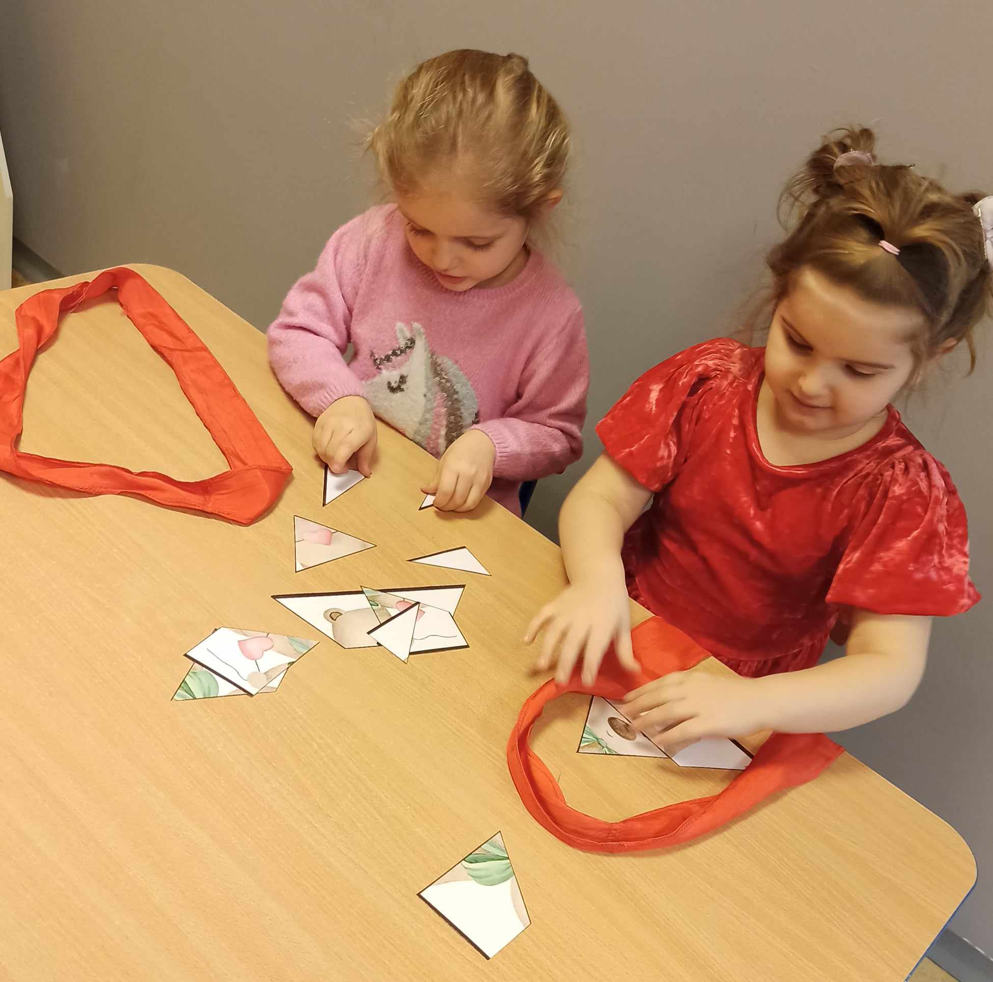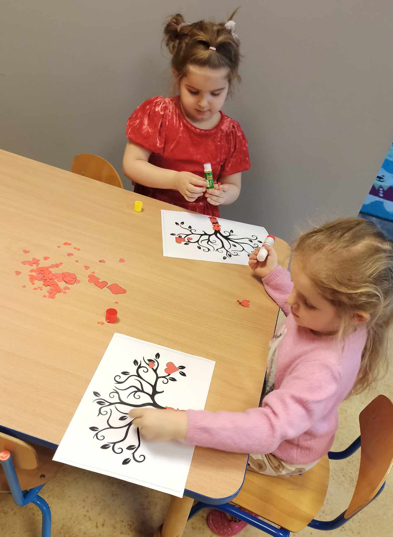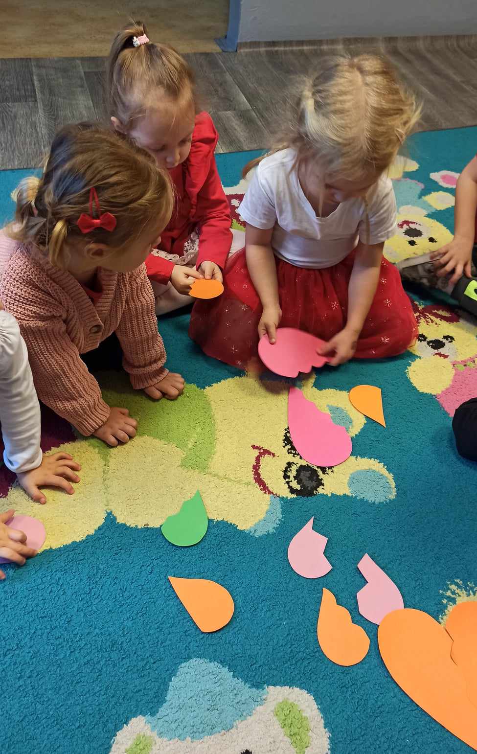 Brały udział w licznych aktywnościach, m.in. bawiły się w „Mam serduszko”, dopasowywały połówki serc, układały puzzle, tańczyły z balonami oraz wykonały walentynkową pracę plastyczną.