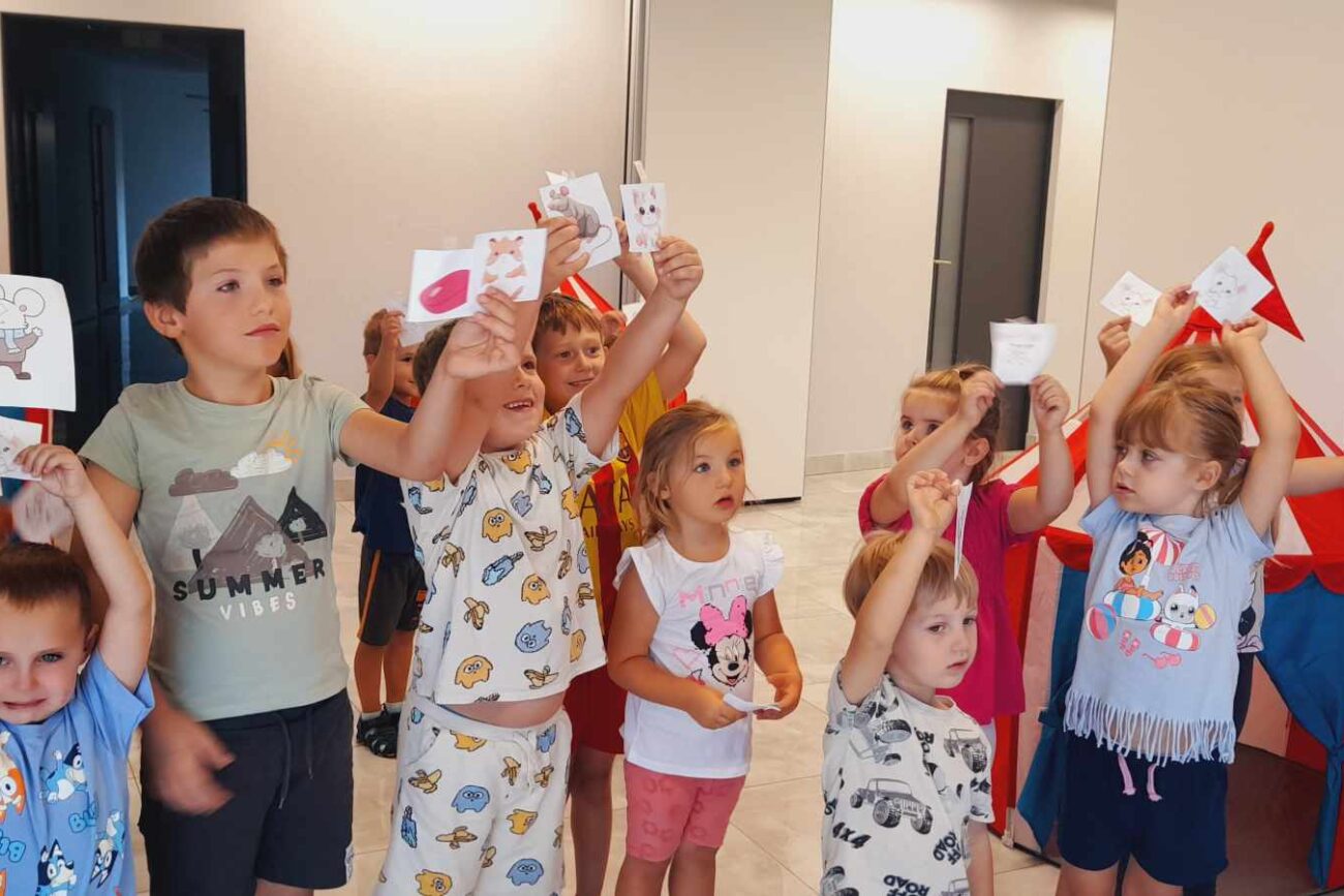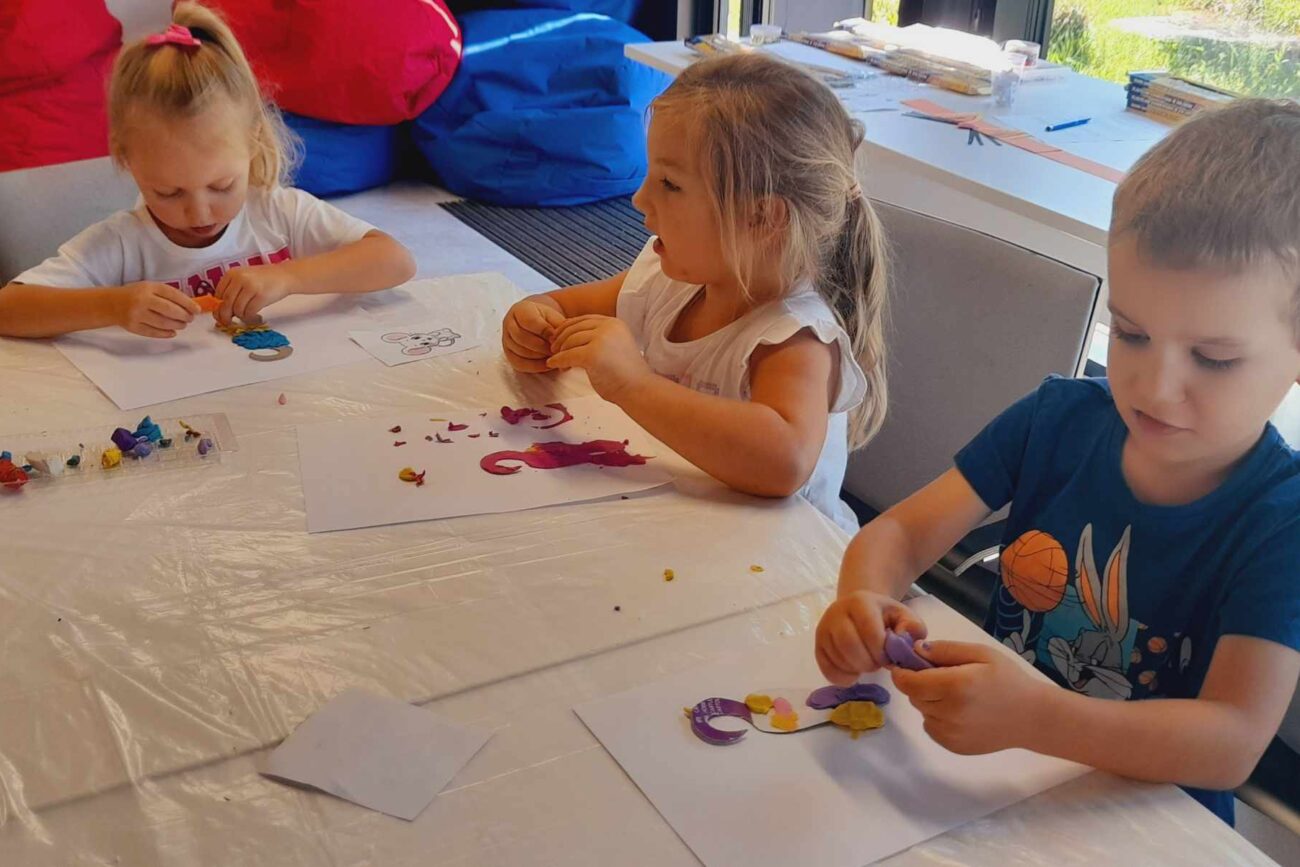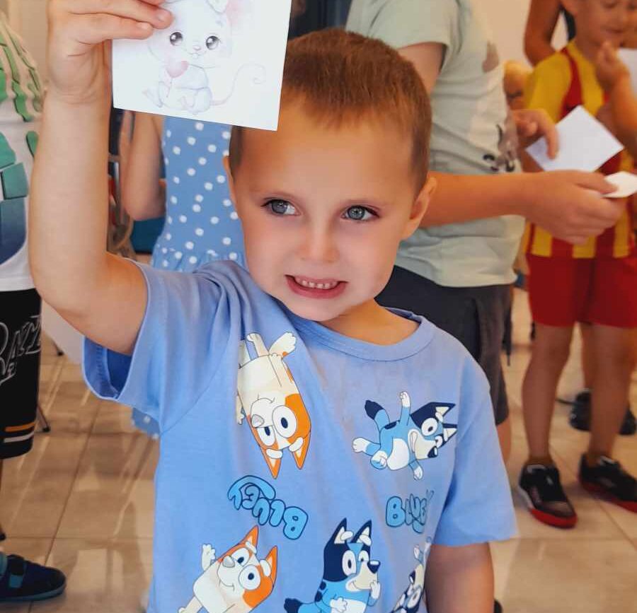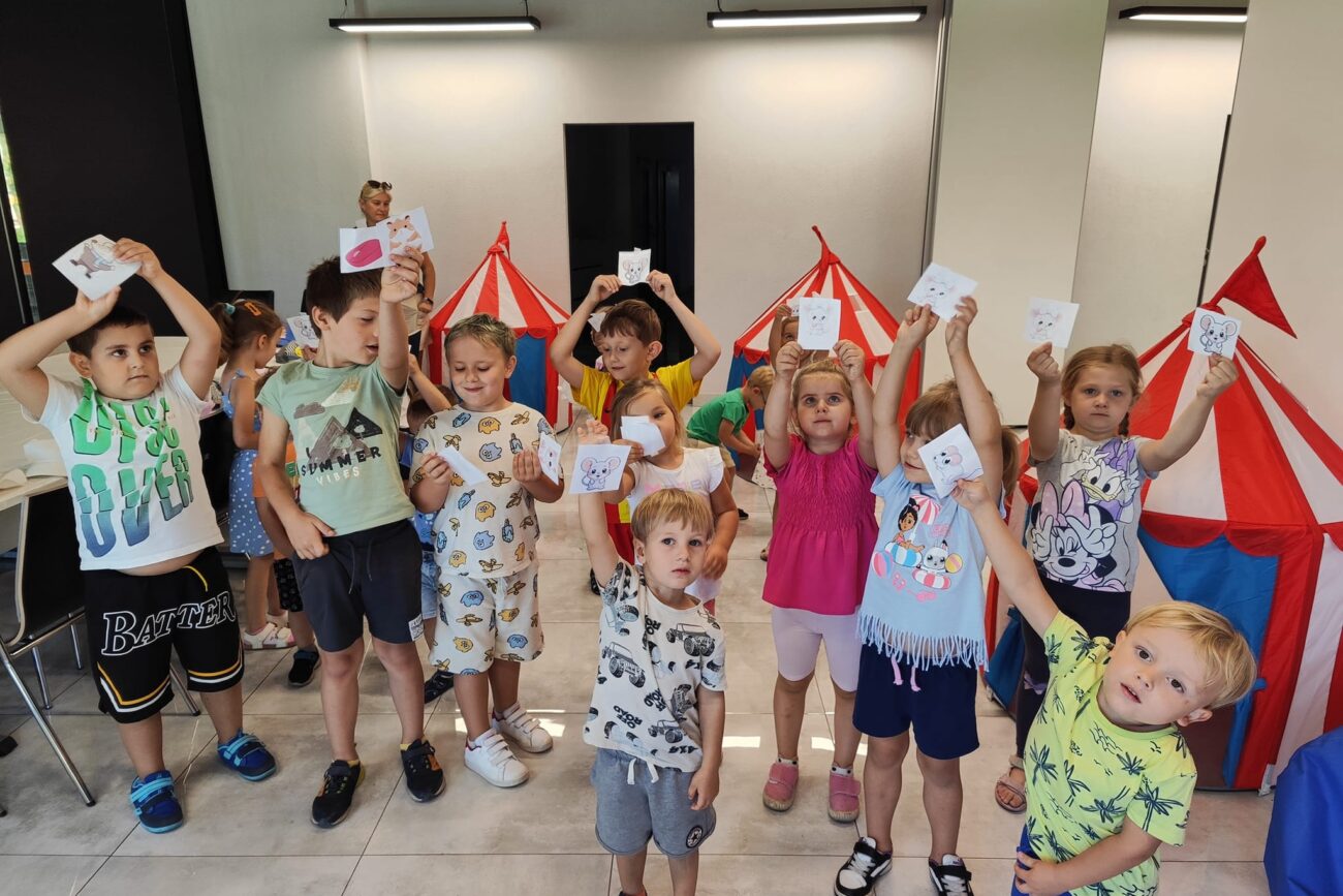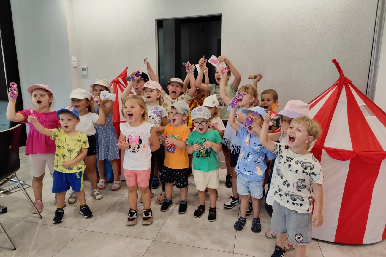 Dnia 13 sierpnia 2024r.dzieci z nasze przedszkolaki na zaproszenie POK Kazimierz wzięły udział w zajęciach z okazji Dnia Kota. Na początku dzieci uczestniczyły w zabawie polegającej na odszukiwaniu ukrytych myszek. Następnie wykonywały kolorowe kotki. Uczestniczyły w zabawie ruchowej: ,,Kot łapie myszki”.