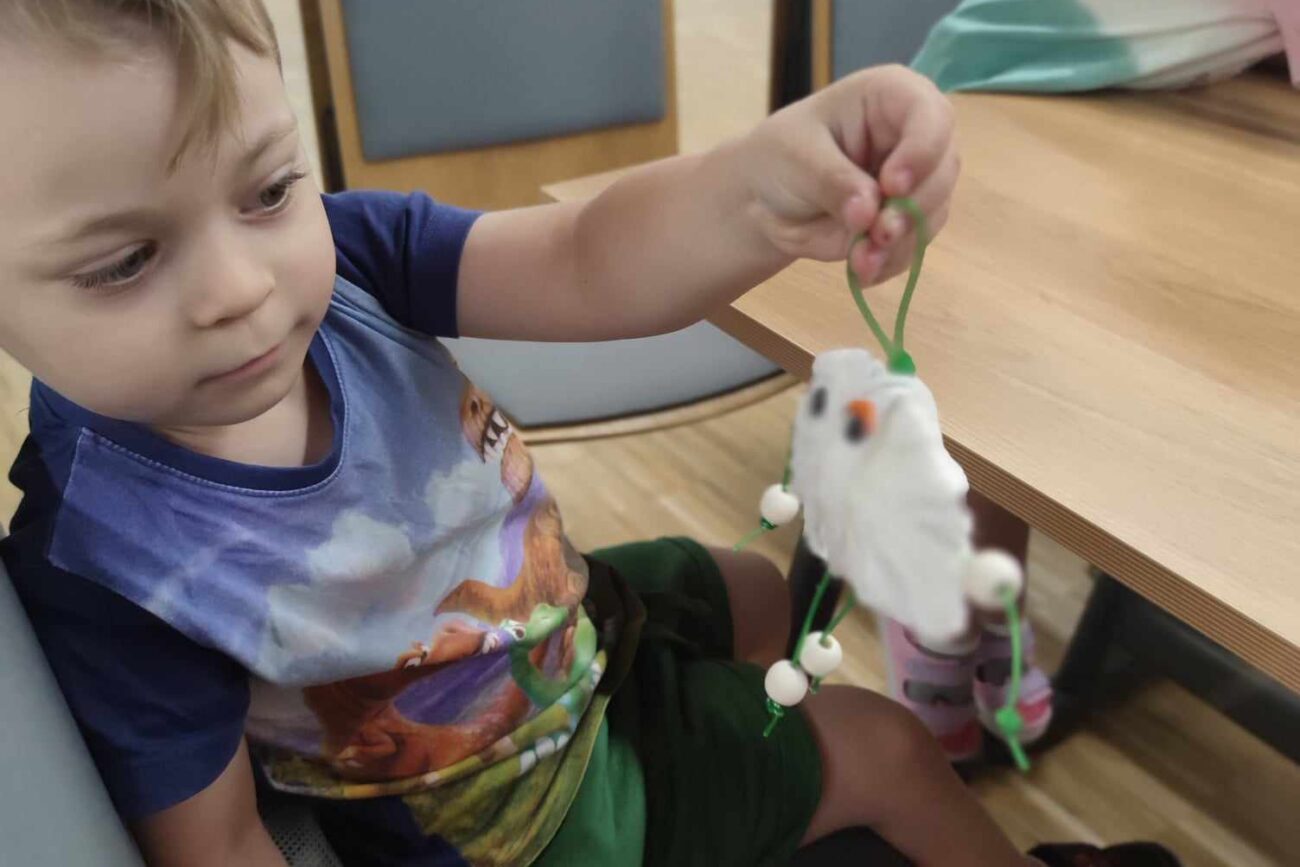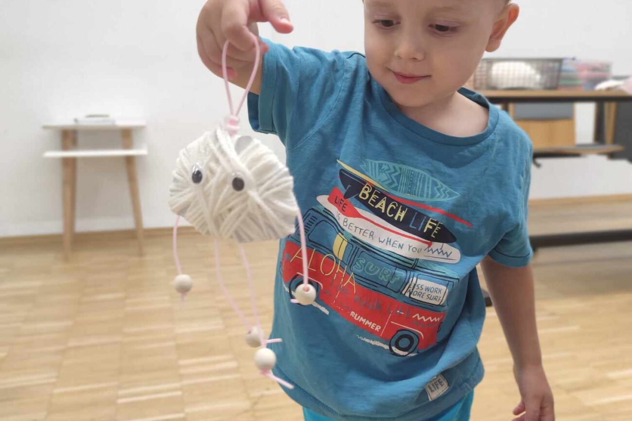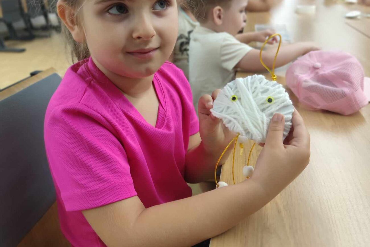 Dzieci ćwiczyły swoją głowę. Koordynację prawej i lewej półkuli, zapamiętywanie i sprawność manualną. Na pamiątkę zabrały ze sobą własnoręcznie zrobioną maskotkę…mózg z wełny.