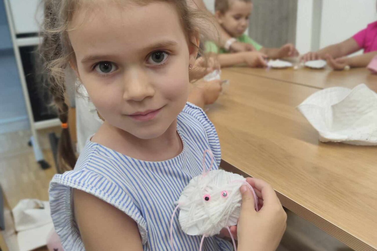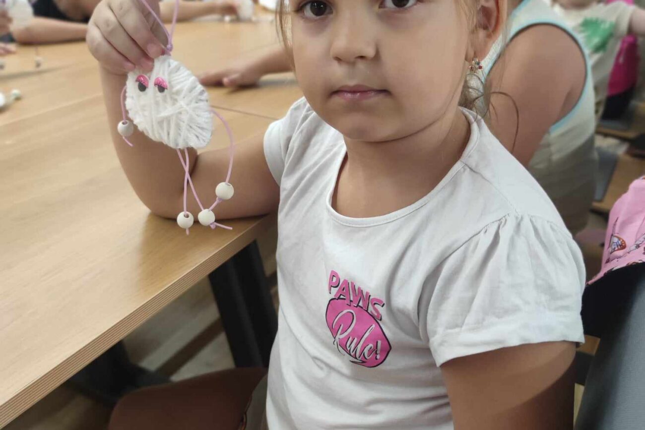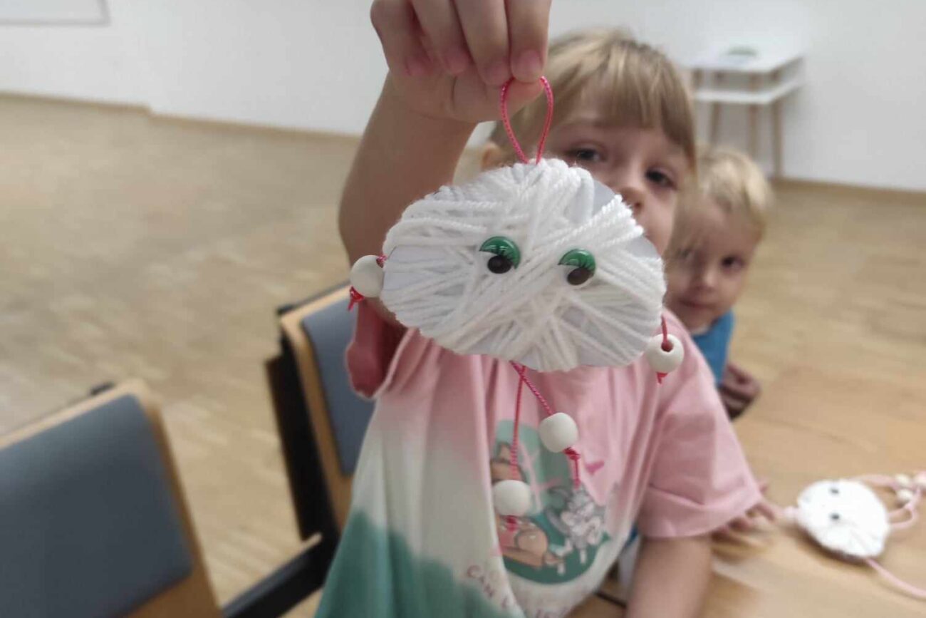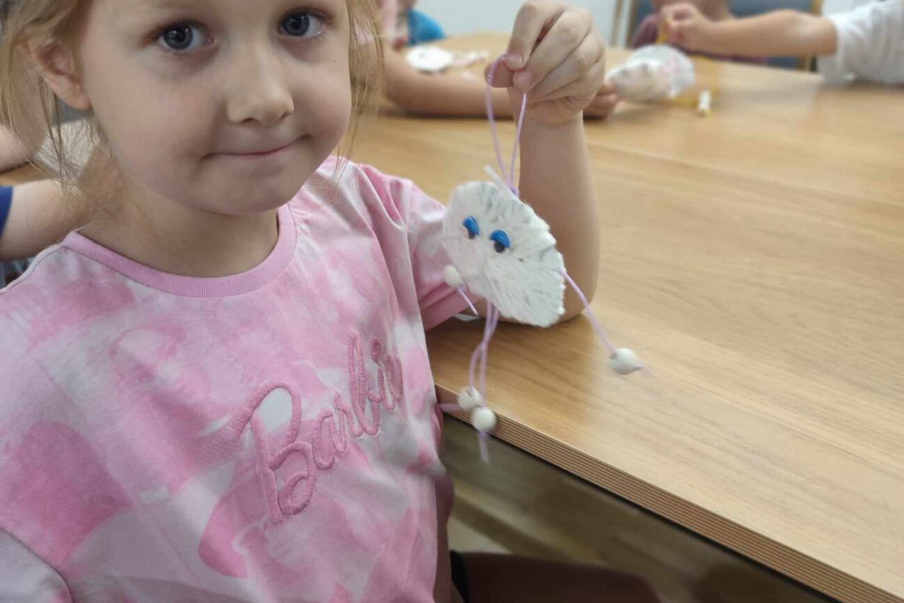 Dzieci ćwiczyły swoją głowę. Koordynację prawej i lewej półkuli, zapamiętywanie i sprawność manualną. Na pamiątkę zabrały ze sobą własnoręcznie zrobioną maskotkę…mózg z wełny.