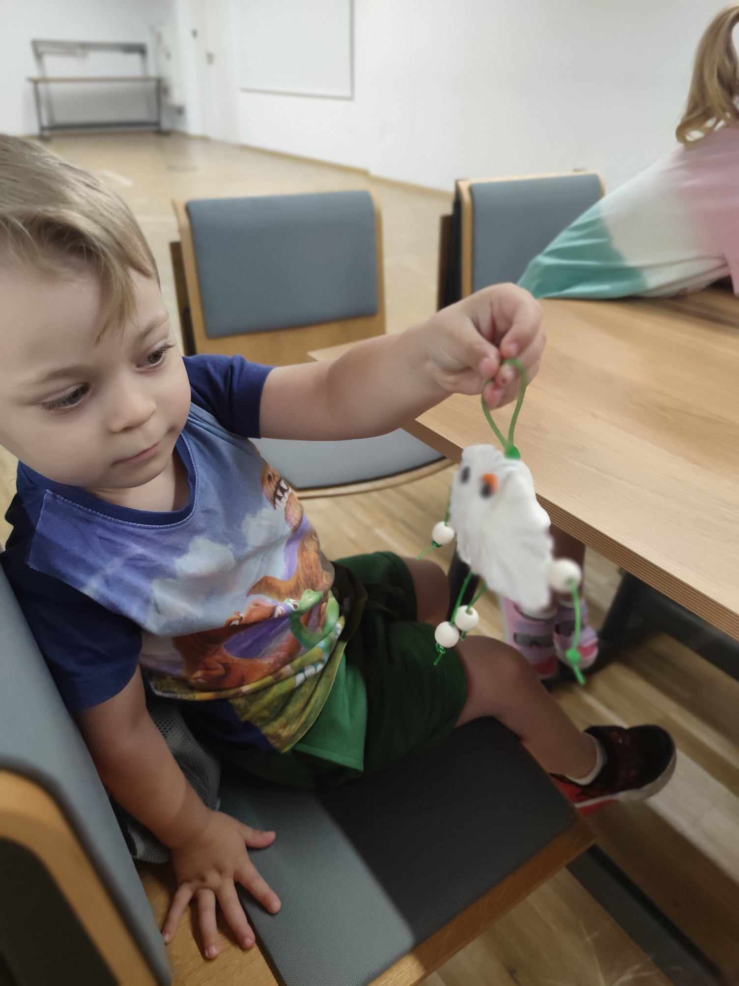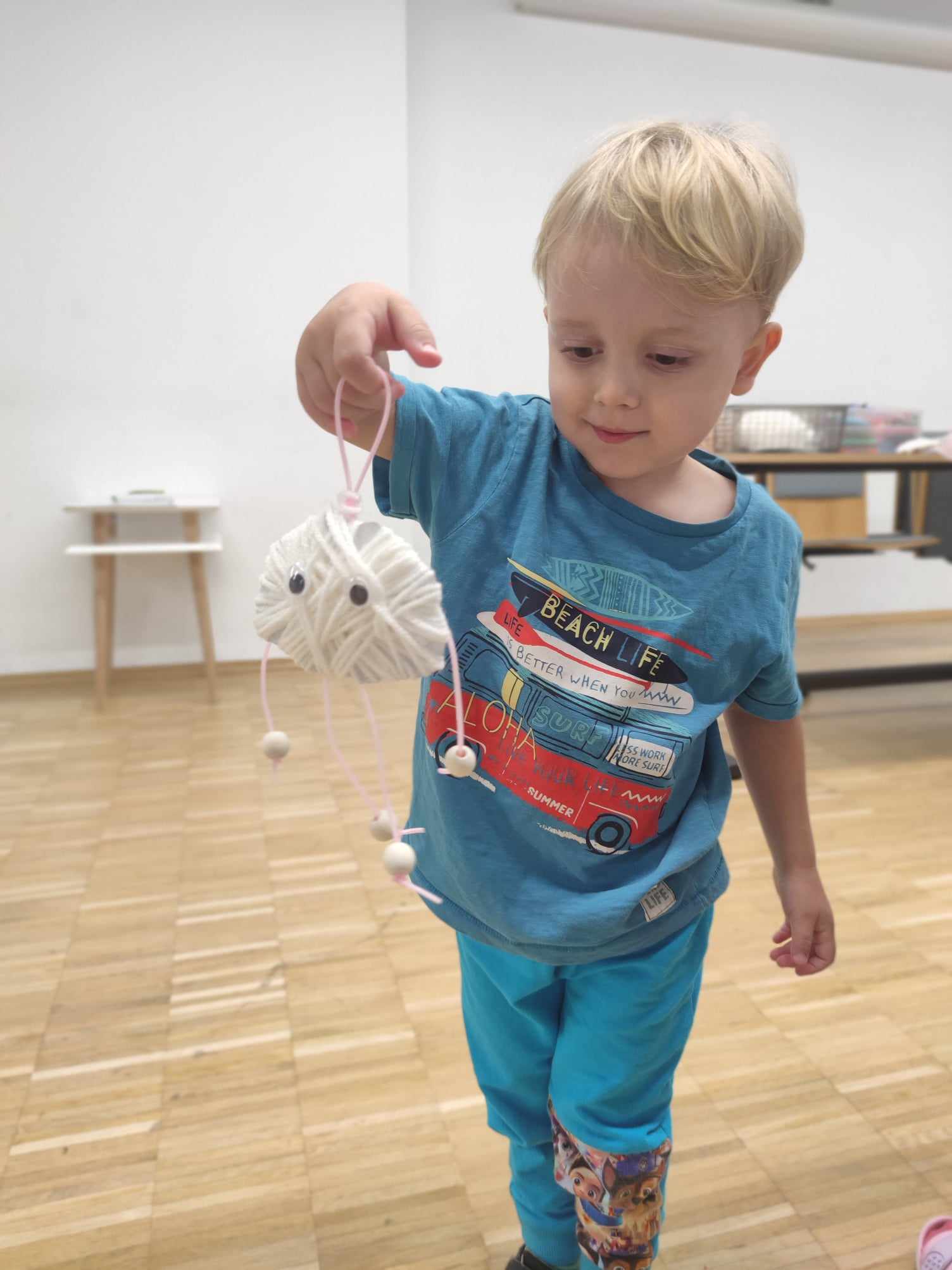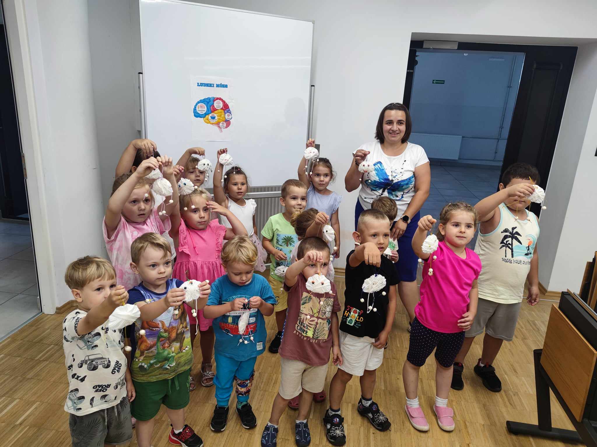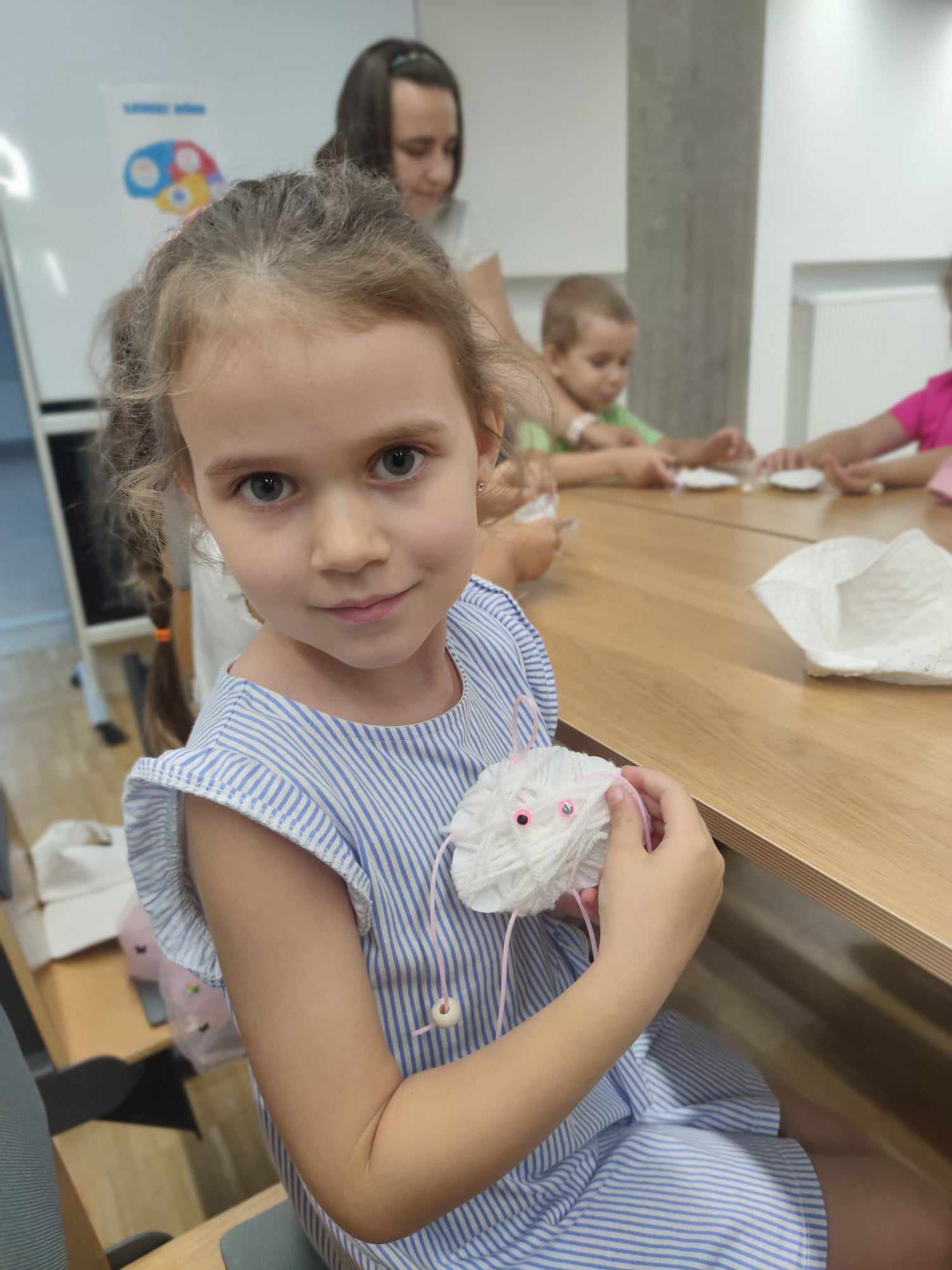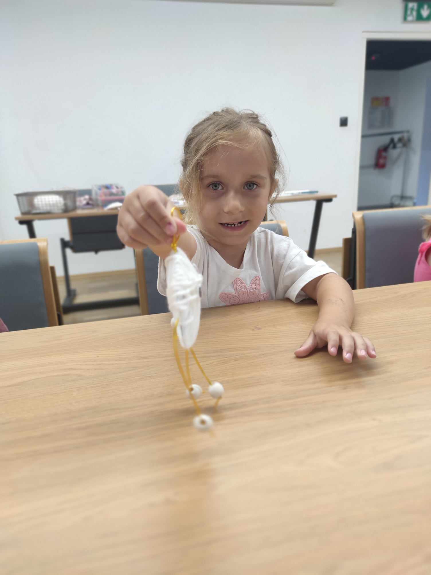 Dzieci ćwiczyły swoją głowę. Koordynację prawej i lewej półkuli, zapamiętywanie i sprawność manualną. Na pamiątkę zabrały ze sobą własnoręcznie zrobioną maskotkę…mózg z wełny.