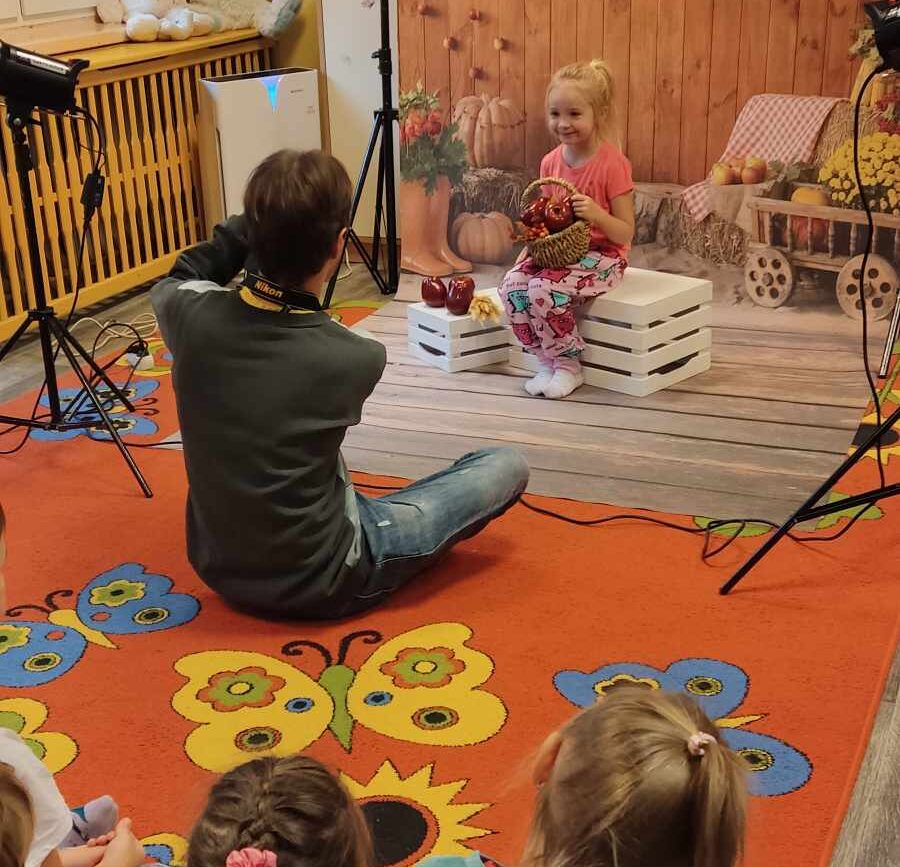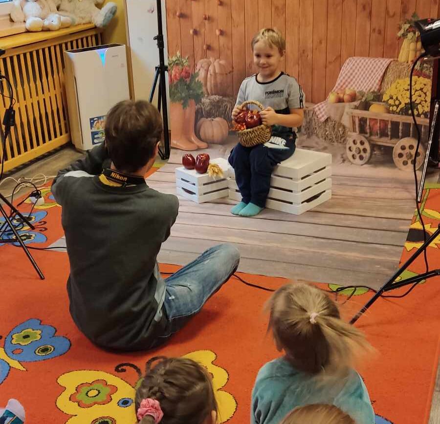 W poniedziałek (20.11.2023r.) w Naszym Przedszkolu odbyły się warsztaty chemiczne połączone z jesienną sesją zdjęciową.
