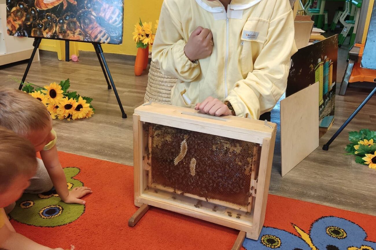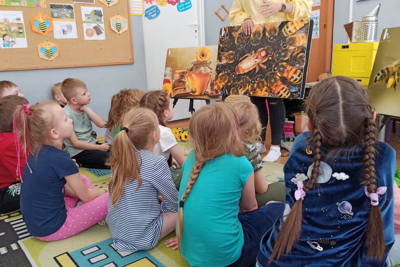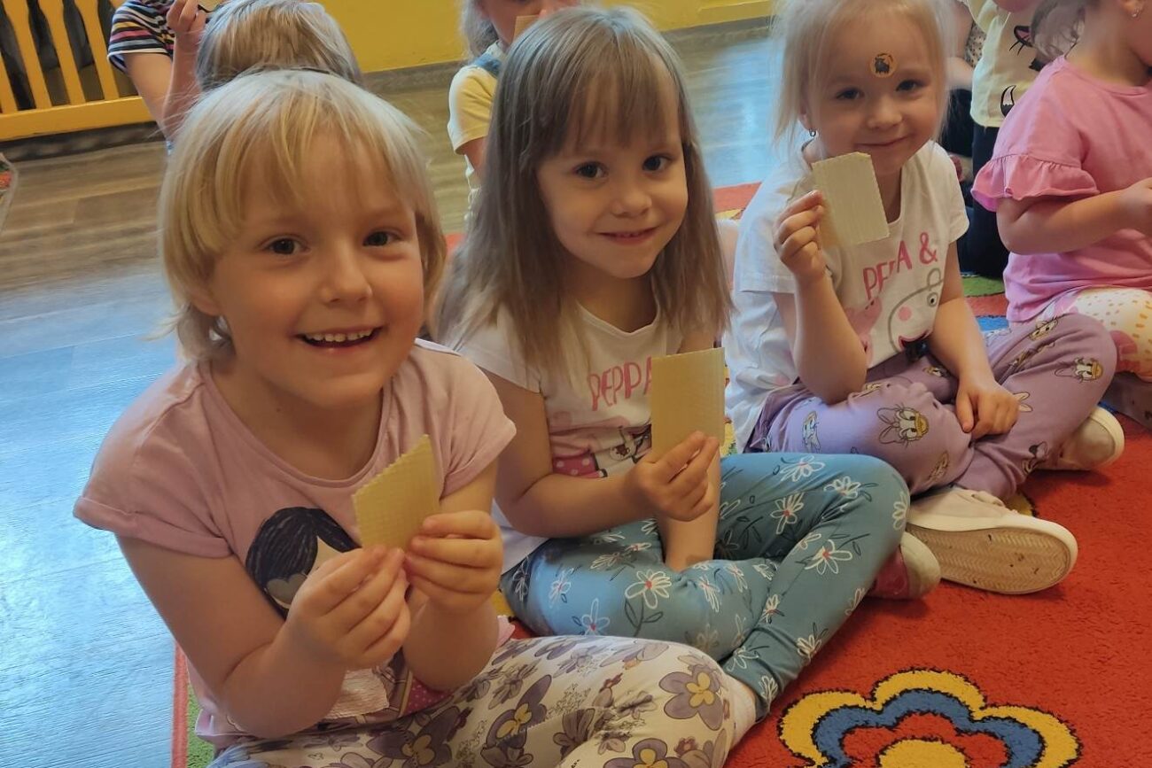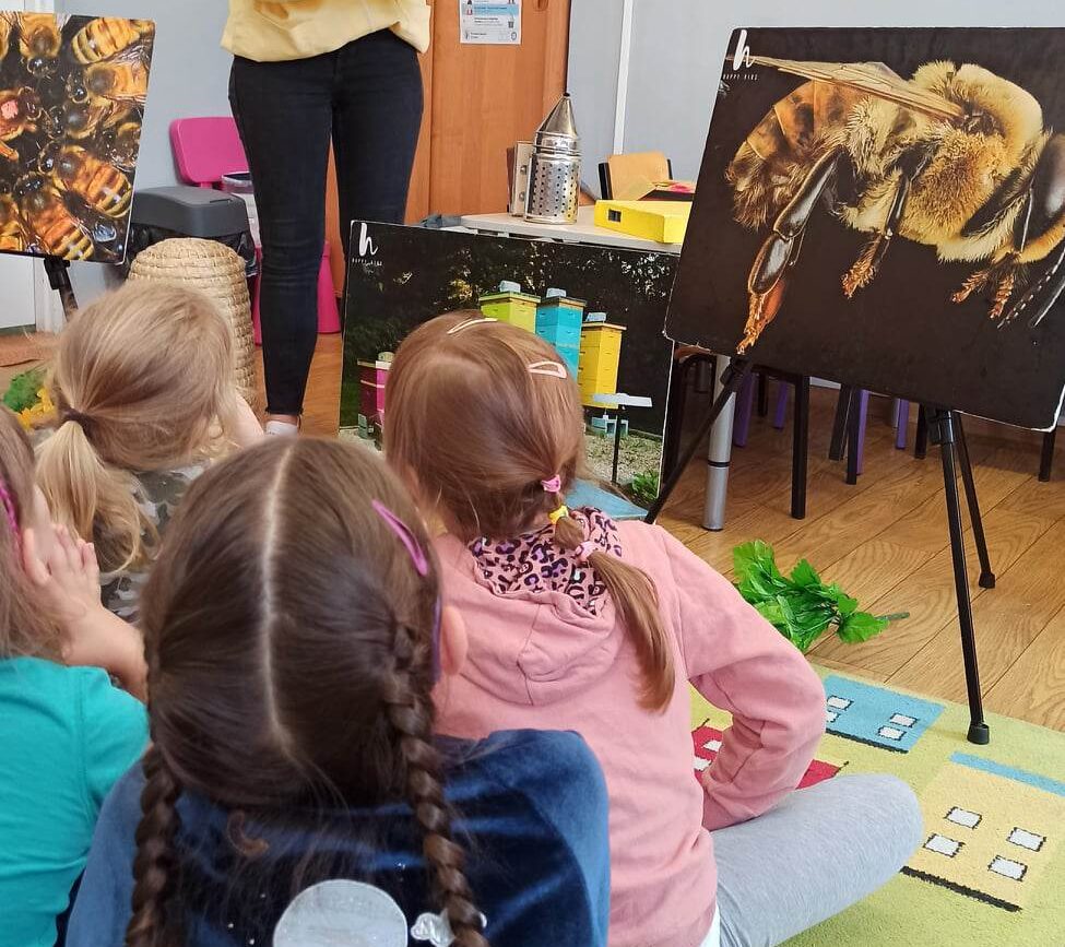 W dniu 29 maja w naszym przedszkolu odbyły się warsztaty pszczelarskie „Skąd się bierze miód?”. Dzieci miały możliwość poznać zwyczaje pszczół oraz dowiedzieć się jaką ogromną rolę pełnią w środowisku naturalnym. Przedszkolaki miały okazję obejrzeć strój pszczelarza i przyrządy, których używa on w swojej codziennej pracy. Niewątpliwą atrakcją była możliwość zobaczenia pszczół w szklanym ulu i wypatrywanie ich królowej. Na warsztatach dzieci samodzielnie wykonały świece z wosku pszczelego. Każdy uczestnik otrzymał dyplom oraz słoiczek pysznego miodu.