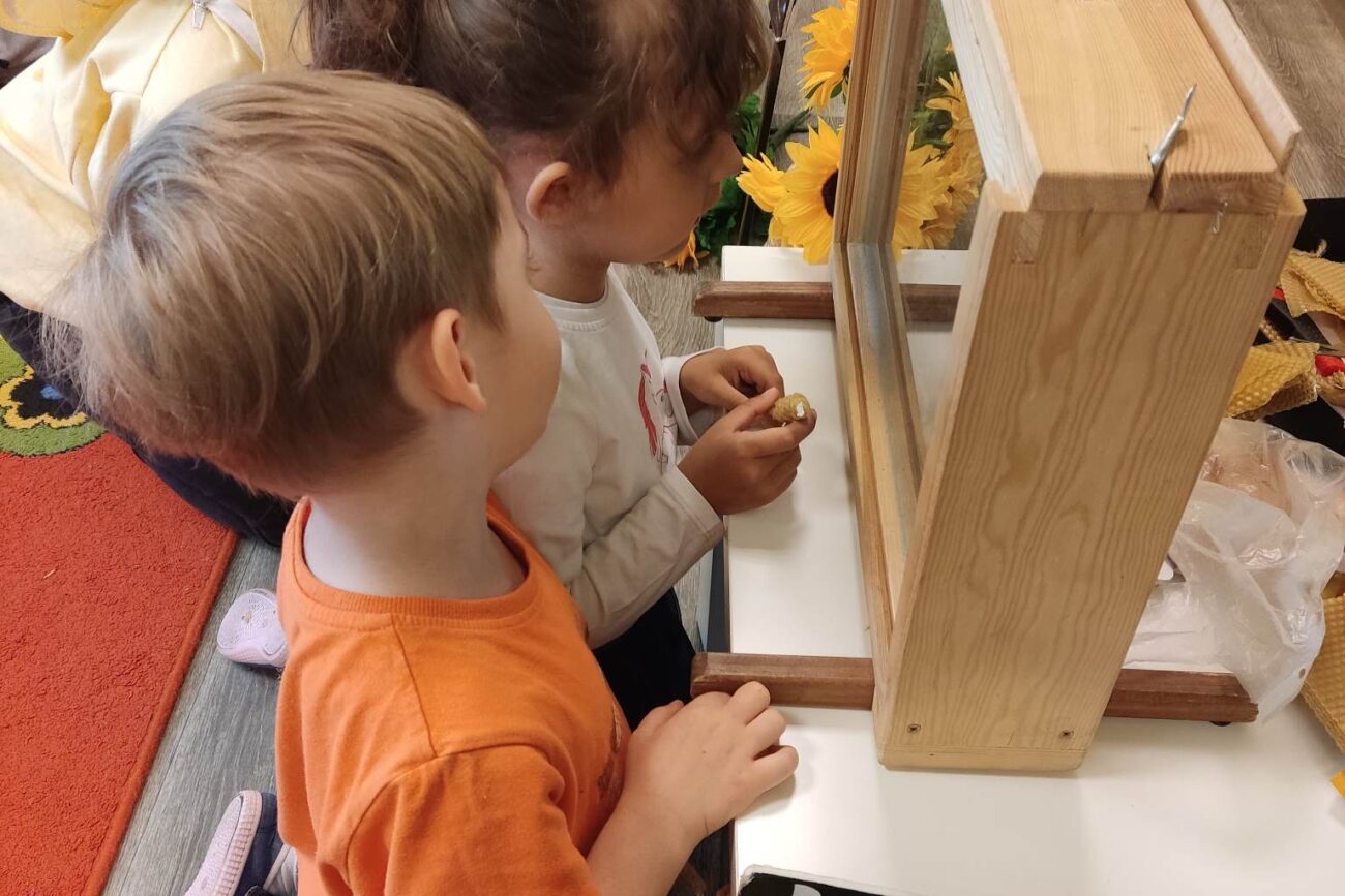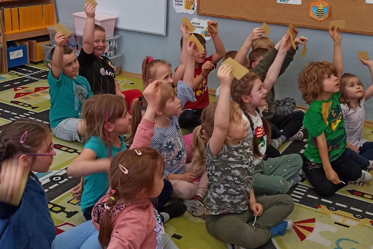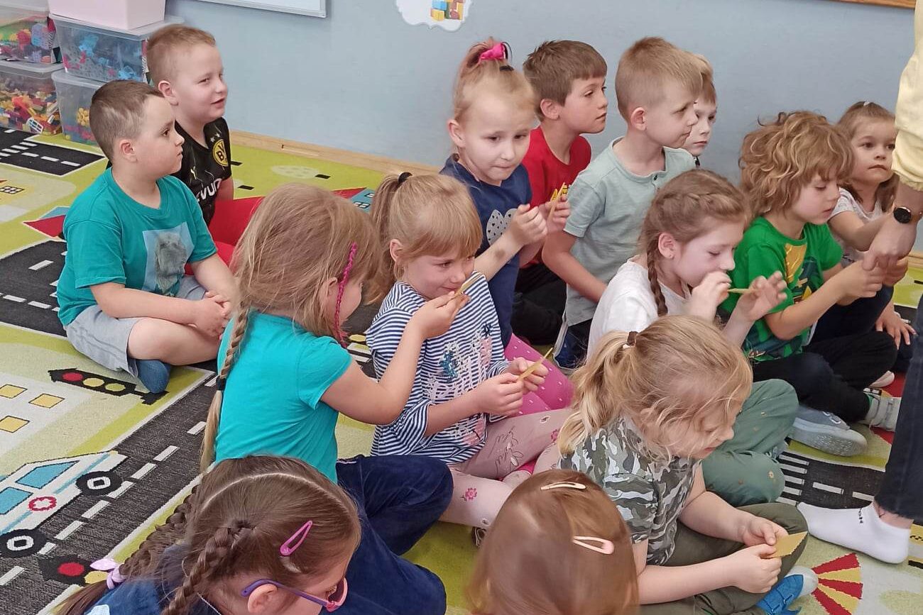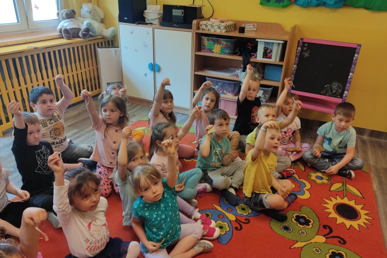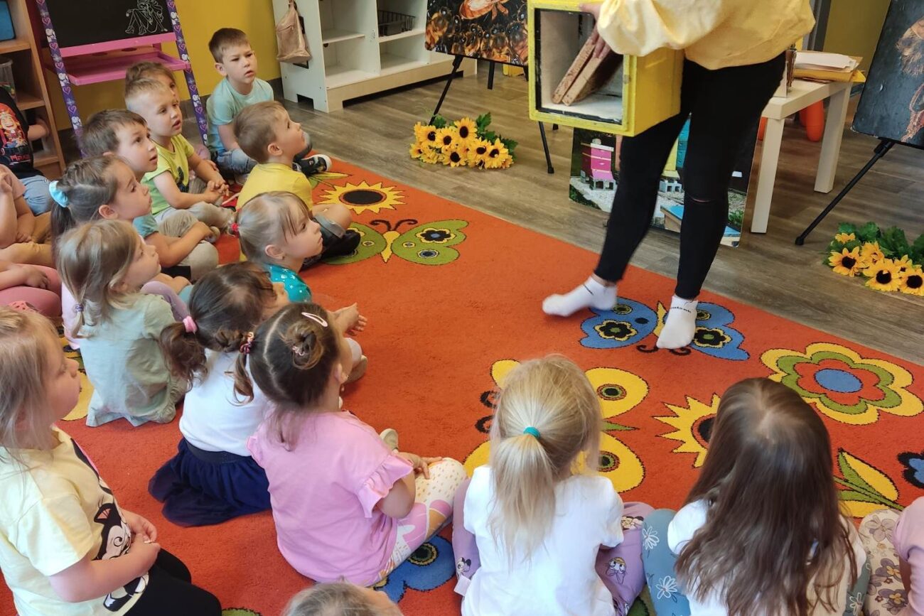 W dniu 29 maja w naszym przedszkolu odbyły się warsztaty pszczelarskie „Skąd się bierze miód?”. Dzieci miały możliwość poznać zwyczaje pszczół oraz dowiedzieć się jaką ogromną rolę pełnią w środowisku naturalnym. Przedszkolaki miały okazję obejrzeć strój pszczelarza i przyrządy, których używa on w swojej codziennej pracy. Niewątpliwą atrakcją była możliwość zobaczenia pszczół w szklanym ulu i wypatrywanie ich królowej. Na warsztatach dzieci samodzielnie wykonały świece z wosku pszczelego. Każdy uczestnik otrzymał dyplom oraz słoiczek pysznego miodu.