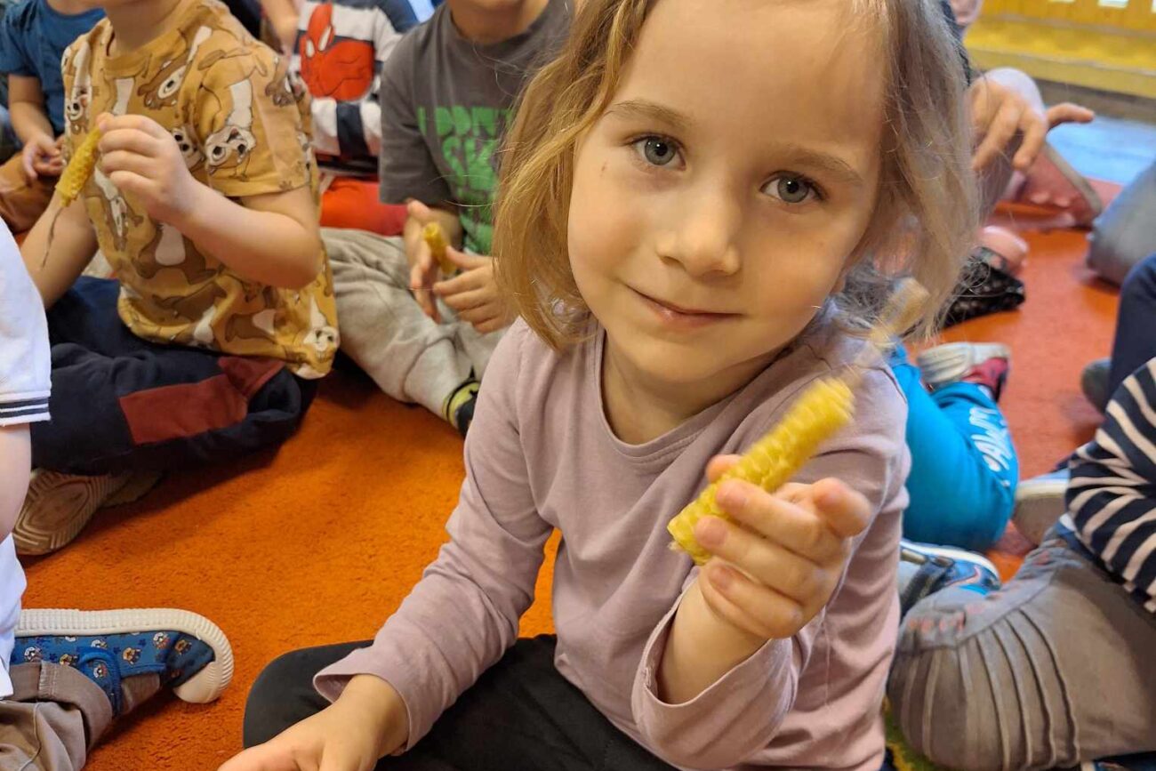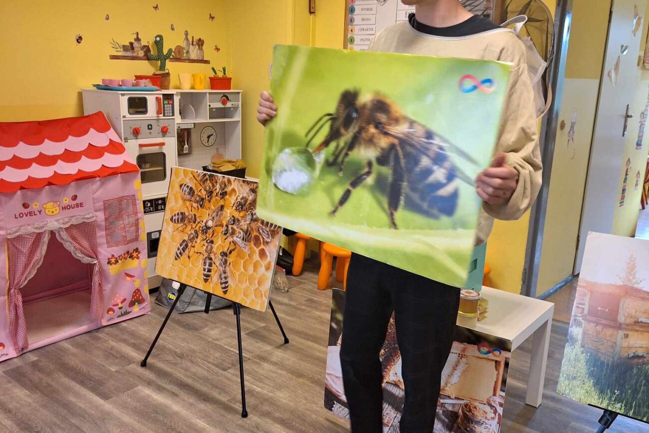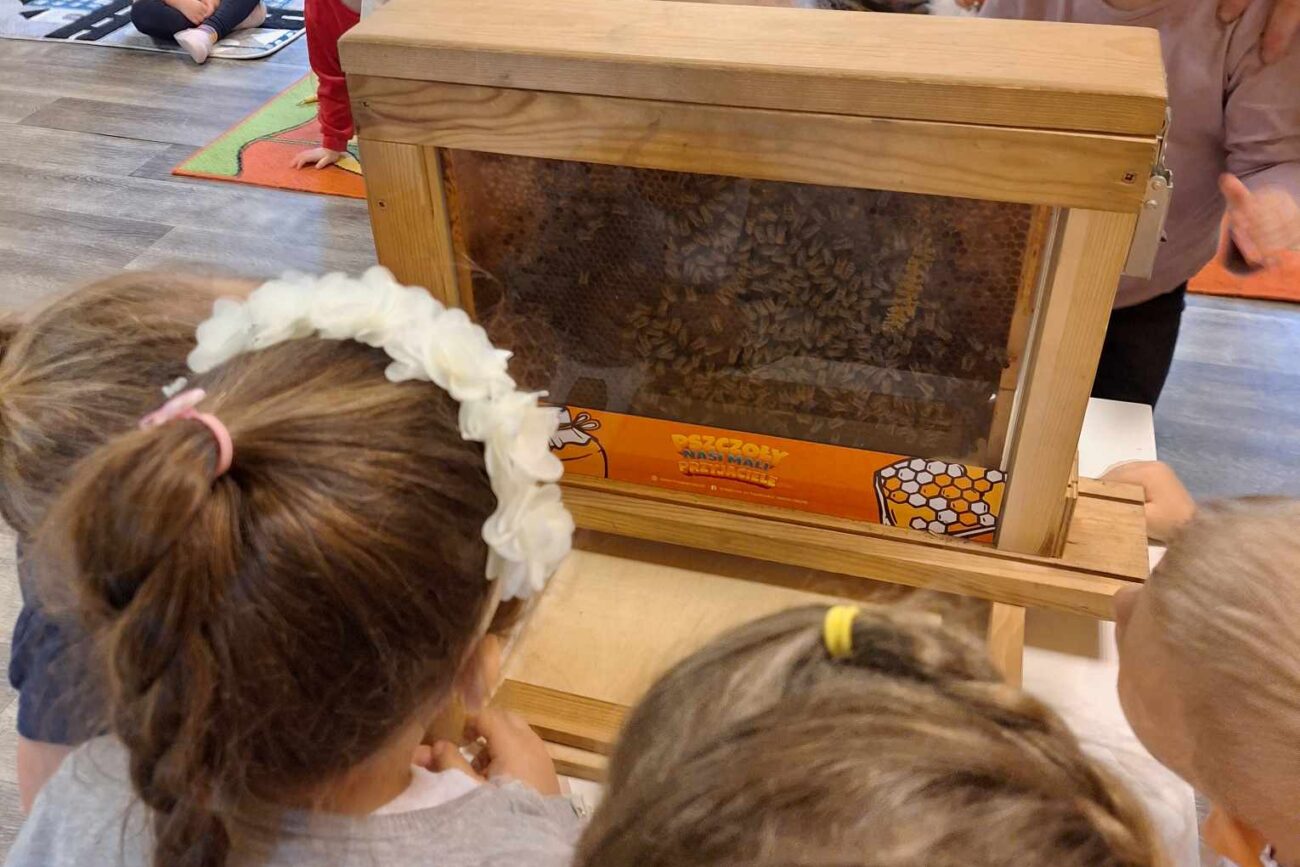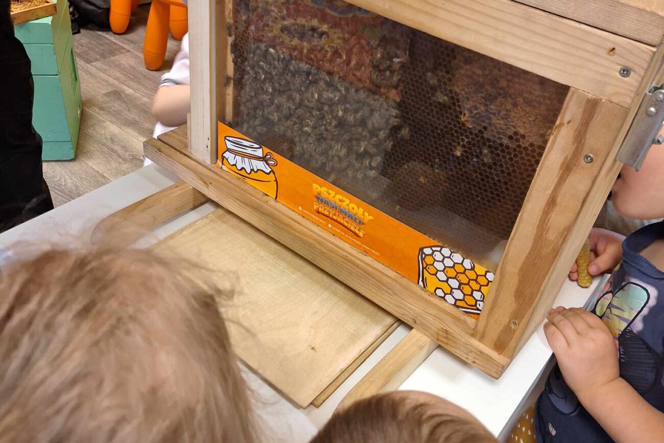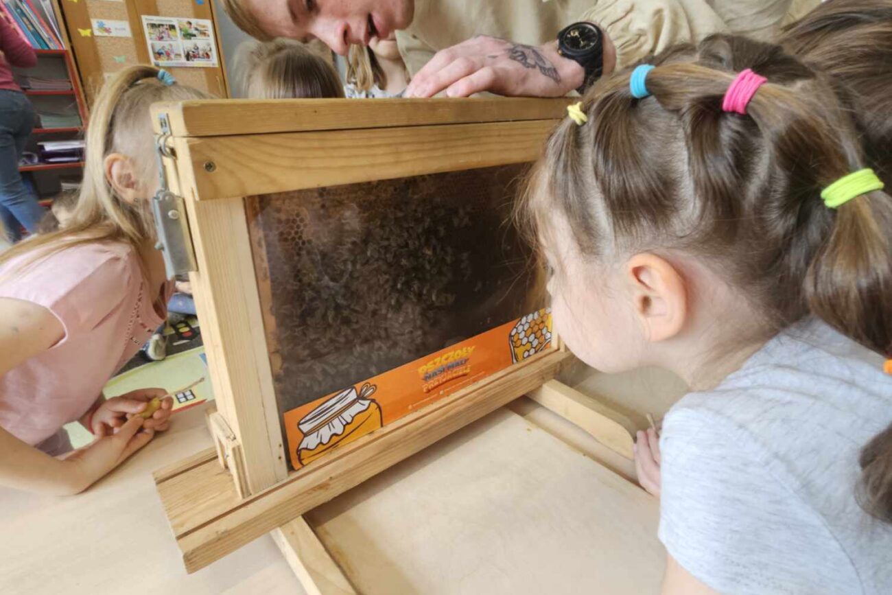 W dniu dzisiejszym gościliśmy w naszym przedszkolu IMAGO GRUPĘ, zajmującą się hodowlą pszczół. Prowadzący warsztaty Pan Michał oczarował naszych przedszkolaków! Przekazał ciekawe informacje o życiu pszczół, podkreślając ich kluczową rolę w przyrodzie. Uczniowie dowiedzieli się jak powstaje miód. Dużą atrakcją było oglądanie prawdziwego ula z pszczołami, stroju pszczelarza oraz przyrządów, których używa w swojej codziennej pracy. Pan Michał wyjaśnił, jak wygląda życie w ulu. Opowiedział o sposobach porozumiewania się pszczół i zdradził nam inne tajemnice z życia tych pracowitych owadów. Wyjaśnił, jak przebiega proces, który kończy się napełnianiem słoików miodem. Uczestnicy warsztatów mieli możliwość uformowania własnej świecy z wosku pszczelego. Na pamiątkę otrzymali dyplomy, odznaki pszczelarza i słoiczek miodu. To była wspaniała, ciekawa, żywa lekcja przyrody.