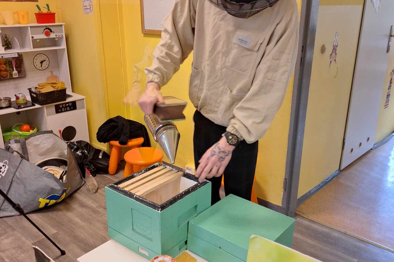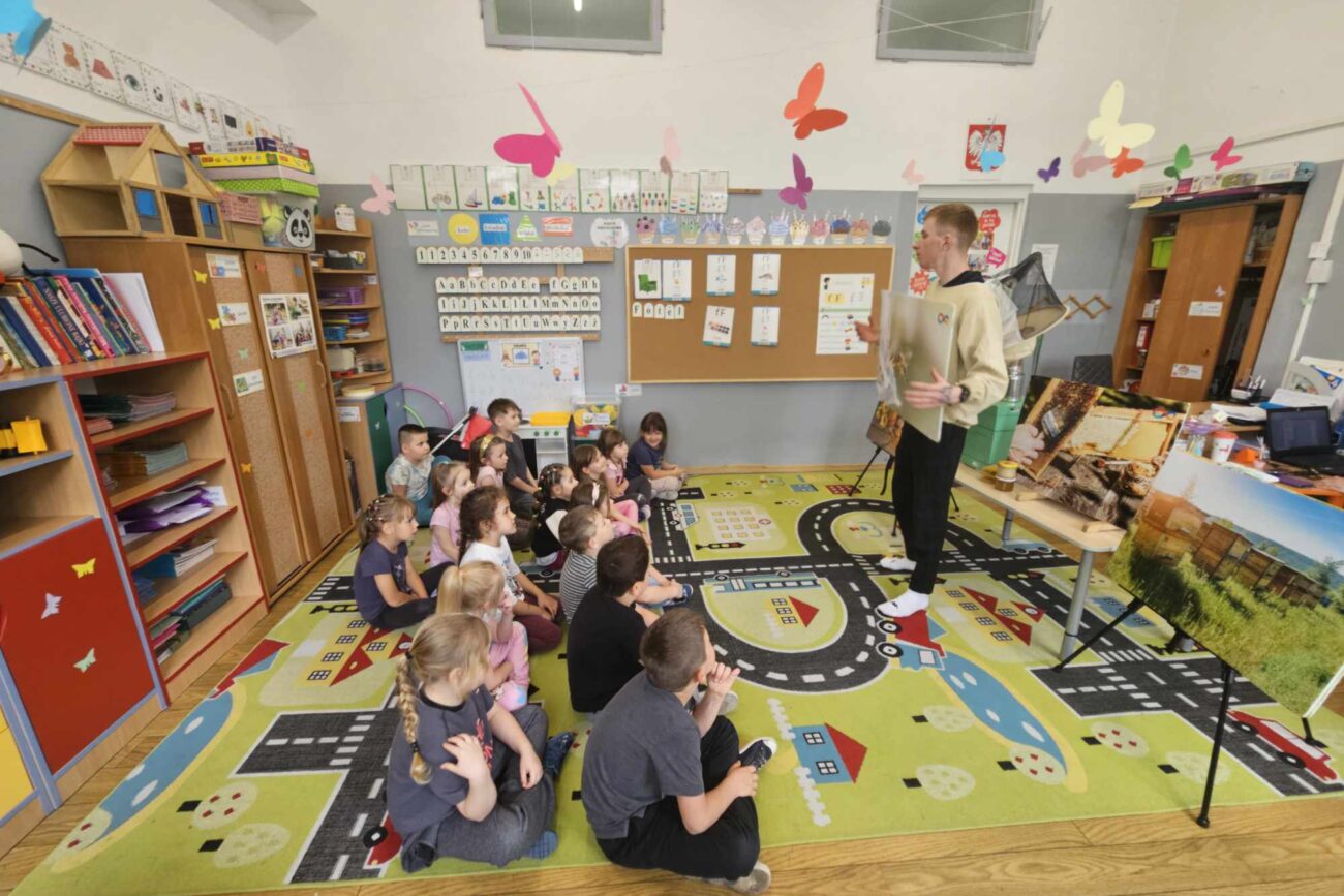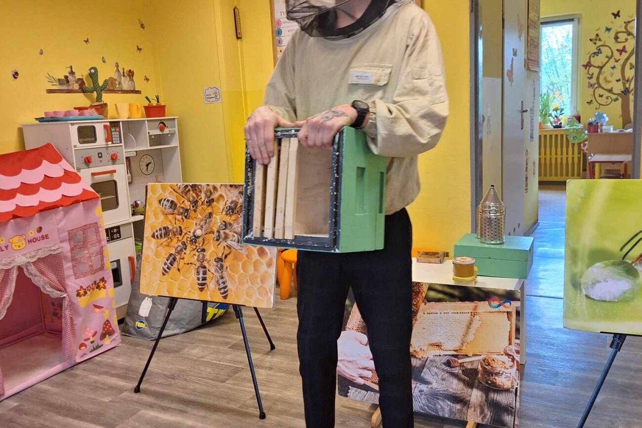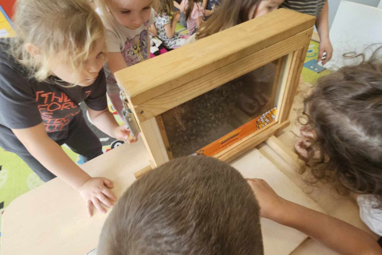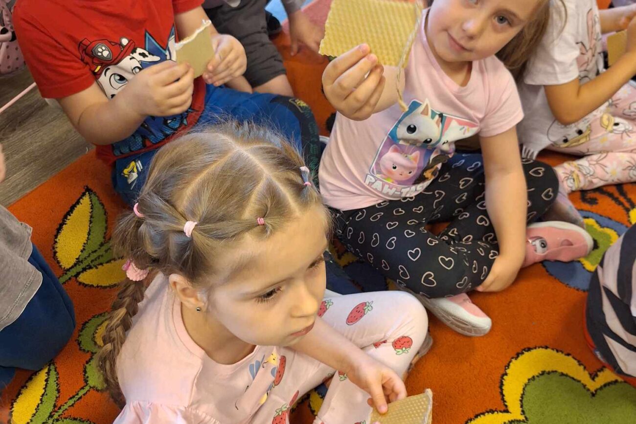 W dniu dzisiejszym gościliśmy w naszym przedszkolu IMAGO GRUPĘ, zajmującą się hodowlą pszczół. Prowadzący warsztaty Pan Michał oczarował naszych przedszkolaków! Przekazał ciekawe informacje o życiu pszczół, podkreślając ich kluczową rolę w przyrodzie. Uczniowie dowiedzieli się jak powstaje miód. Dużą atrakcją było oglądanie prawdziwego ula z pszczołami, stroju pszczelarza oraz przyrządów, których używa w swojej codziennej pracy. Pan Michał wyjaśnił, jak wygląda życie w ulu. Opowiedział o sposobach porozumiewania się pszczół i zdradził nam inne tajemnice z życia tych pracowitych owadów. Wyjaśnił, jak przebiega proces, który kończy się napełnianiem słoików miodem. Uczestnicy warsztatów mieli możliwość uformowania własnej świecy z wosku pszczelego. Na pamiątkę otrzymali dyplomy, odznaki pszczelarza i słoiczek miodu. To była wspaniała, ciekawa, żywa lekcja przyrody.