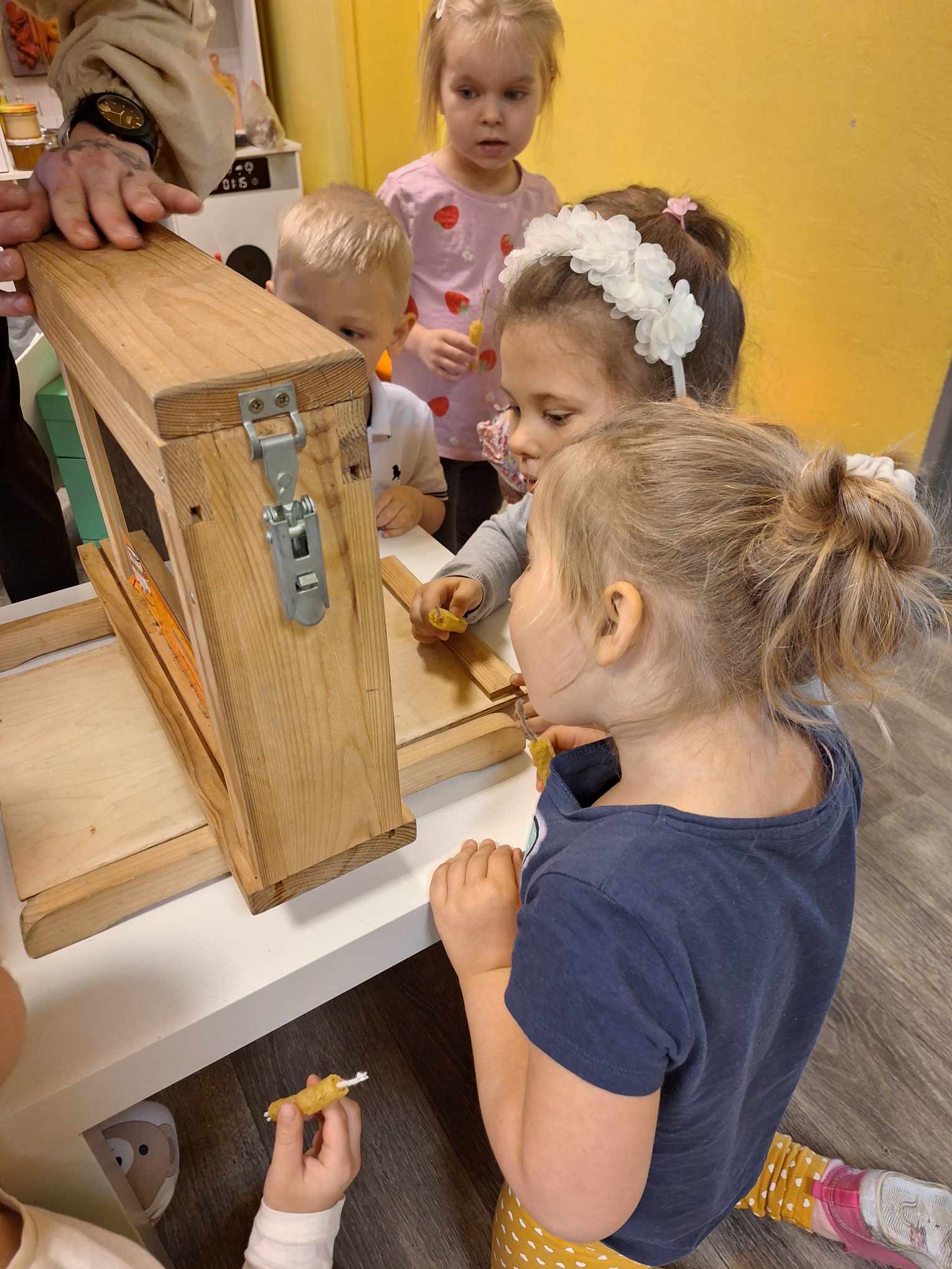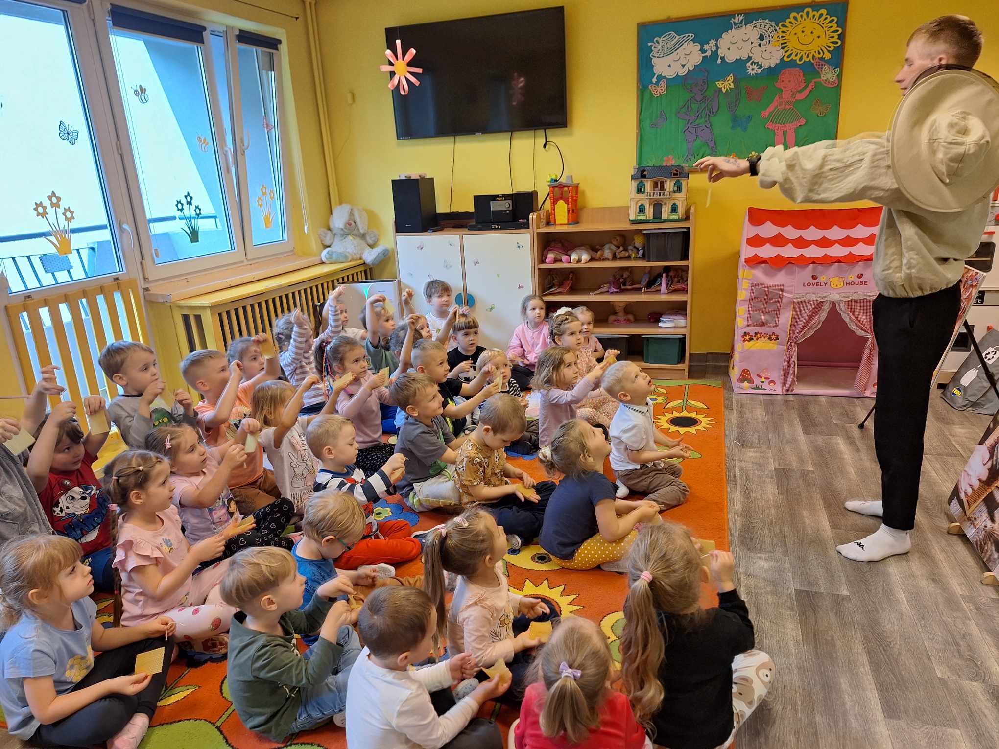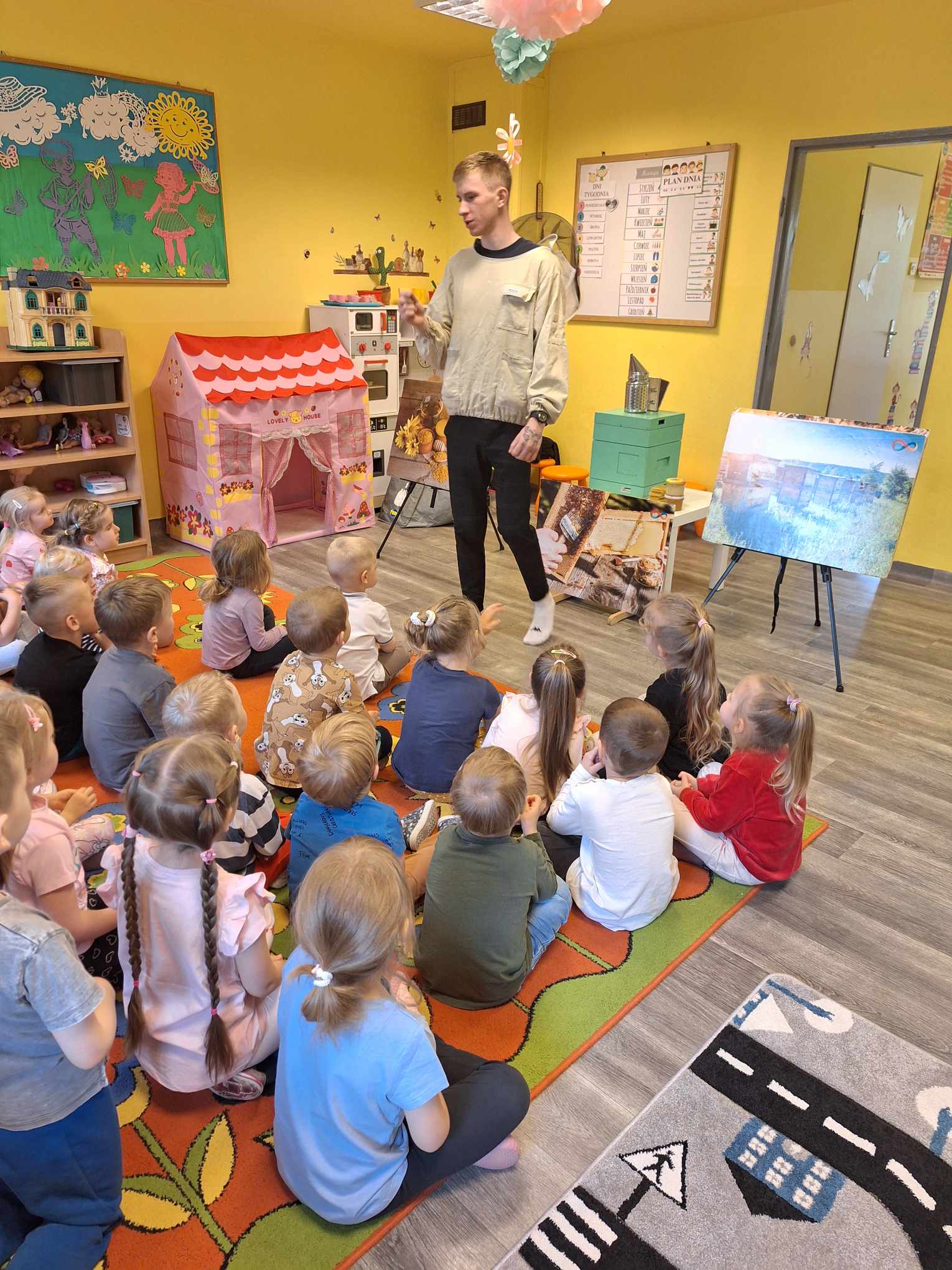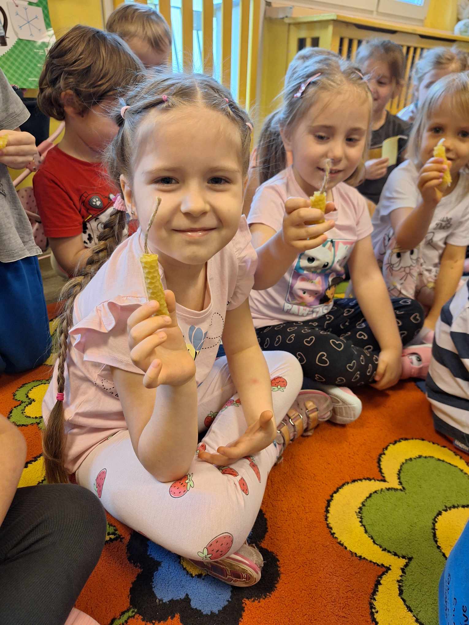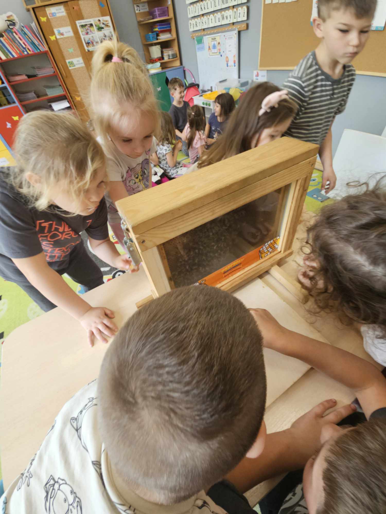 W dniu dzisiejszym gościliśmy w naszym przedszkolu IMAGO GRUPĘ, zajmującą się hodowlą pszczół. Prowadzący warsztaty Pan Michał oczarował naszych przedszkolaków! Przekazał ciekawe informacje o życiu pszczół, podkreślając ich kluczową rolę w przyrodzie. Uczniowie dowiedzieli się jak powstaje miód. Dużą atrakcją było oglądanie prawdziwego ula z pszczołami, stroju pszczelarza oraz przyrządów, których używa w swojej codziennej pracy. Pan Michał wyjaśnił, jak wygląda życie w ulu. Opowiedział o sposobach porozumiewania się pszczół i zdradził nam inne tajemnice z życia tych pracowitych owadów. Wyjaśnił, jak przebiega proces, który kończy się napełnianiem słoików miodem. Uczestnicy warsztatów mieli możliwość uformowania własnej świecy z wosku pszczelego. Na pamiątkę otrzymali dyplomy, odznaki pszczelarza i słoiczek miodu. To była wspaniała, ciekawa, żywa lekcja przyrody.