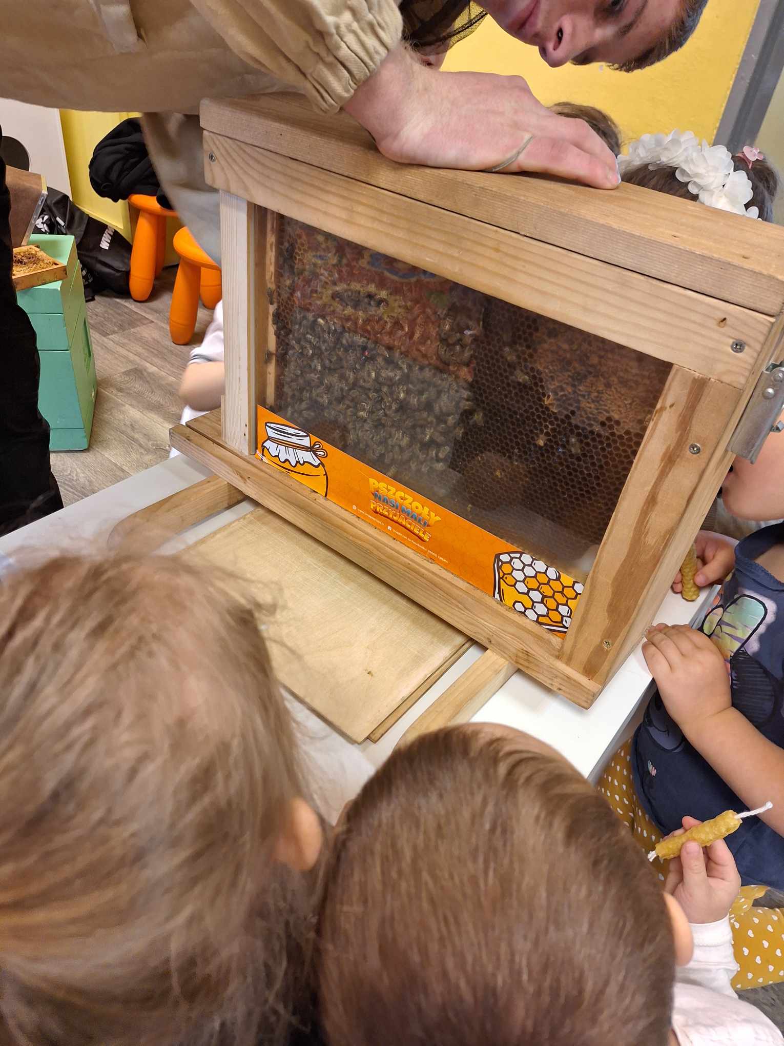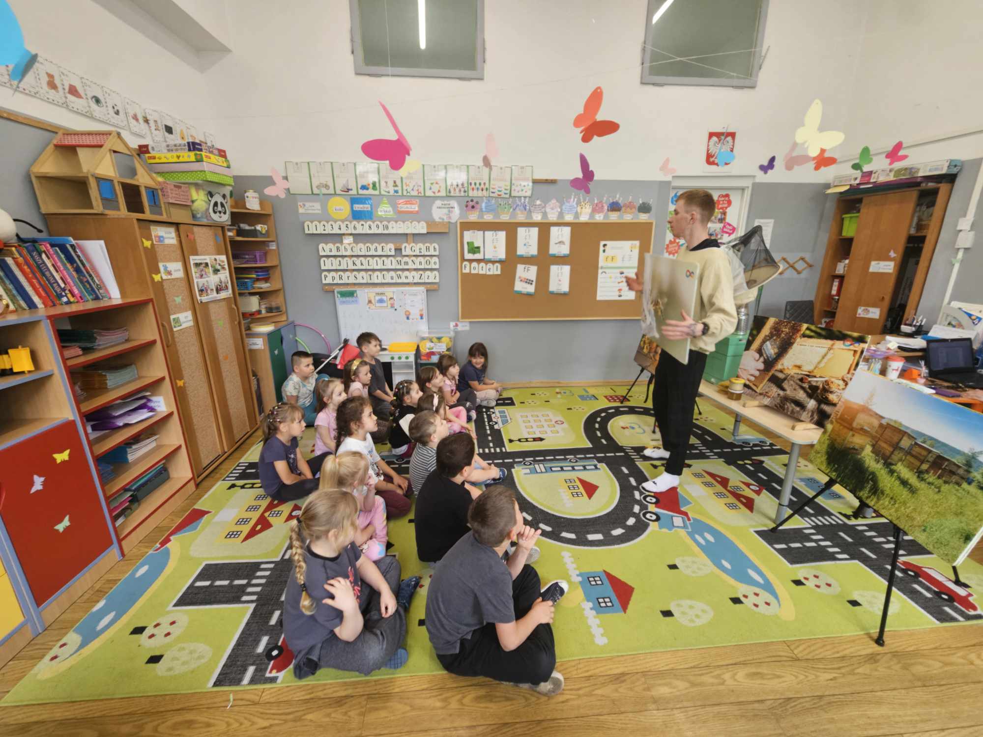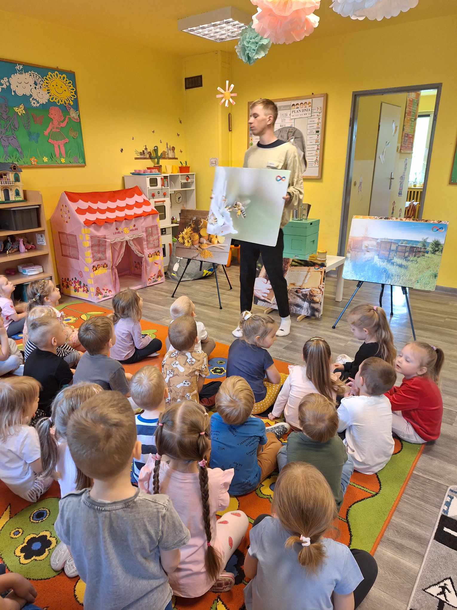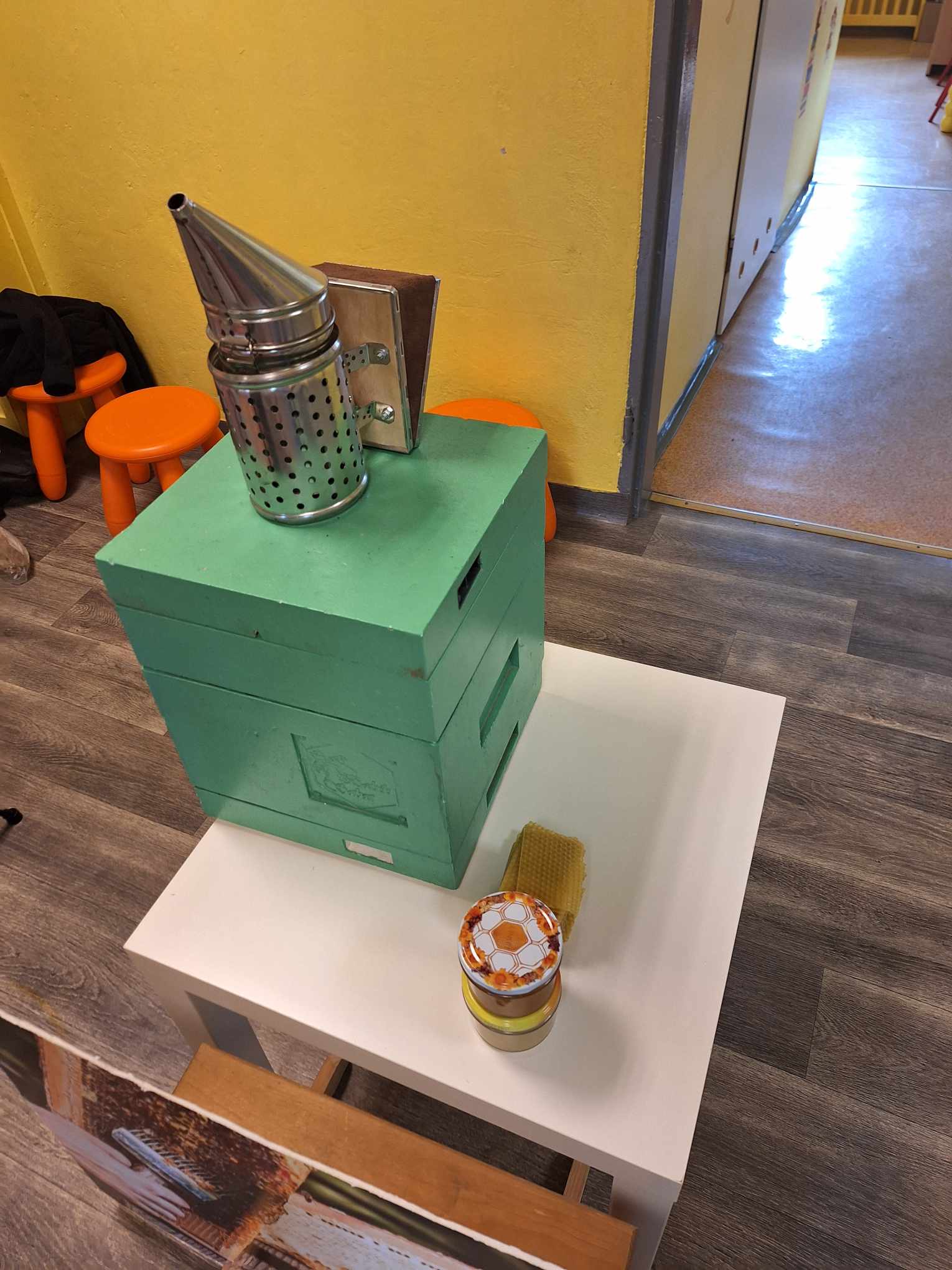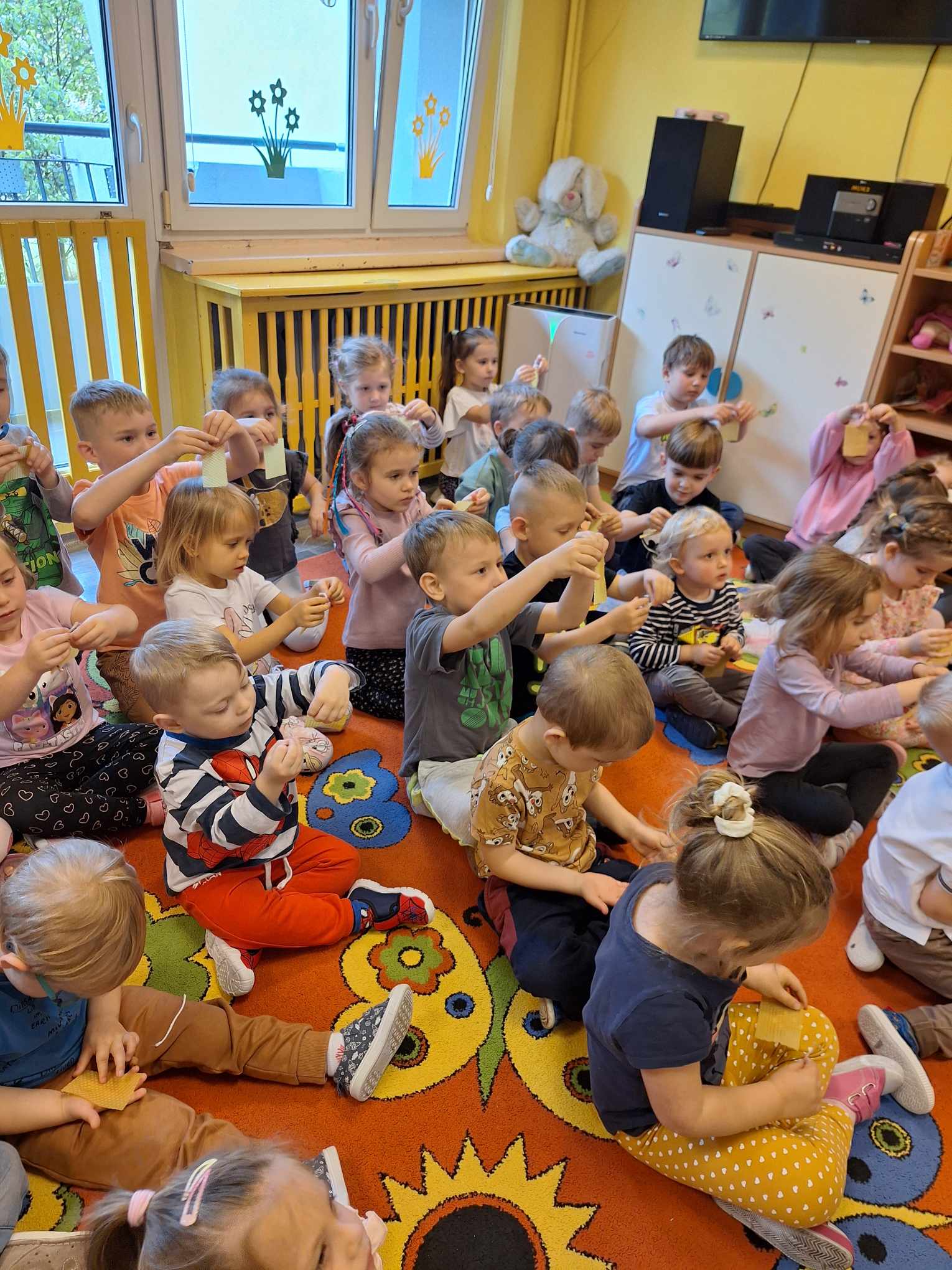 W dniu dzisiejszym gościliśmy w naszym przedszkolu IMAGO GRUPĘ, zajmującą się hodowlą pszczół. Prowadzący warsztaty Pan Michał oczarował naszych przedszkolaków! Przekazał ciekawe informacje o życiu pszczół, podkreślając ich kluczową rolę w przyrodzie. Uczniowie dowiedzieli się jak powstaje miód. Dużą atrakcją było oglądanie prawdziwego ula z pszczołami, stroju pszczelarza oraz przyrządów, których używa w swojej codziennej pracy. Pan Michał wyjaśnił, jak wygląda życie w ulu. Opowiedział o sposobach porozumiewania się pszczół i zdradził nam inne tajemnice z życia tych pracowitych owadów. Wyjaśnił, jak przebiega proces, który kończy się napełnianiem słoików miodem. Uczestnicy warsztatów mieli możliwość uformowania własnej świecy z wosku pszczelego. Na pamiątkę otrzymali dyplomy, odznaki pszczelarza i słoiczek miodu. To była wspaniała, ciekawa, żywa lekcja przyrody.
