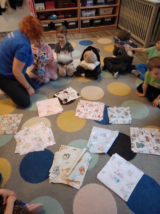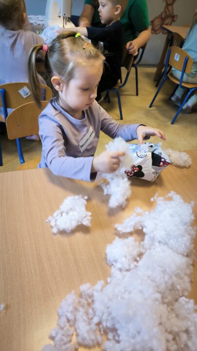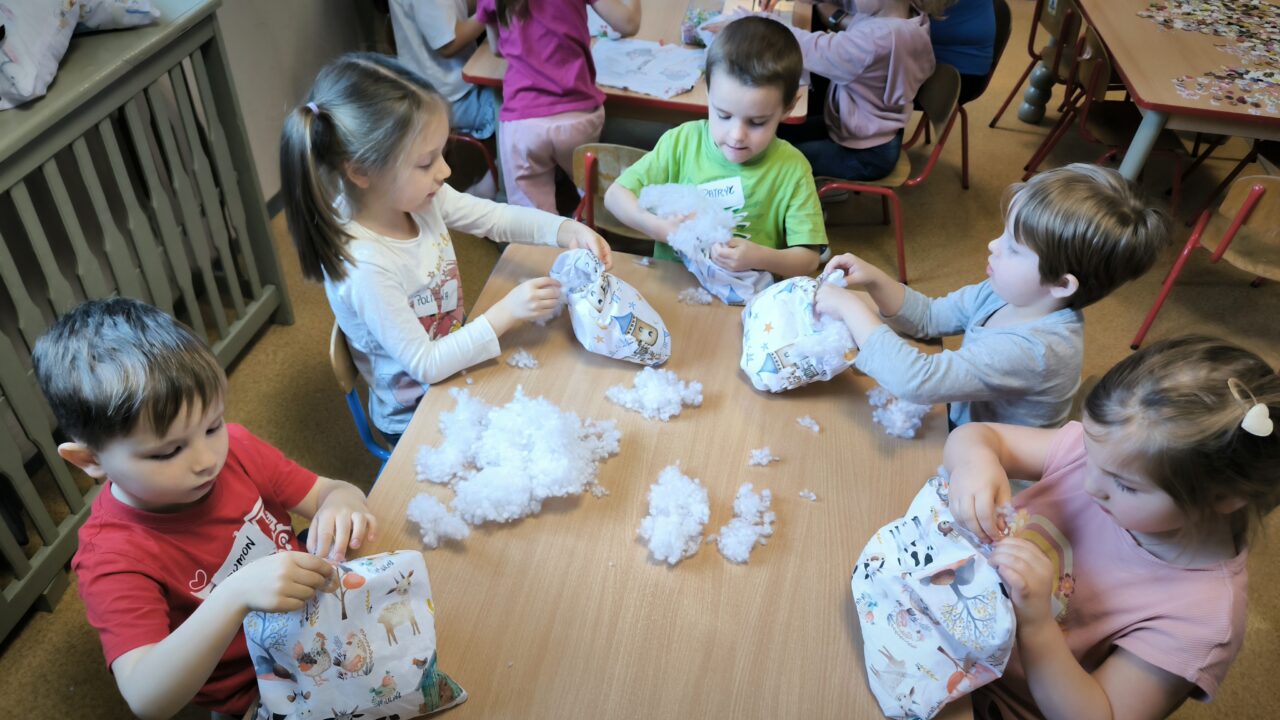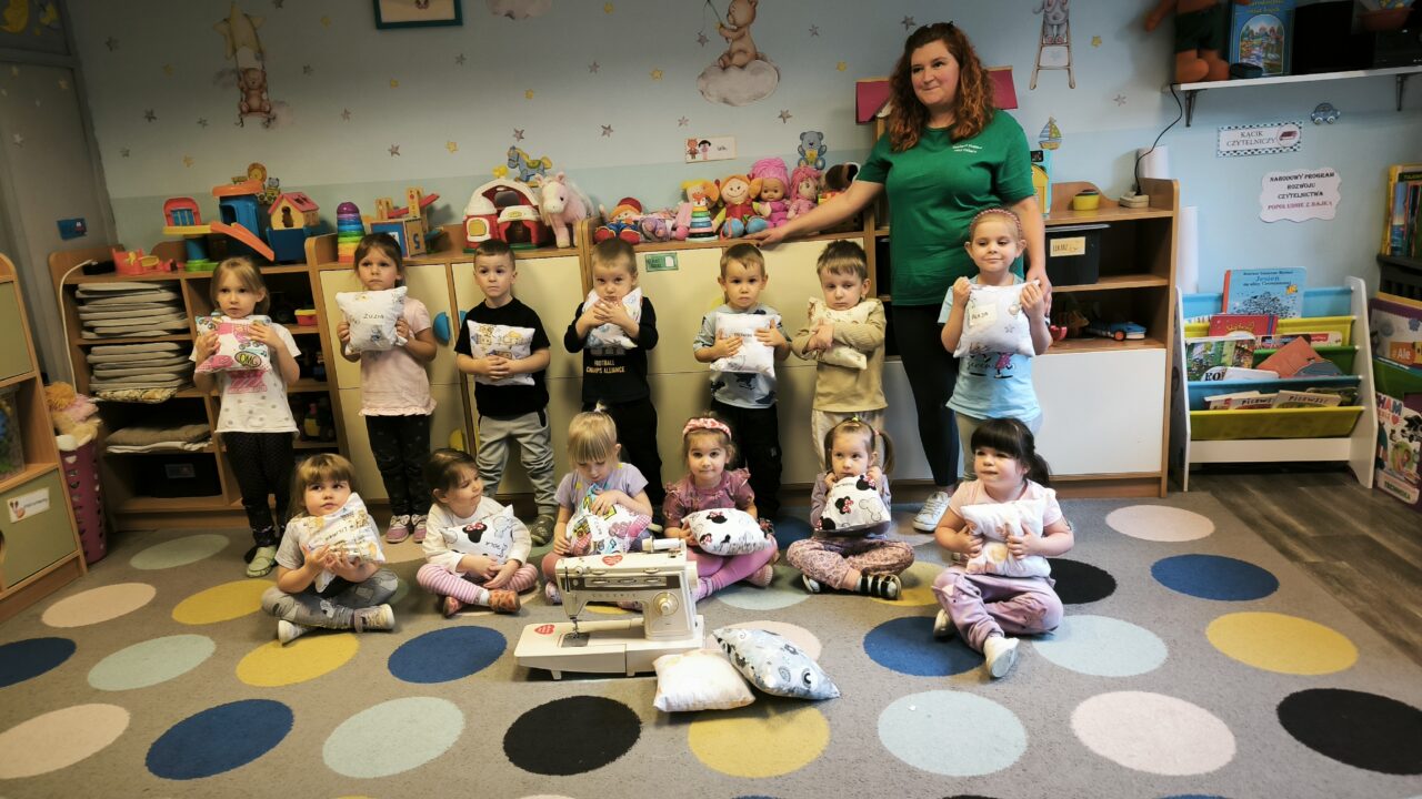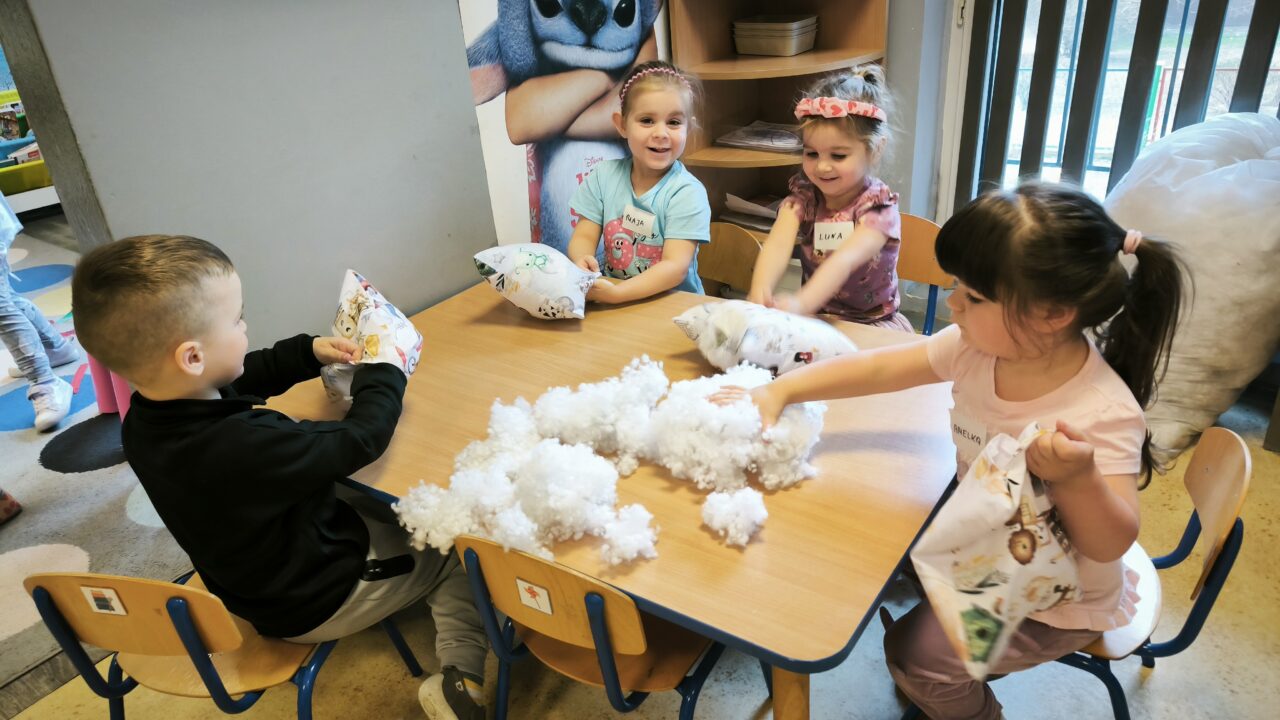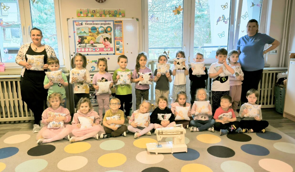 Podczas zajęć przedszkolaki tworzyły własne, niepowtarzalne prace – własne poduszki.
