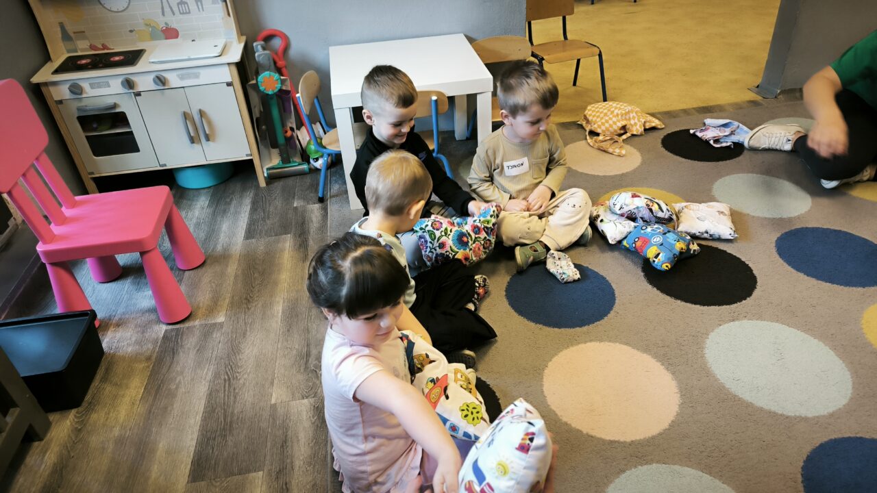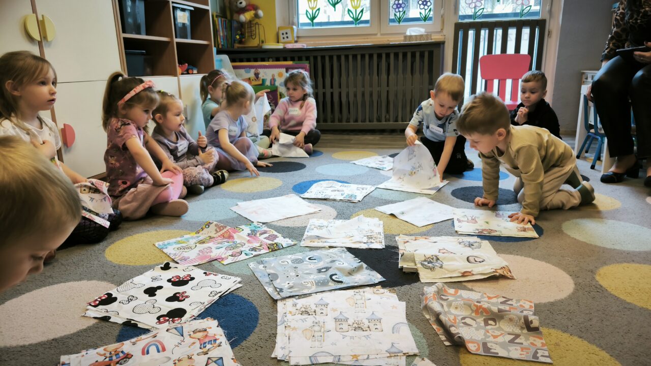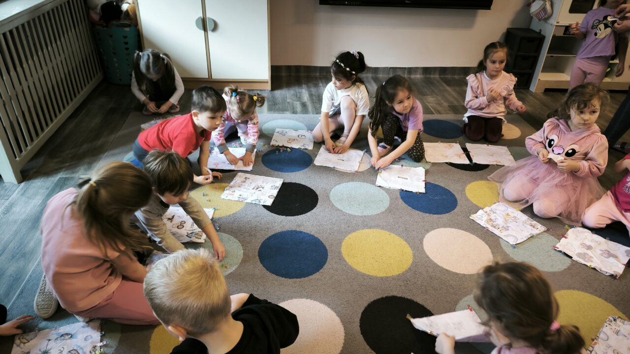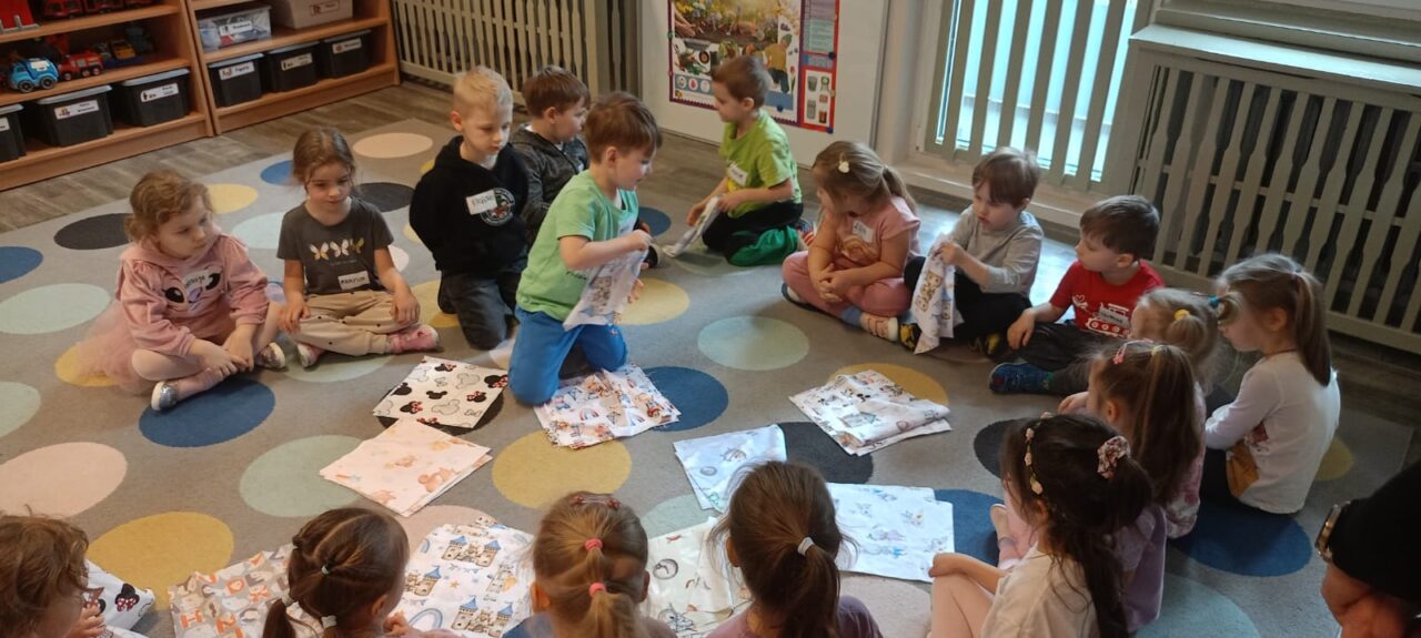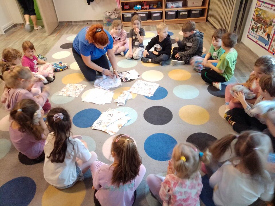 Podczas zajęć przedszkolaki tworzyły własne, niepowtarzalne prace – własne poduszki.
