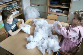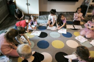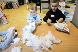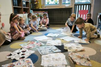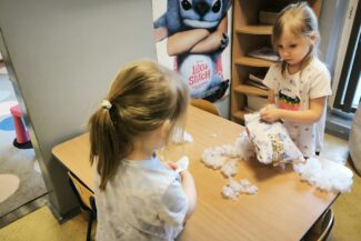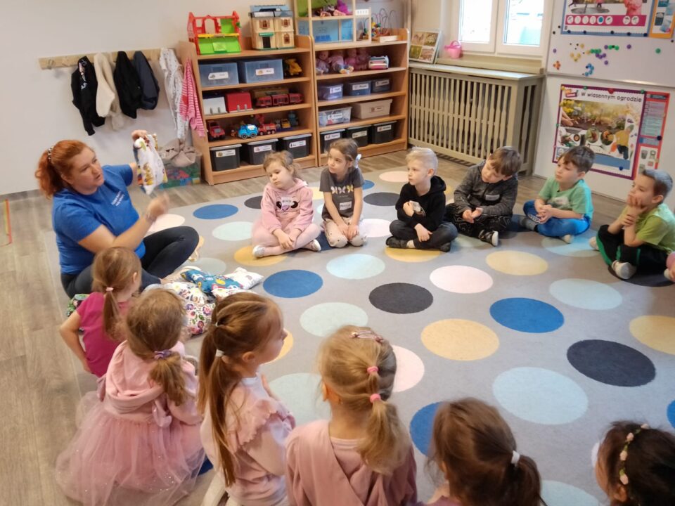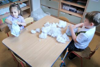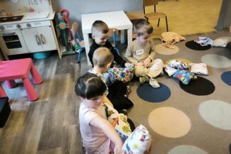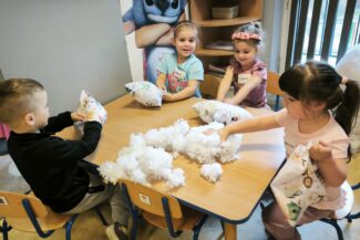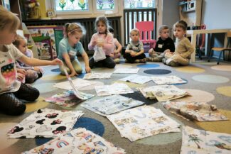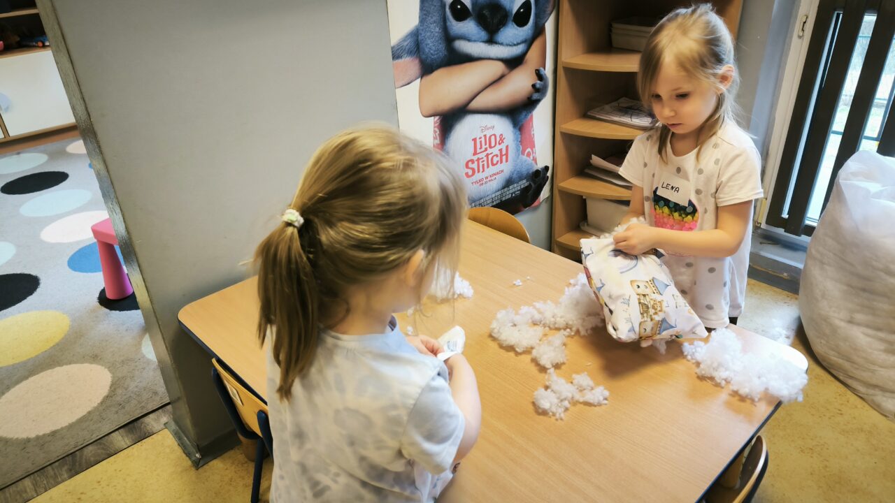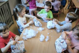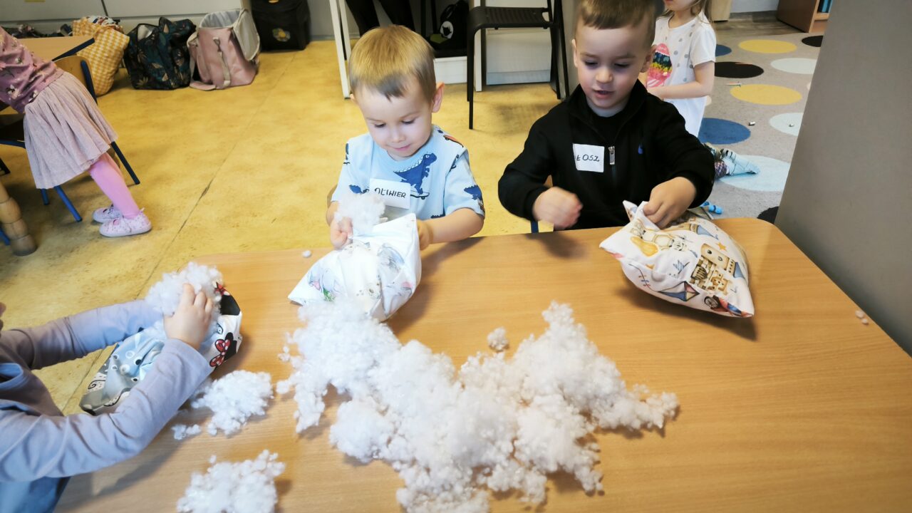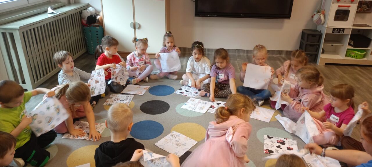 Podczas zajęć przedszkolaki tworzyły własne, niepowtarzalne prace – własne poduszki.
