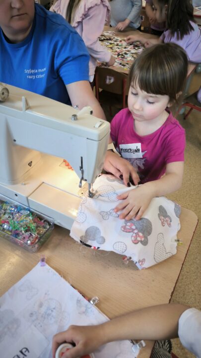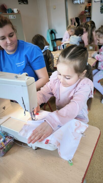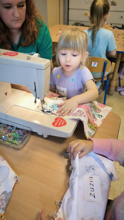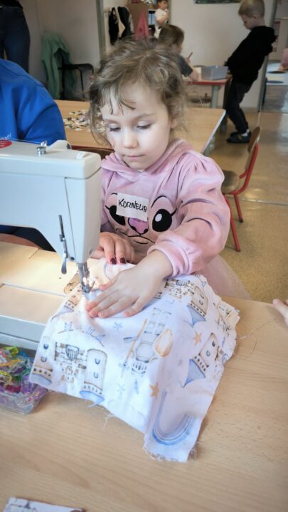 Warsztaty szycia w naszym przedszkolu były wyjątkową okazją do rozwijania kreatywności, cierpliwości i zdolności manualnych najmłodszych. Dzięki warsztatom prowadzonym przez Panią Agnieszkę czyli Szyjącą Mamę RazyDzieci z ogromnym zaangażowaniem poznawały podstawy szycia, uczyły się posługiwać maszyną do szycia (w bezpieczny sposób) oraz dobierać kolorowe materiały.