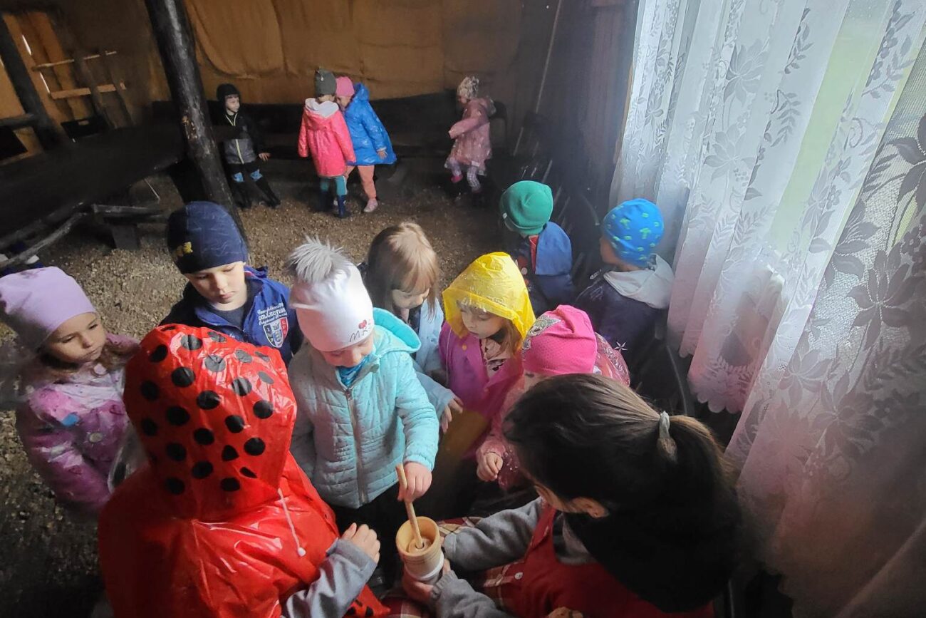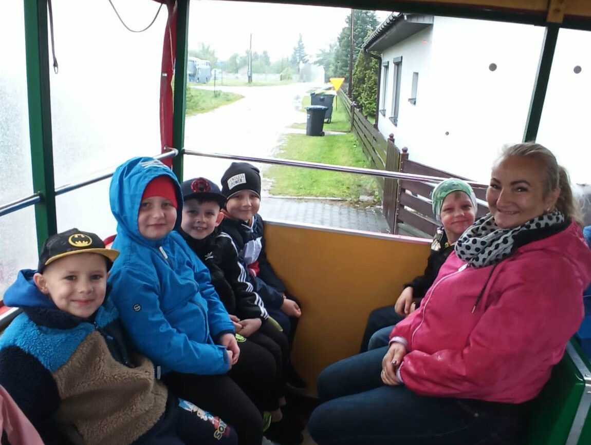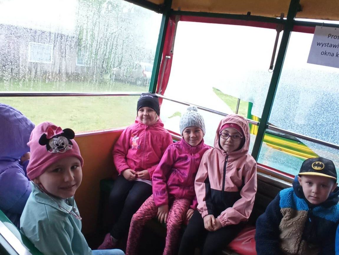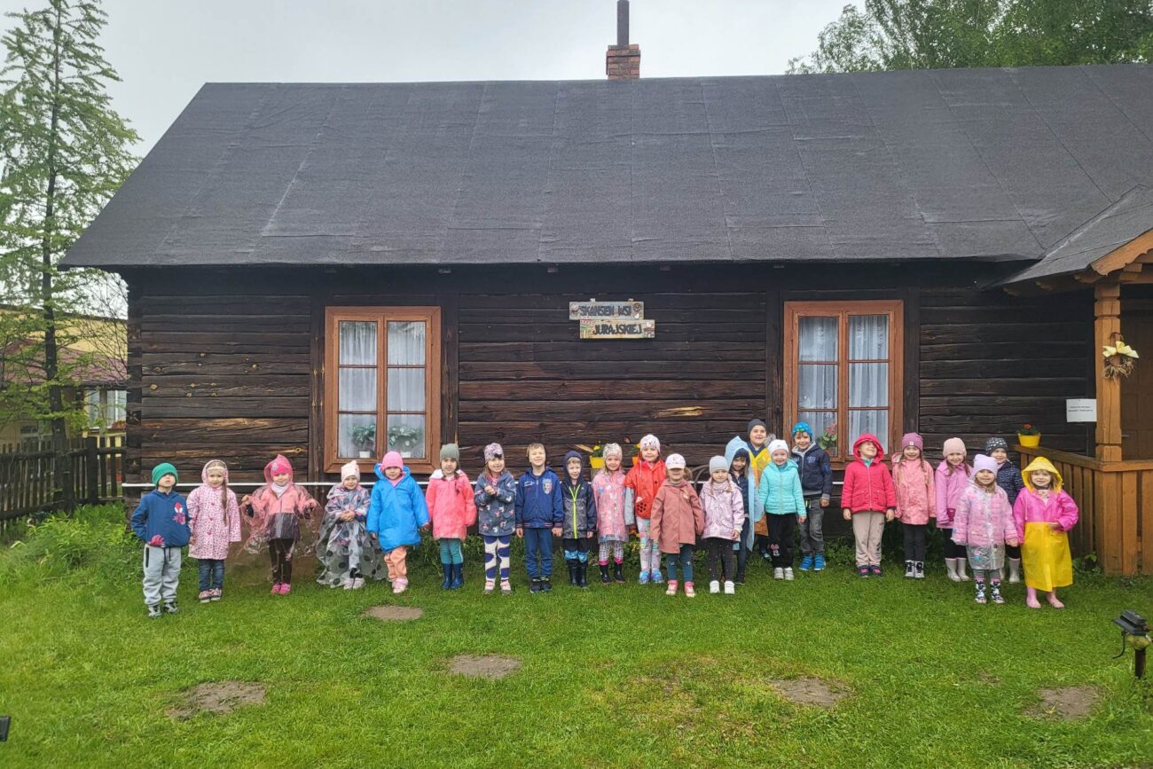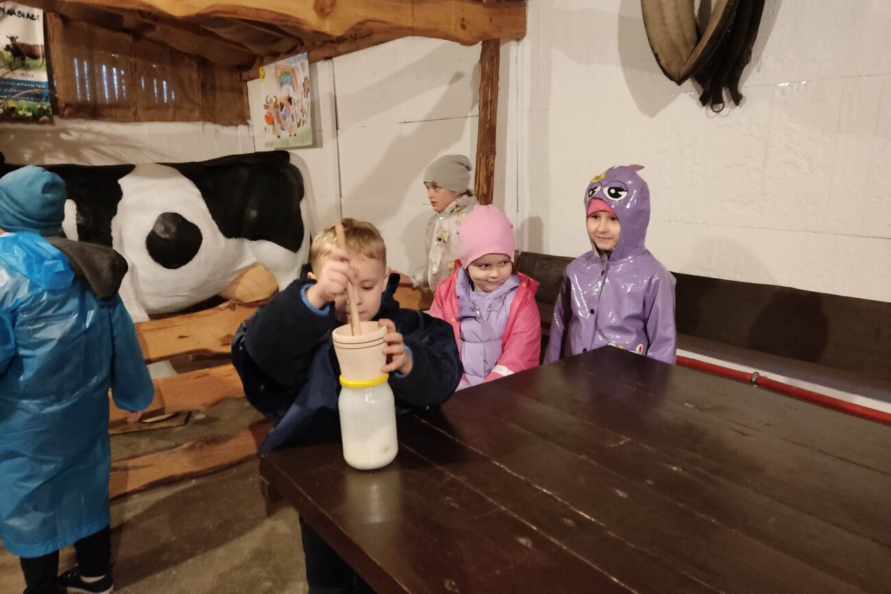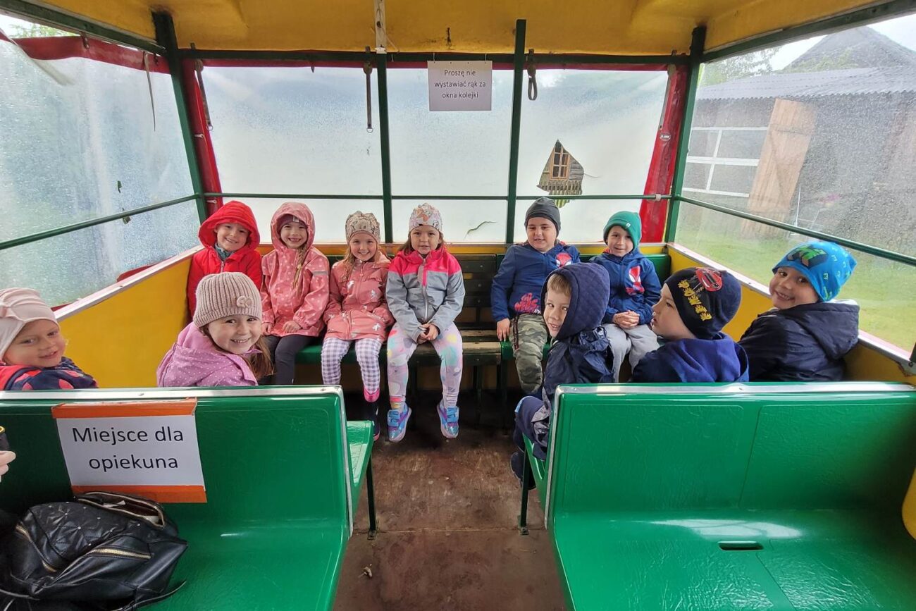 Dnia 17.05.2023r. nasze przedszkolaki uczestniczyły w wycieczce do Agrogospodarstwa „Pod Skałką” w Przybynowie. Na miejscu czekała na nich ciepła herbata oraz słodki poczęstunek. Dzieci wraz z opiekunami zwiedzały okolice Agroskałki poprzez przejazd stylizowaną kolejką „Jurajski Ekspress”. Brały udział w warsztatach edukacyjnych pt. „Skąd się bierze mleko”, podczas których miały okazję doić sztuczną krowę oraz samodzielnie ubić masło i spróbować go. Zwiedzały skansen Wsi Jurajskiej, w tym chatę z XIX/XXw. wraz ze sprzętami użytkowymi wykorzystywanymi w codziennym życiu. Na zakończenie wycieczki zjadły pyszną zupę pomidorową oraz deser – watę cukrową. Choć pogoda nie dopisała, wszyscy świetnie się bawili.